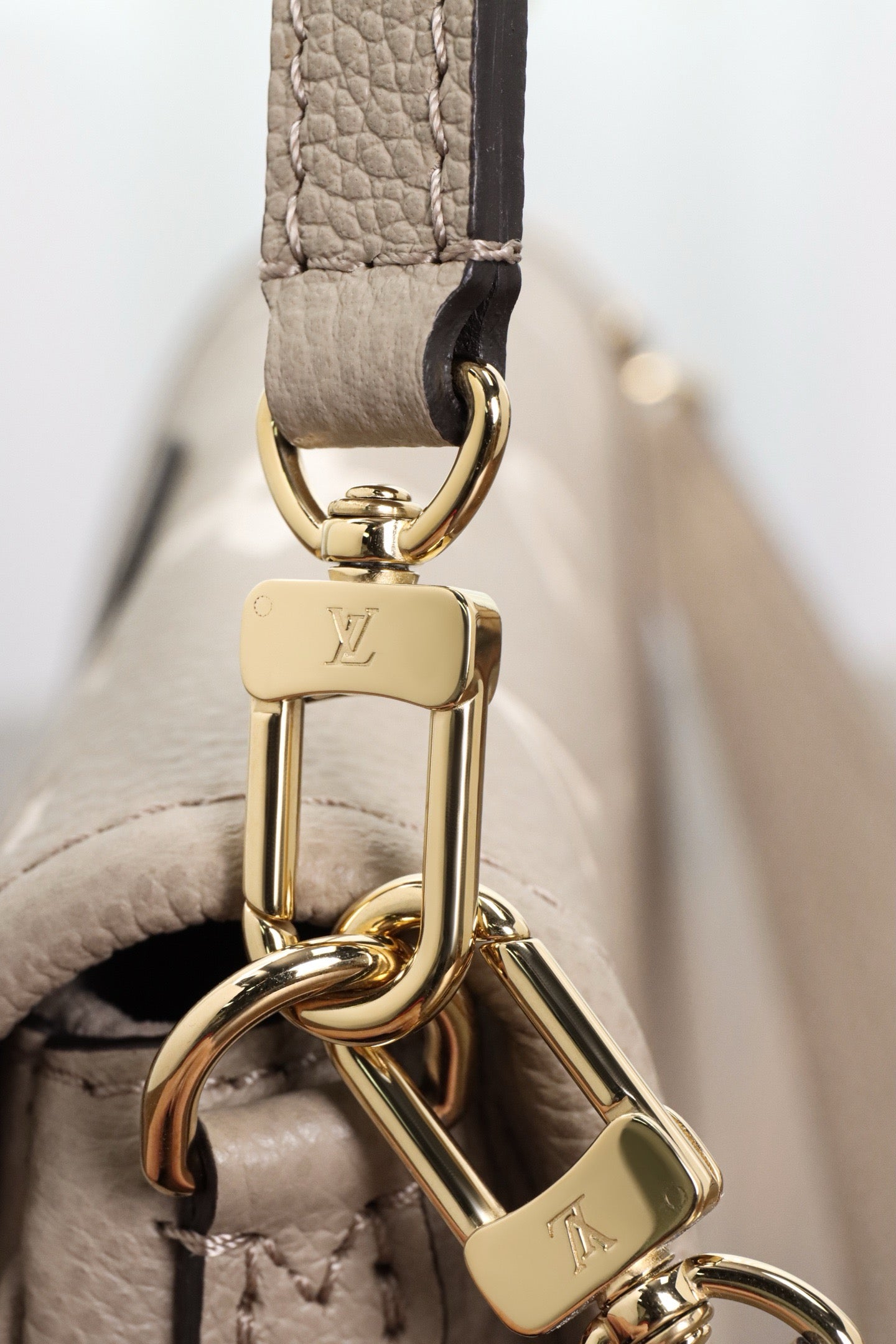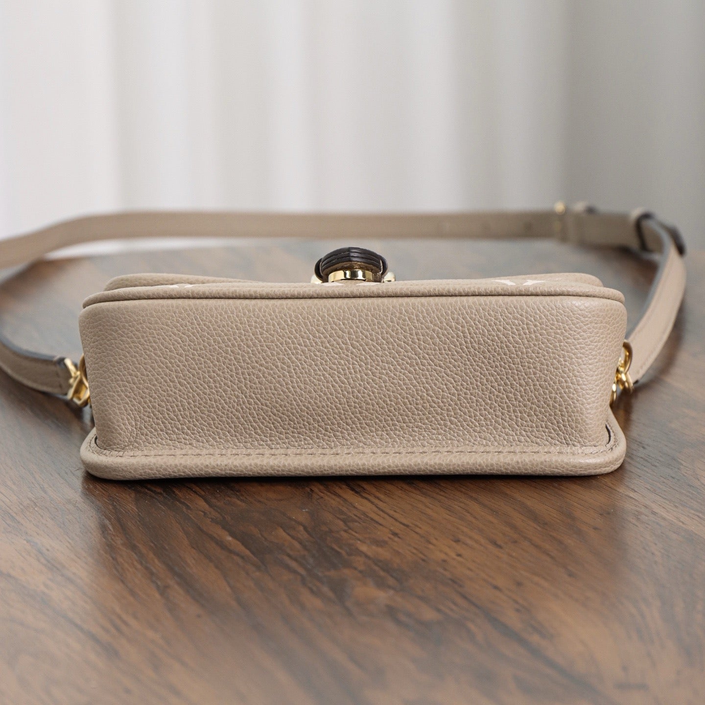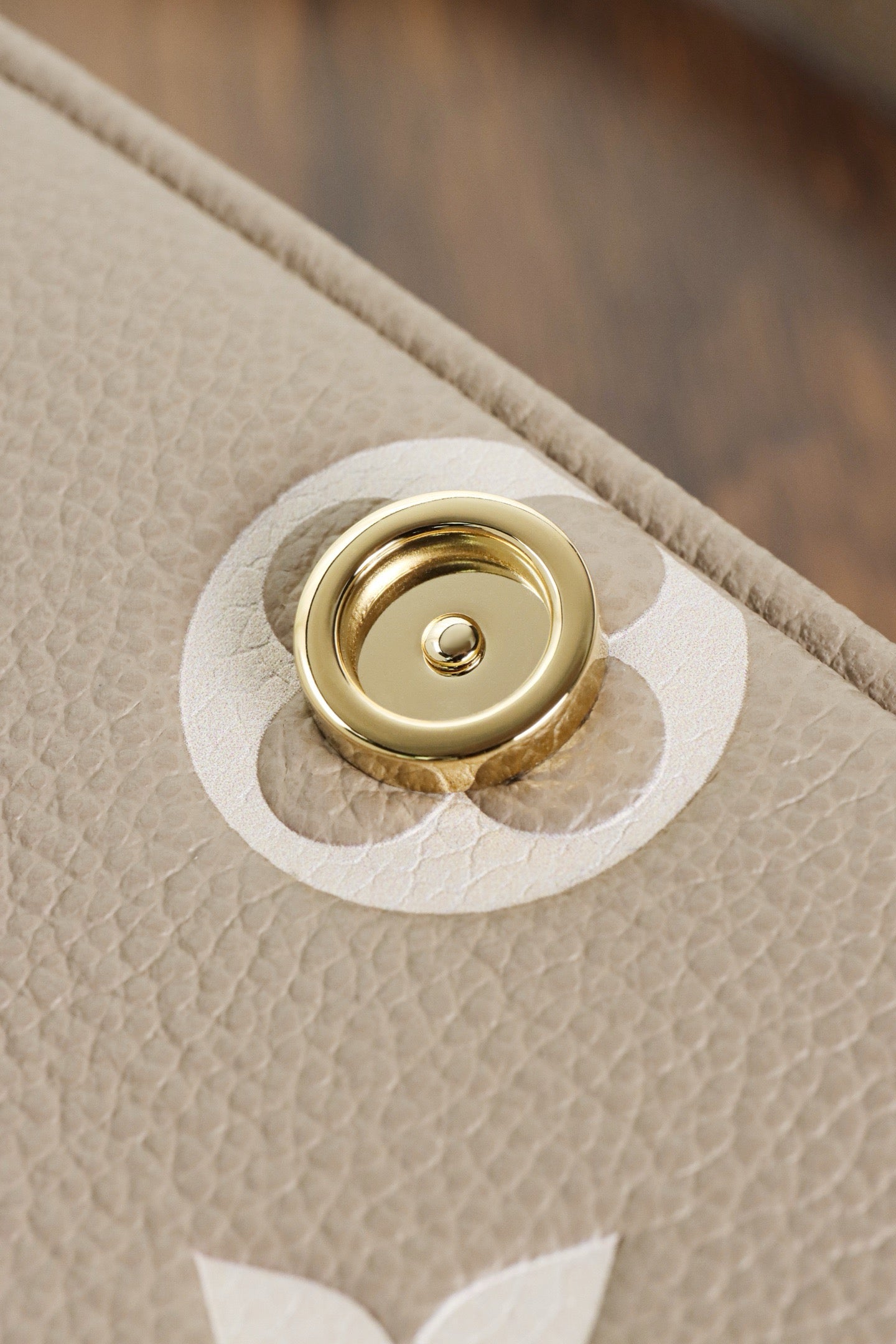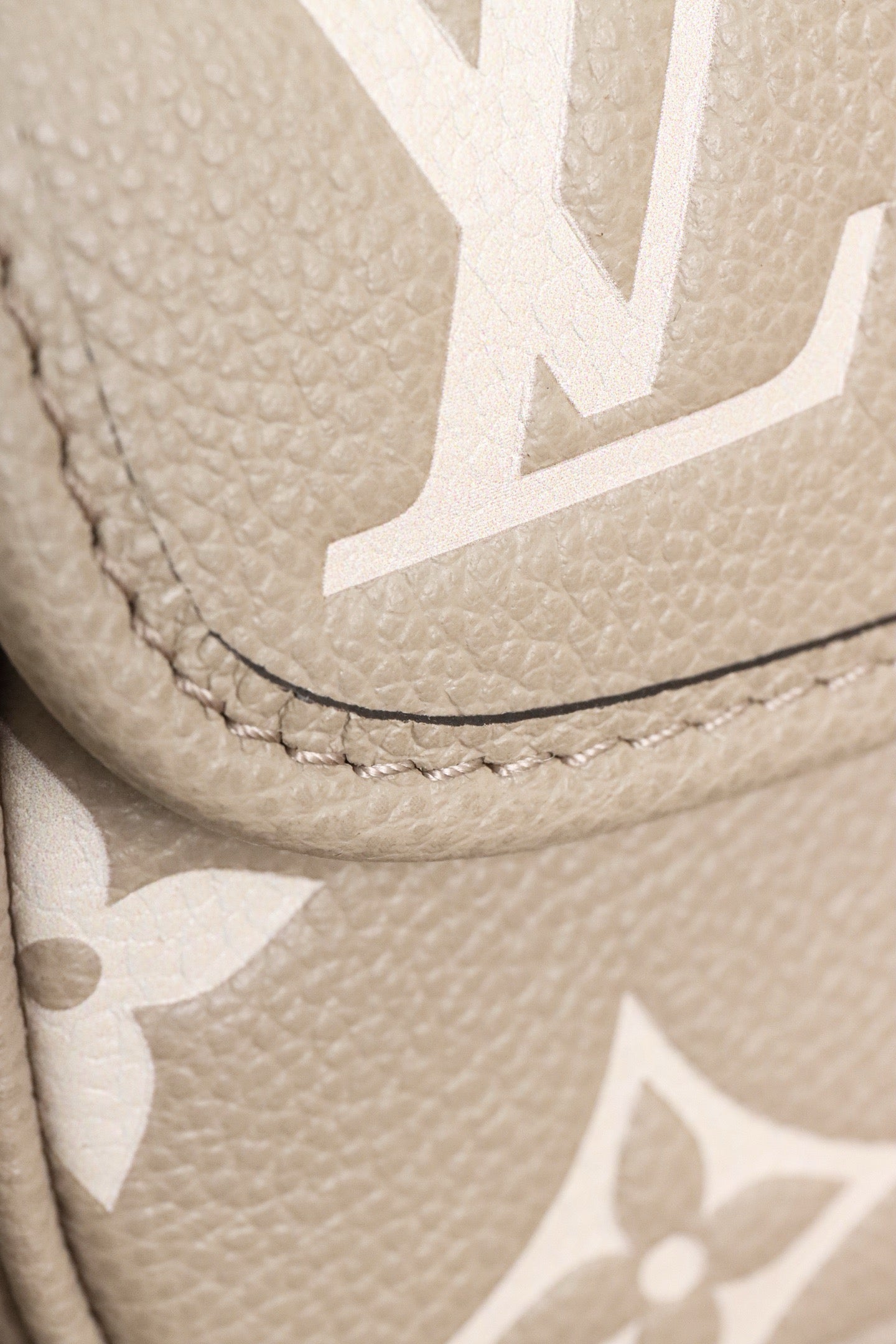 소재: 앙프렝뜨 송아지 가죽, 모노그램 엠보싱, 대비 컬러 트리밍