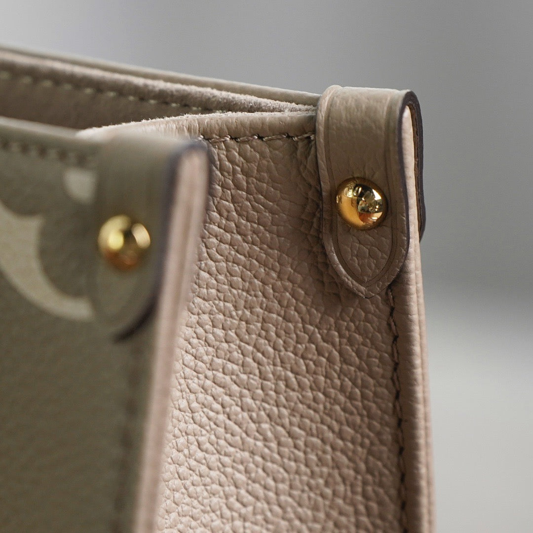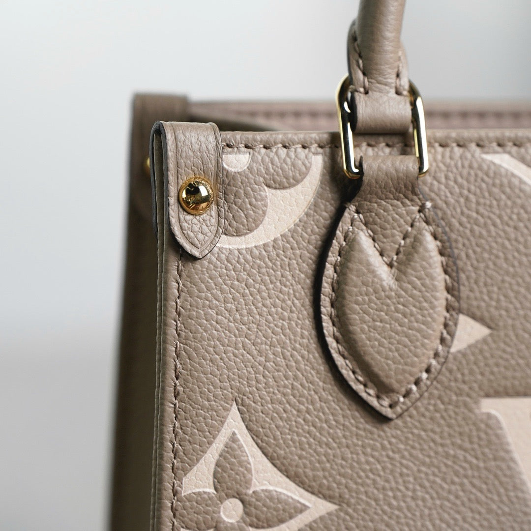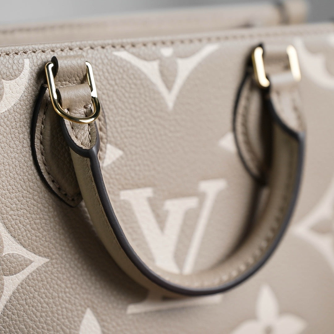 루이비통 앙프렝뜨 온더고 BB(Louis Vuitton Empreinte Onthego BB)는 하우스의 대표적인 토트백 디자인을 컴팩트하게 축소한 미니백으로, 앙프렝뜨 송아지 가죽과 엠보싱 모노그램의 조화가 돋보이는 실용적이면서도 세련된 데일리 아이템입니다.
