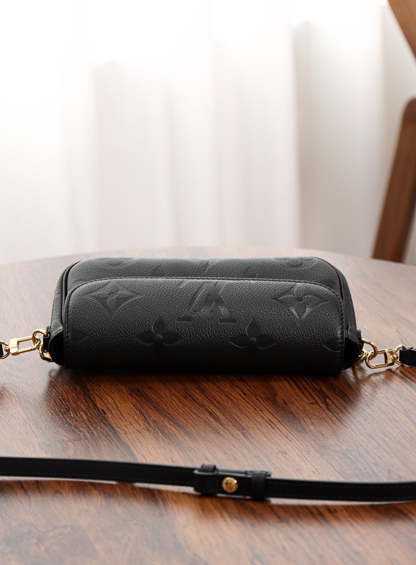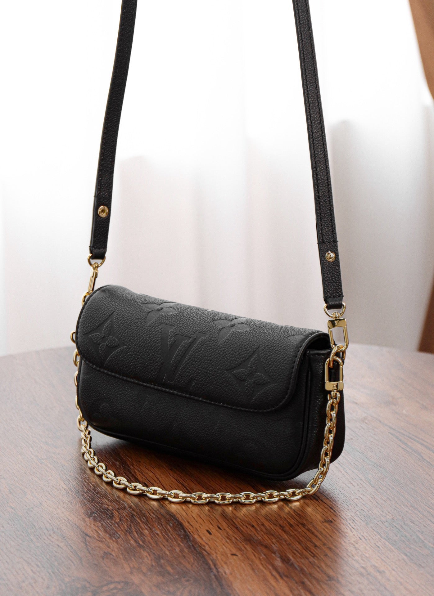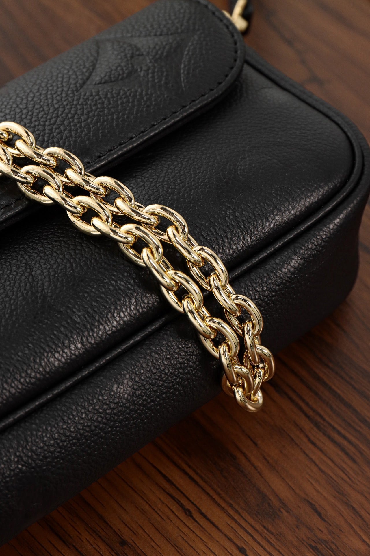 루이비통 월릿 온 체인 앙프렝뜨 아이비 크림(Louis Vuitton Wallet on Chain Empreinte Ivy Cream)은 앙프렝뜨 송아지 가죽의 고급스러움과 부드러운 크림 컬러가 어우러진 미니멀한 체인 크로스백입니다. 지갑과 백의 기능을 겸비한 디자인으로, 데일리와 이브닝룩 모두에 완벽하게 어울리는 아이템입니다.