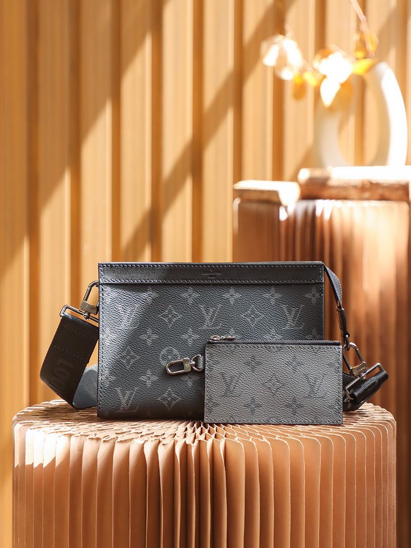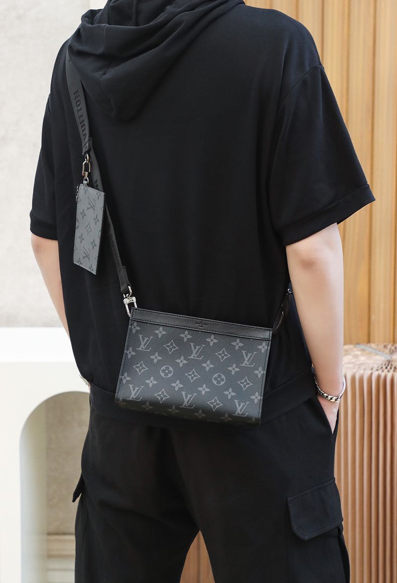 루이비통 웨어러블 월릿 이클립스(Louis Vuitton Wearable Wallet Eclipse)는 루이비통의 남성 라인에서 선보이는 혁신적인 하이브리드 액세서리로, 지갑과 슬링백의 기능을 결합한 모던한 아이템입니다. 모노그램 이클립스 캔버스 소재로 제작되어 도시적이고 실용적인 매력을 발산합니다.