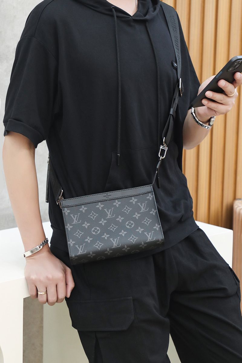 루이비통 웨어러블 월릿 이클립스는 간단한 외출, 페스티벌, 여행 등 손이 자유로워야 하는 상황에서 매우 유용합니다.