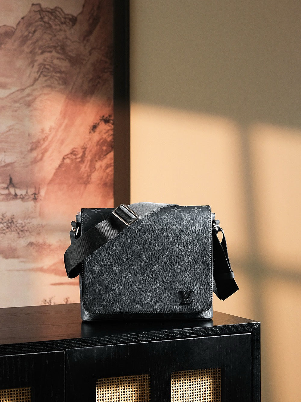 루이비통 이클립스 디스트릭트 PM(Louis Vuitton Eclipse District PM)은 도시적인 감성과 실용성을 모두 갖춘 남성용 메신저백으로, 컴팩트한 크기와 간결한 디자인이 특징입니다. 모노그램 이클립스 캔버스로 제작되어 세련된 분위기를 자아내며, 출퇴근이나 외출 시 스타일리시한 포인트 아이템으로 적합합니다.