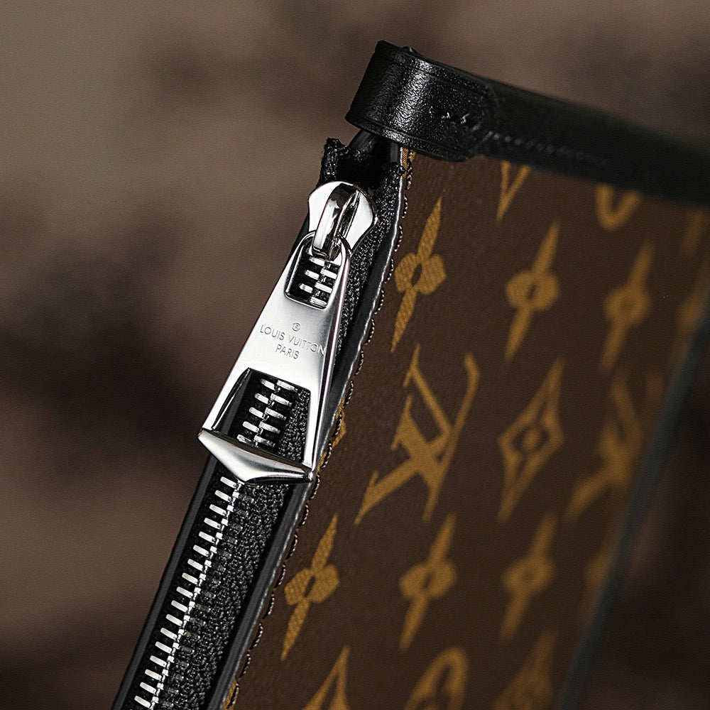 다크 토프 컬러의 앙프렝뜨 가죽은 우아한 광택과 깊이감 있는 톤으로 세련된 인상을 주며, 루이비통의 시그니처 모노그램 패턴이 엠보싱 처리되어 고급스러움을 더합니다. 유연한 곡선 구조와 드로스트링 클로저가 실용성과 디자인을 모두 만족시킵니다.