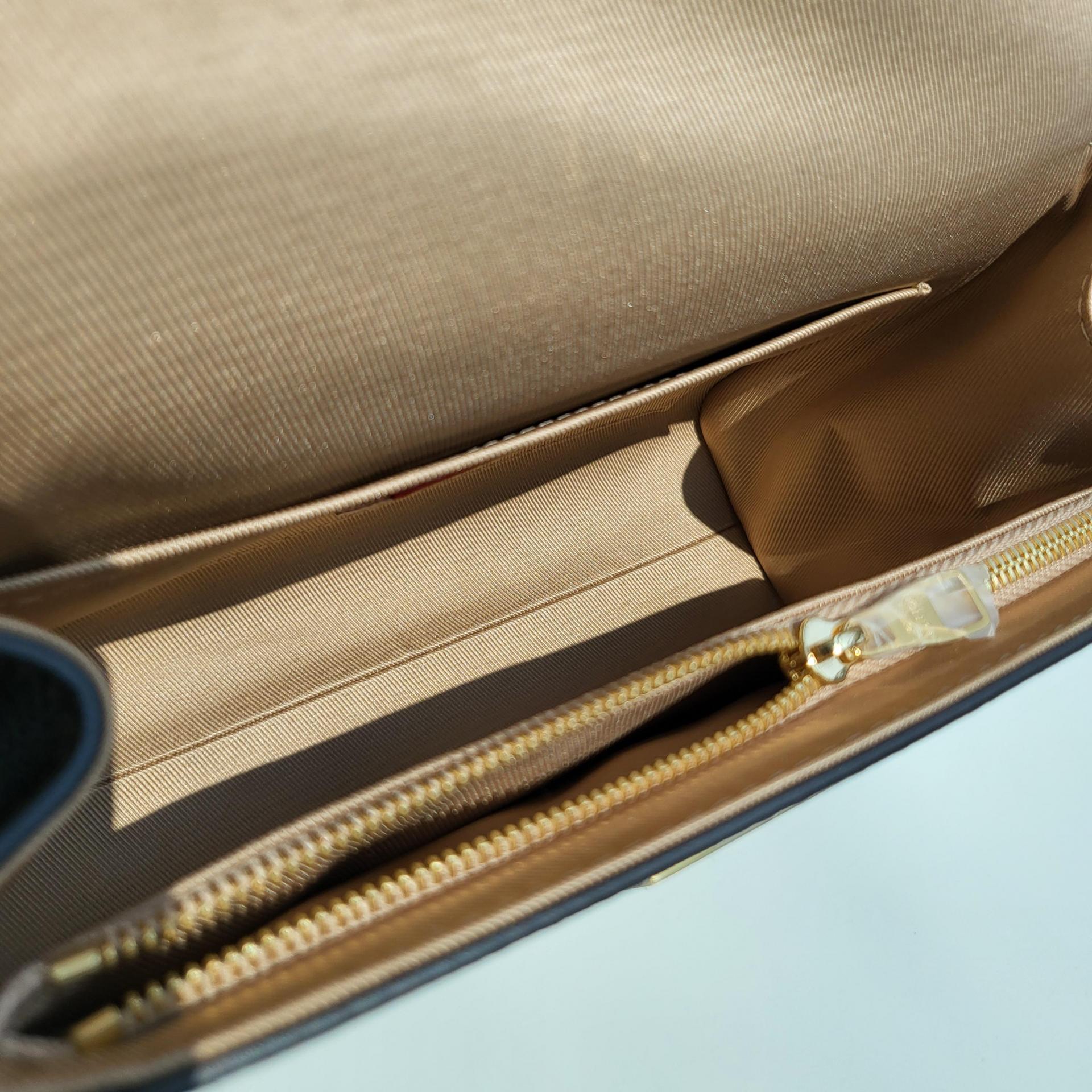 작은 외형에도 불구하고 립스틱, 카드지갑, 미니폰 등 데일리 필수품 수납이 가능하며, 내부 플랫 포켓이 구성되어 정리가 용이합니다. 바닥 보호 스터드가 포함되어 형태 유지력도 뛰어납니다.