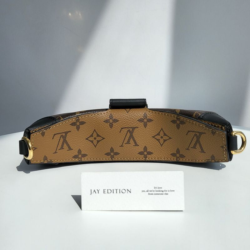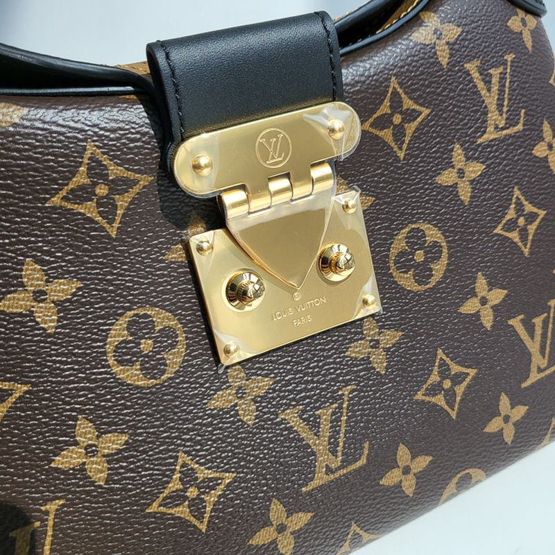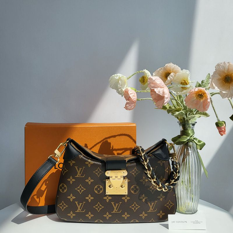 하드쉘 구조의 직사각형 형태에 루이비통의 시그니처 모노그램 캔버스가 적용되어, 브랜드 헤리티지를 잘 보여줍니다. 양쪽의 트렁크 잠금 디테일과 중앙 손잡이, 금속 엣지 장식이 고급스러움을 더하며 클래식하면서도 모던한 매력을 발산합니다.