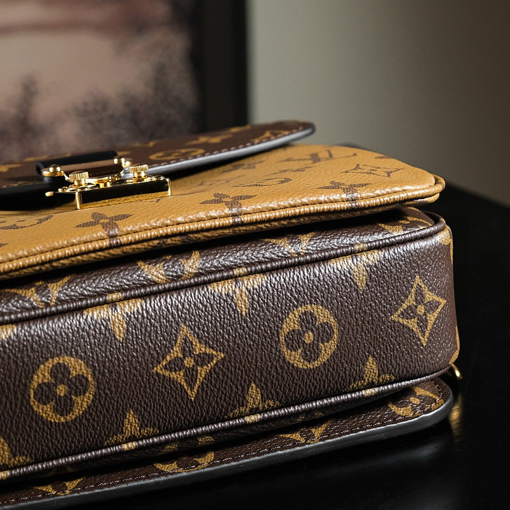 골드 톤 하드웨어 + 루이비통 로고 디테일