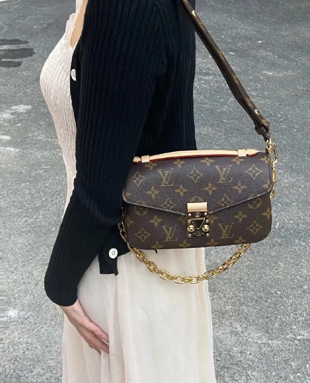 이스트 웨스트 버전은 기존 포쉐트 메티스보다 더 길고 낮은 비율로 디자인되어, 세련된 실루엣을 강조합니다. 루이비통의 시그니처 모노그램 캔버스 또는 엠프렝뜨 가죽 바디에 S-락 잠금 장치와 체인 스트랩, 가죽 스트랩이 함께 구성되어 있어 활용도가 높습니다.