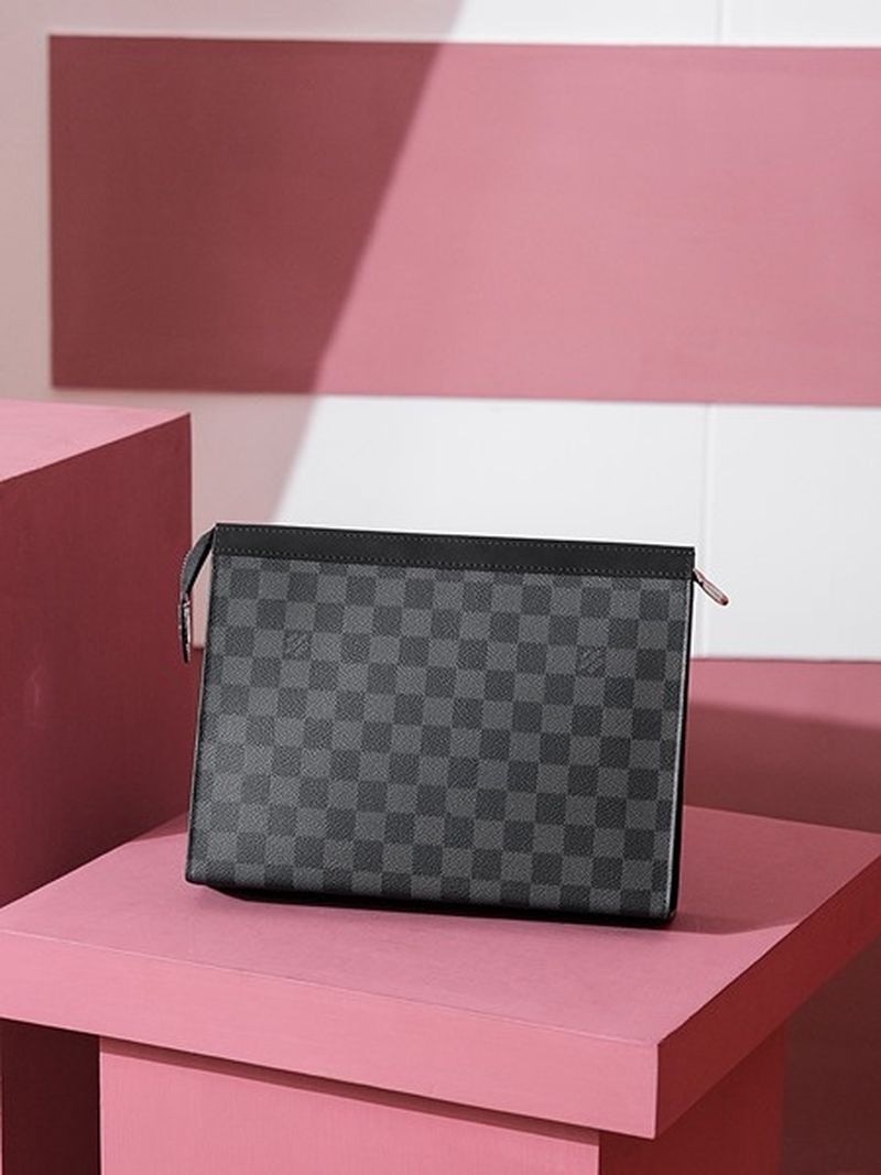 루이비통 포쉐트 보야주 다미에는 데일리 클러치나 여행용 파우치로 사용하기 적합하며, 간단한 소지품을 정리할 수 있어 실용적입니다.