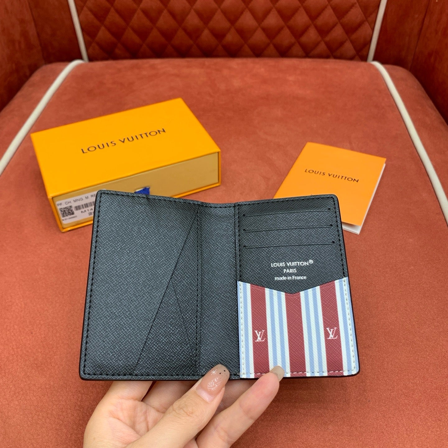 포켓 오거나이저 G71은 루이비통의 모노그램 Heritage 캔버스를 외부 소재로 사용하여 클래식하면서도 빈티지한 감성을 연출합니다. 내부는 카우하이드 가죽에 스트라이프 라이닝 처리가 되어 있으며, 절제된 세련미와 고급스러움을 동시에 느낄 수 있는 디자인이 특징입니다. 손바닥에 들어오는 사이즈와 얇은 두께로 휴대성이 뛰어납니다.