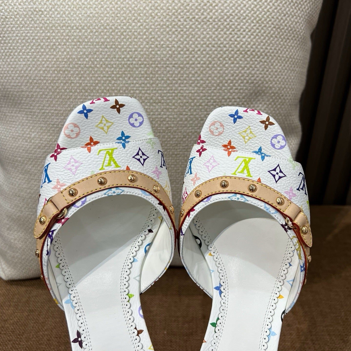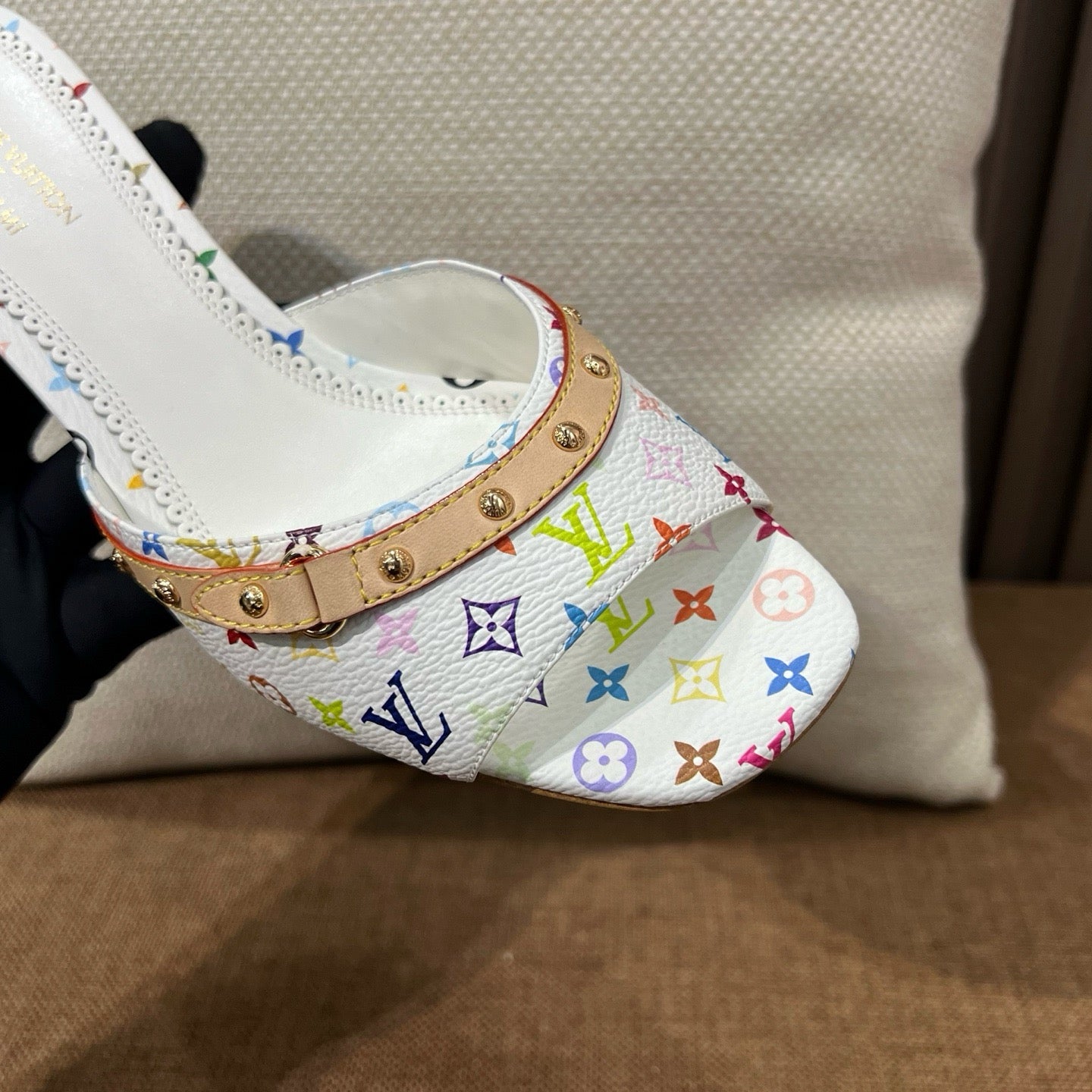이 펌프스는 화려한 컬러감으로 유니크하게 프린팅되어 시선을 사로잡습니다. 하이힐 라스트는 루이비통의 고급스러운 실루엣을 그대로 반영하고 있으며, 얇은 스틸레토 힐이 다리 라인을 한층 더 우아하게 연출해 줍니다.