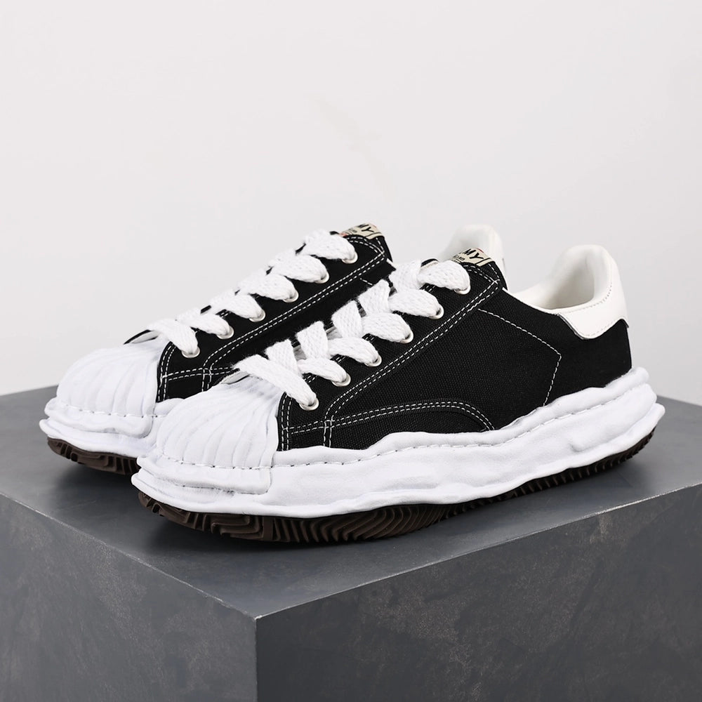 메종 미하라 야스히로 블레이키 OG 솔 캔버스 로우탑 스니커즈 블랙(Maison Mihara Yasuhiro Blakey OG Sole Canvas Low-top Sneakers Black)는 독창적인 디자인과 실용성이 결합된 프리미엄 스니커즈입니다. 일본 디자이너 미하라 야스히로의 창의적인 감각이 반영된 이 제품은 유니크한 실루엣과 모던한 컬러로 전 세계 패션 애호가들 사이에서 꾸준한 인기를 끌고 있습니다.