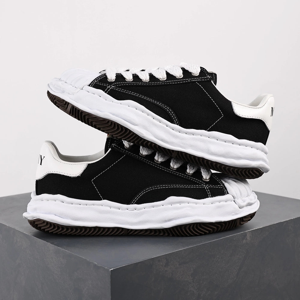 메종 미하라 야스히로 블레이키 OG 솔 캔버스 로우탑 스니커즈 블랙 - 데일리룩의 완성 아이템