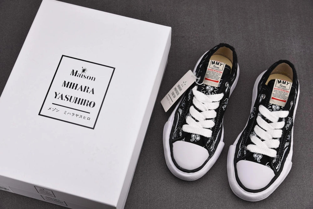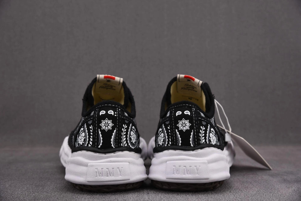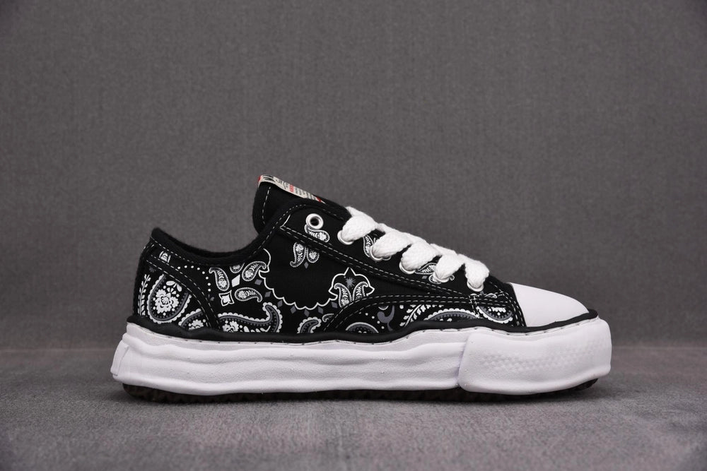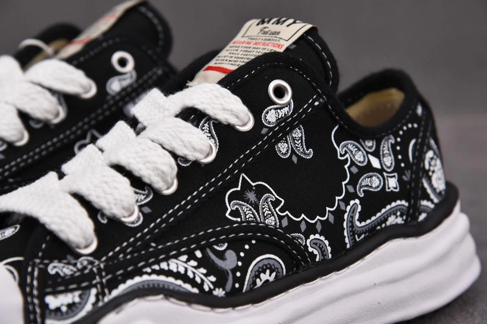 메종 미하라 야스히로 피터슨 OG 솔 캔버스 반다나 로우탑 스니커즈 블랙 - 전통과 모던의 믹스