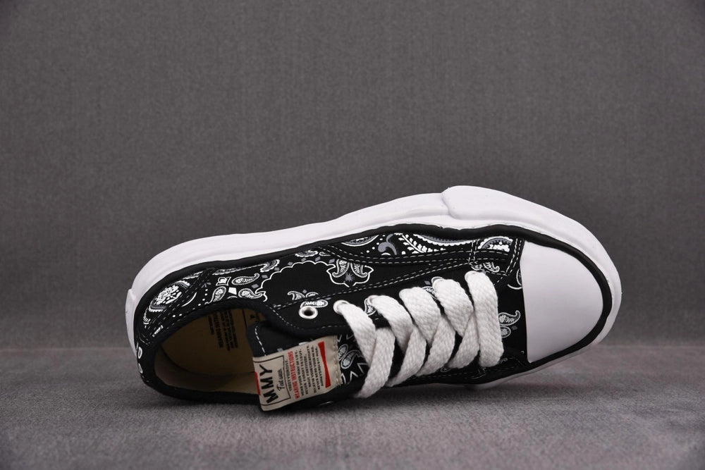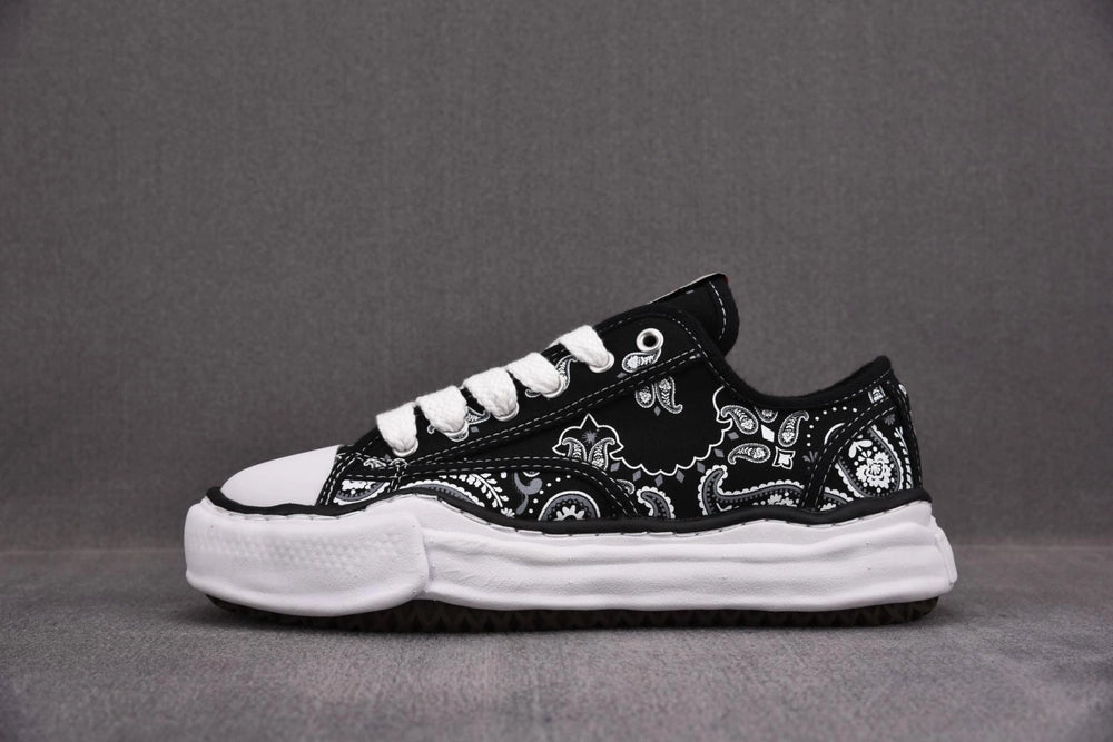 메종 미하라 야스히로 피터슨 OG 솔 캔버스 반다나 로우탑 스니커즈 블랙