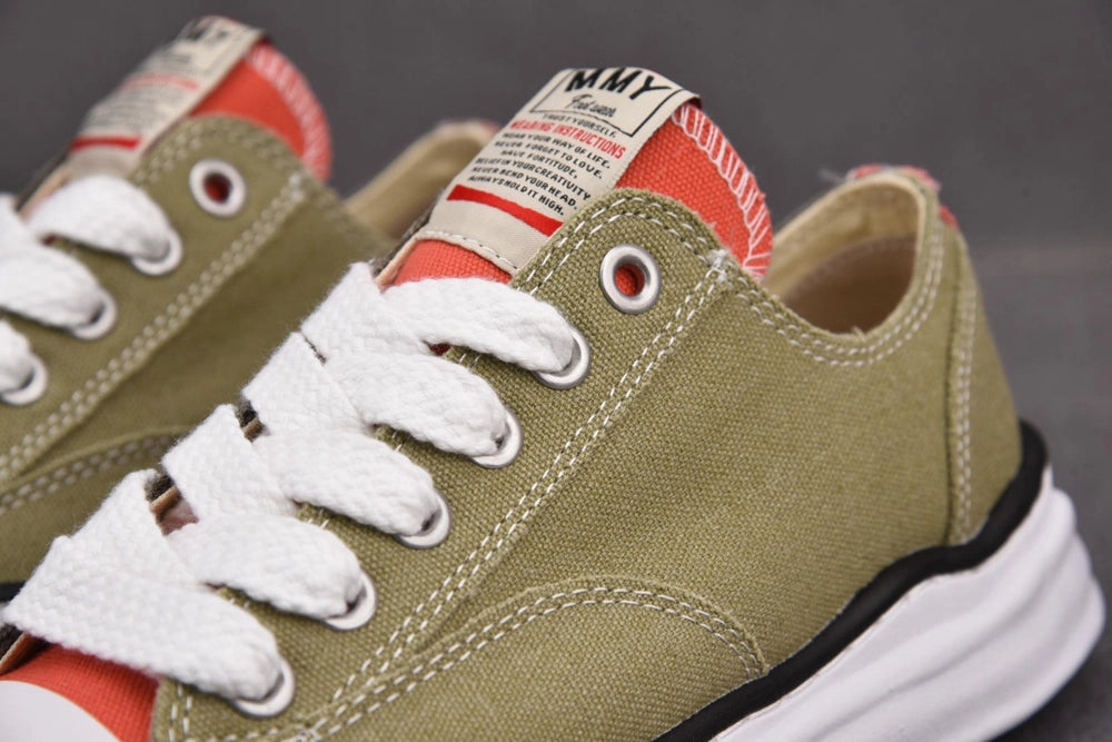 메종 미하라 야스히로 x 나이젤 카본 로우 컷 스니커즈 아미 그린(Maison Mihara Yasuhiro x Nigel Cabourn Low Cut Sneakers Army Green) - 브랜드 철학이 담긴 디자인