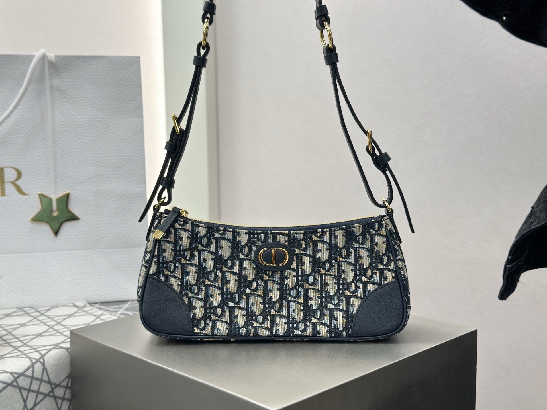 컴팩트하면서도 견고한 구조, CD 시그니처 로고 장식, 고급 소재 사용, 탈부착 가능한 스트랩 등이 특징입니다. 실용성과 스타일을 동시에 만족시키는 아이템입니다.