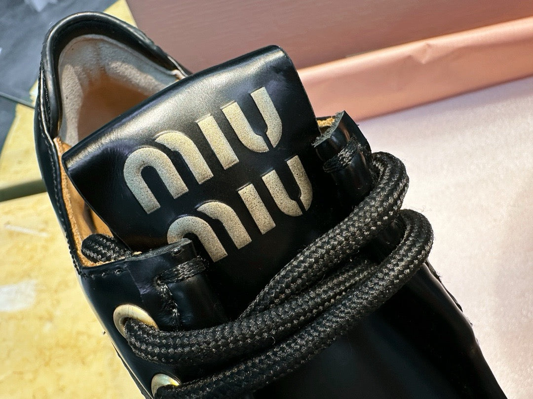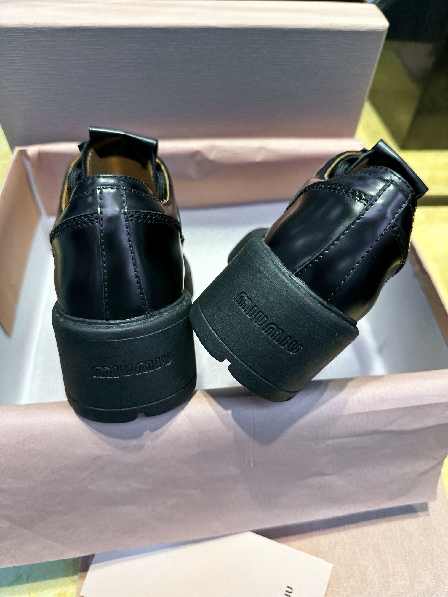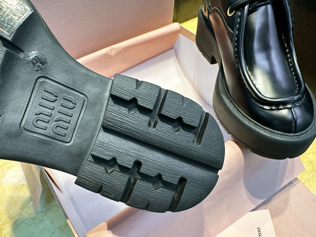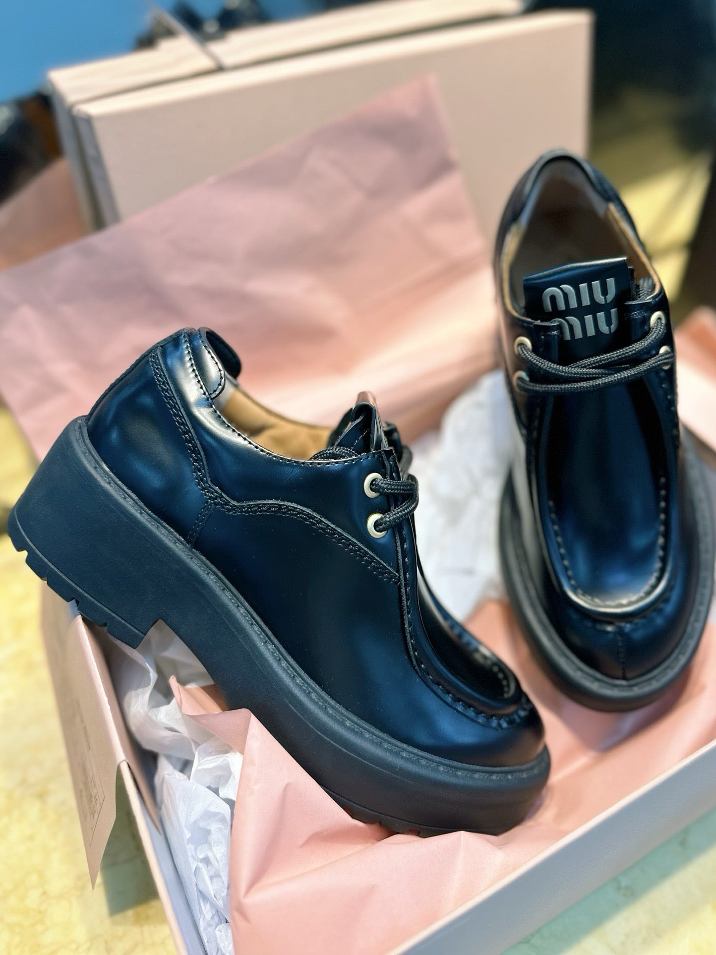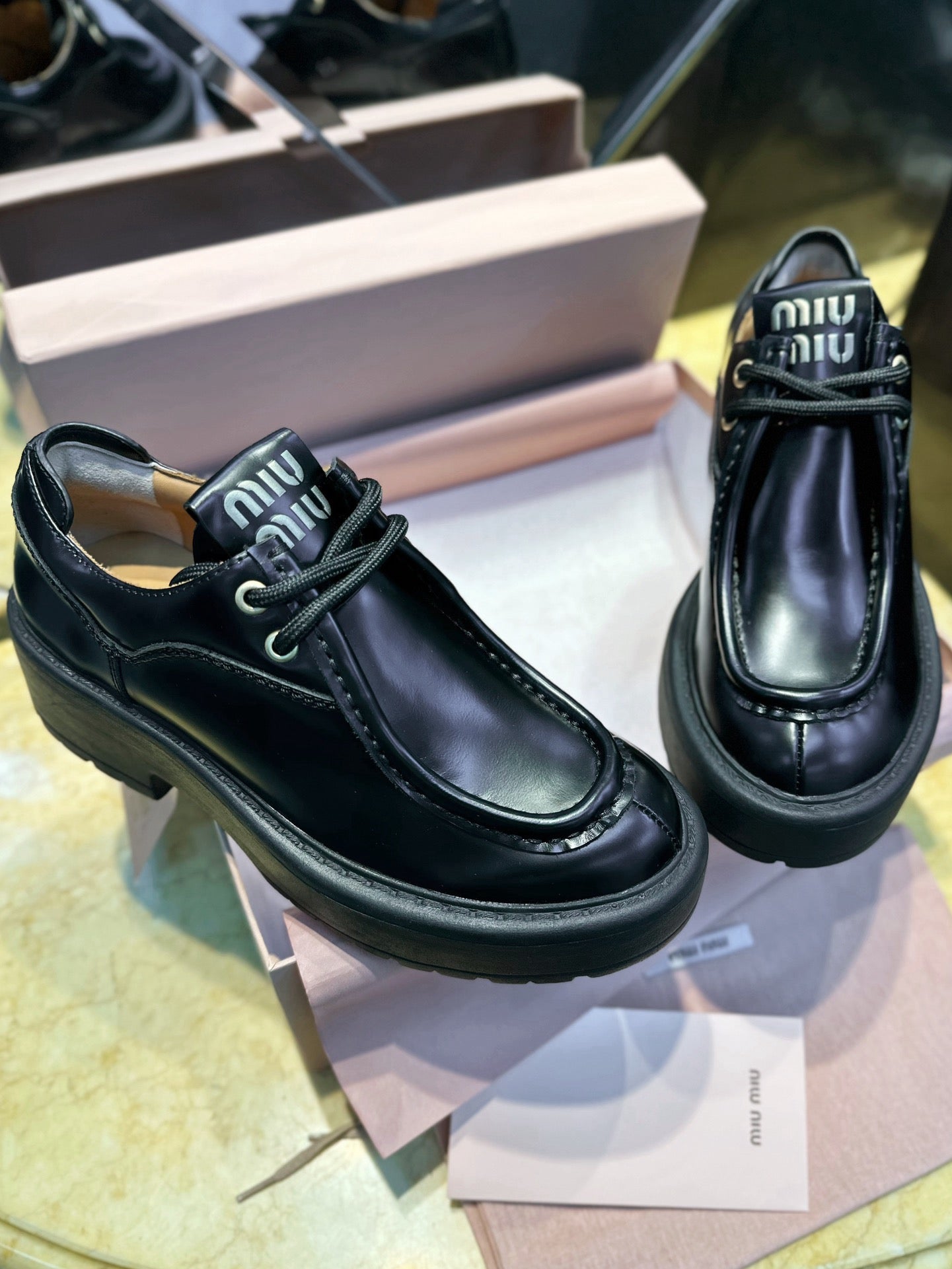 미우미우 가죽 레이스업 슈즈(Miu Miu Leather Lace-Up Shoes) - 전통적인 감성에 모던한 디테일을 더하다