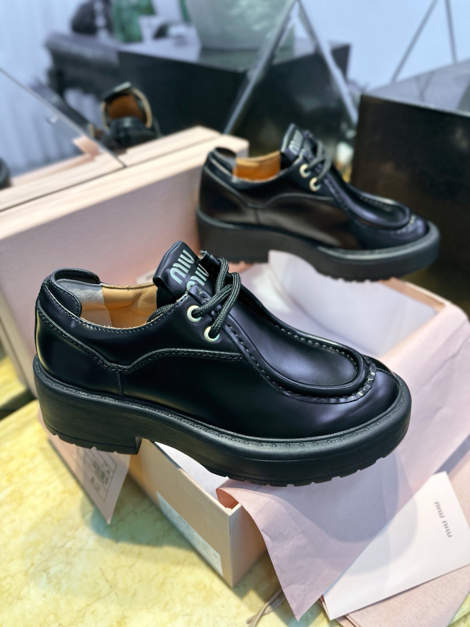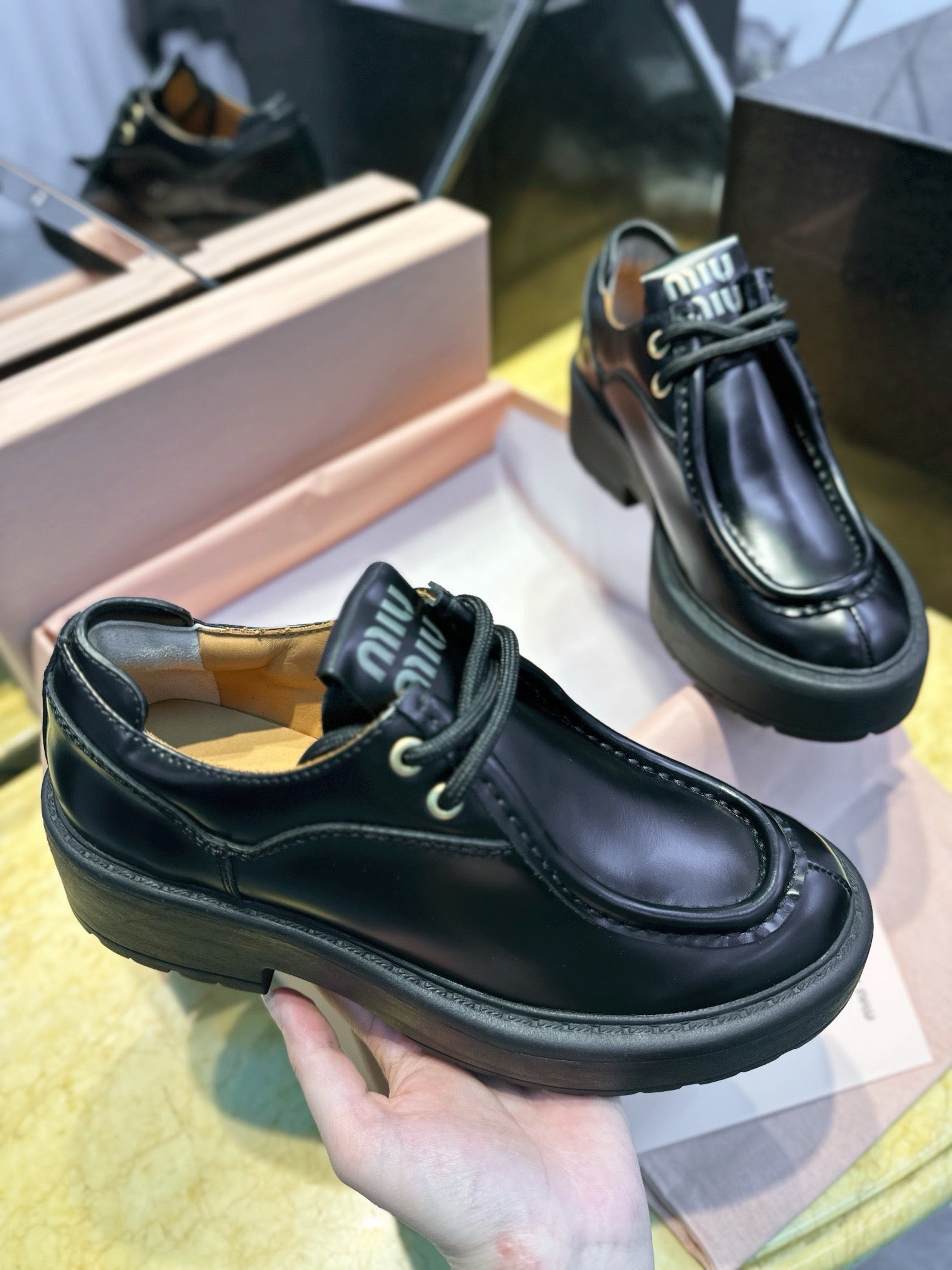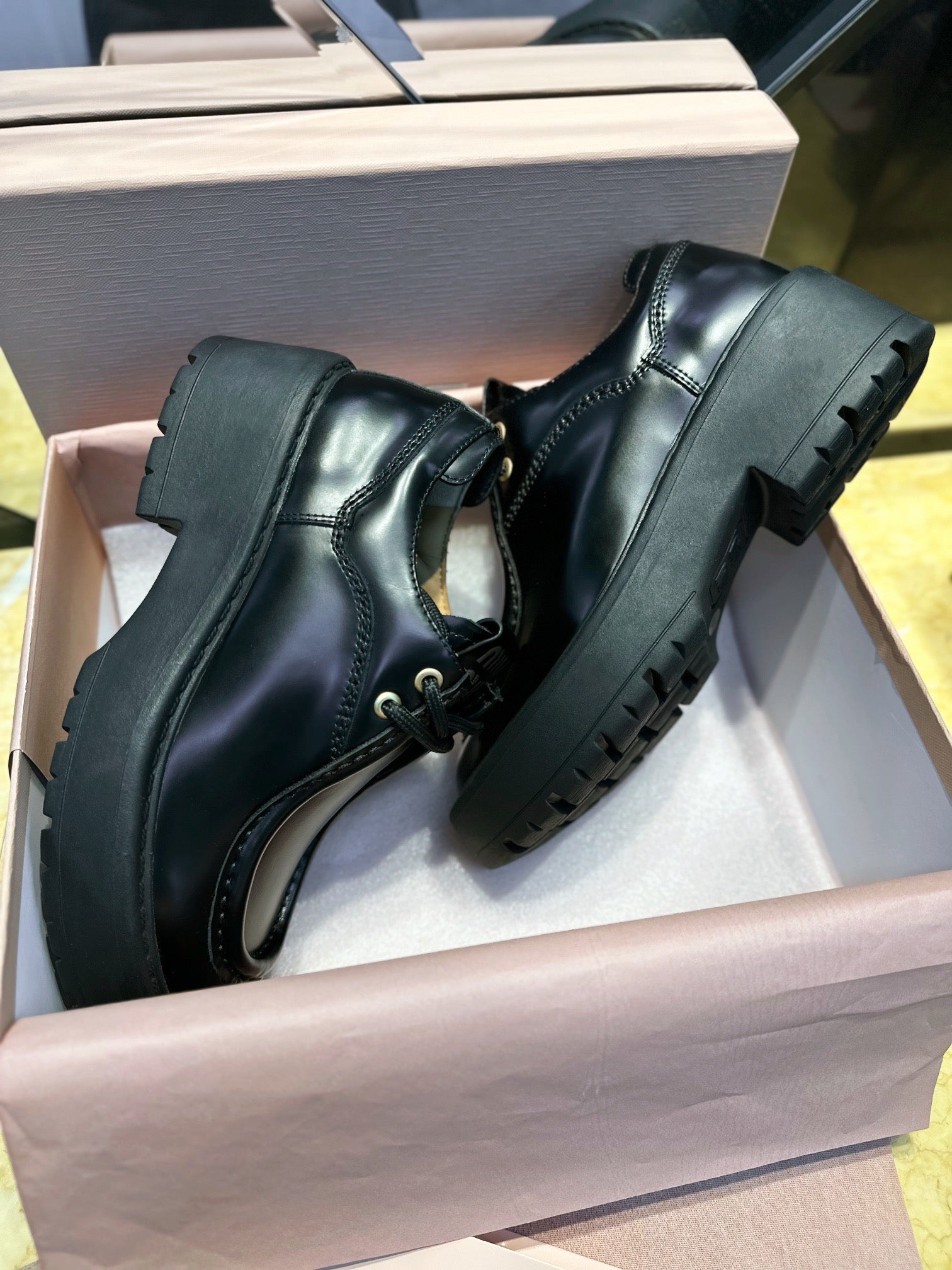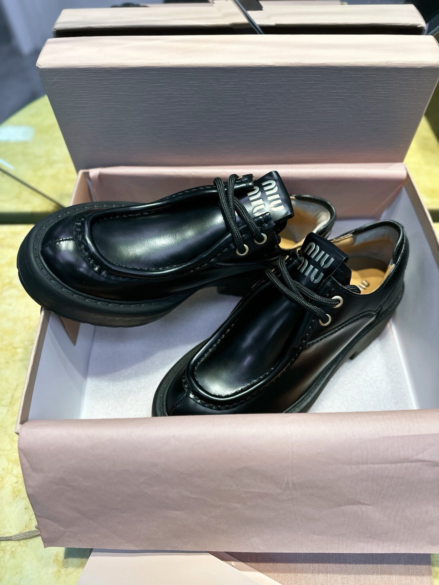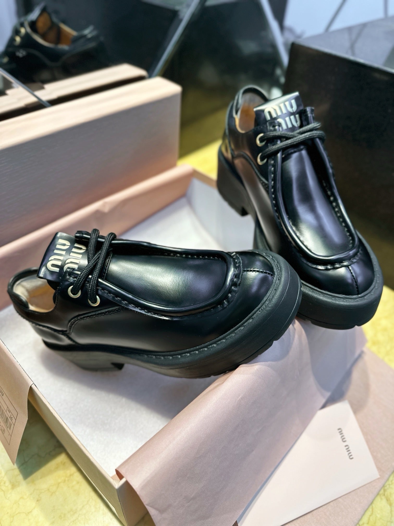 미우미우 가죽 레이스업 슈즈(Miu Miu Leather Lace-Up Shoes) - 전통적인 감성에 모던한 디테일을 더하다