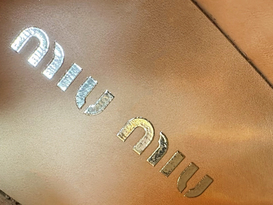 기타 디테일: 레이스업 클로징, 클래식 앞코, 미우미우 로고 인솔 프린트