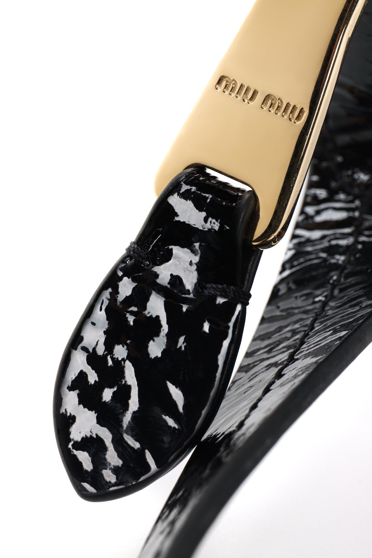 미우미우 나플락 파우치 페이던트 미니백(Miu Miu Naplak Pouch Patent Mini Bag)은 미우미우 특유의 대담하고 유니크한 감각이 반영된 초소형 크로스백입니다. 광택감 있는 페이던트(에나멜) 가죽과 미니멀한 디자인이 어우러져, 작지만 강렬한 스타일 포인트가 되는 아이템입니다.