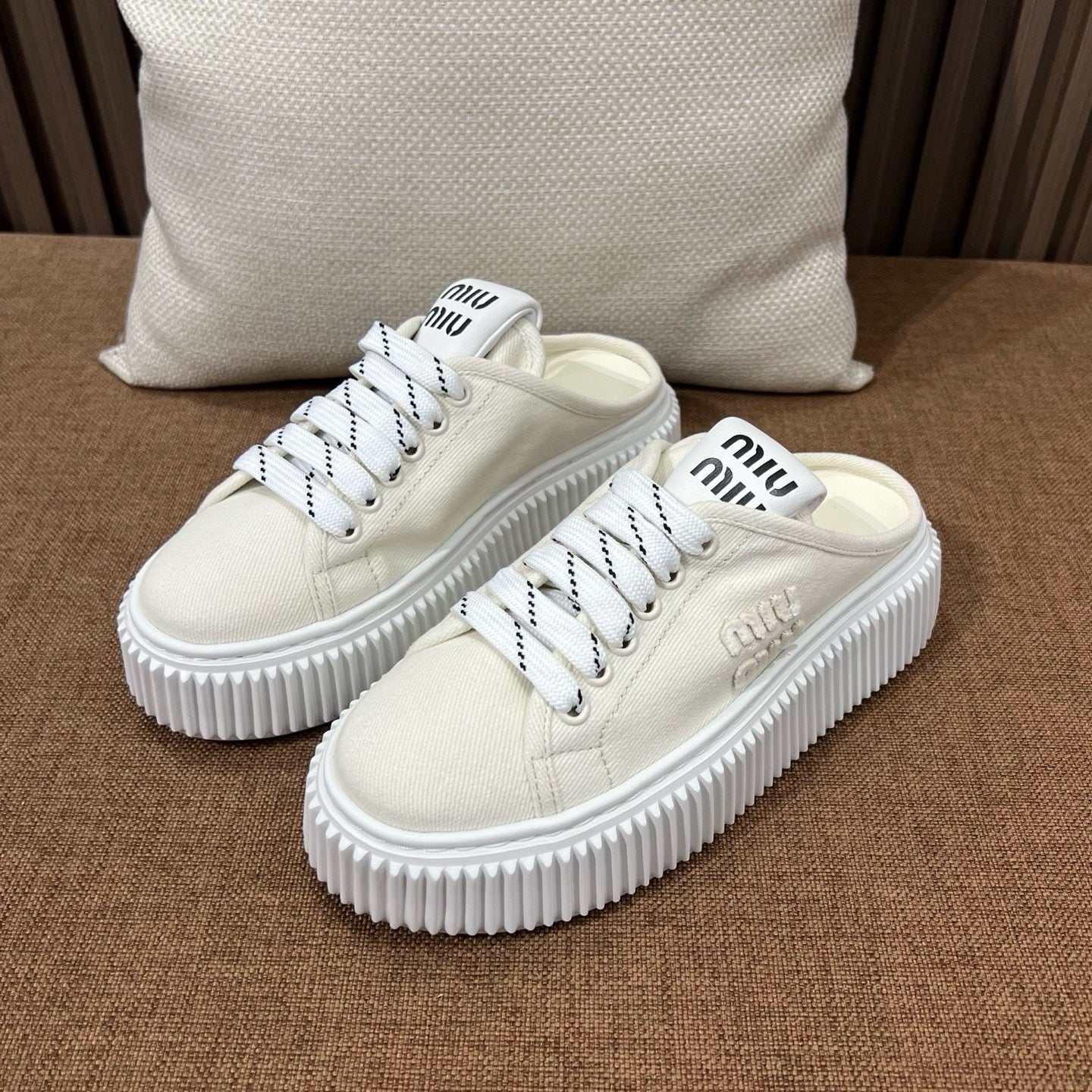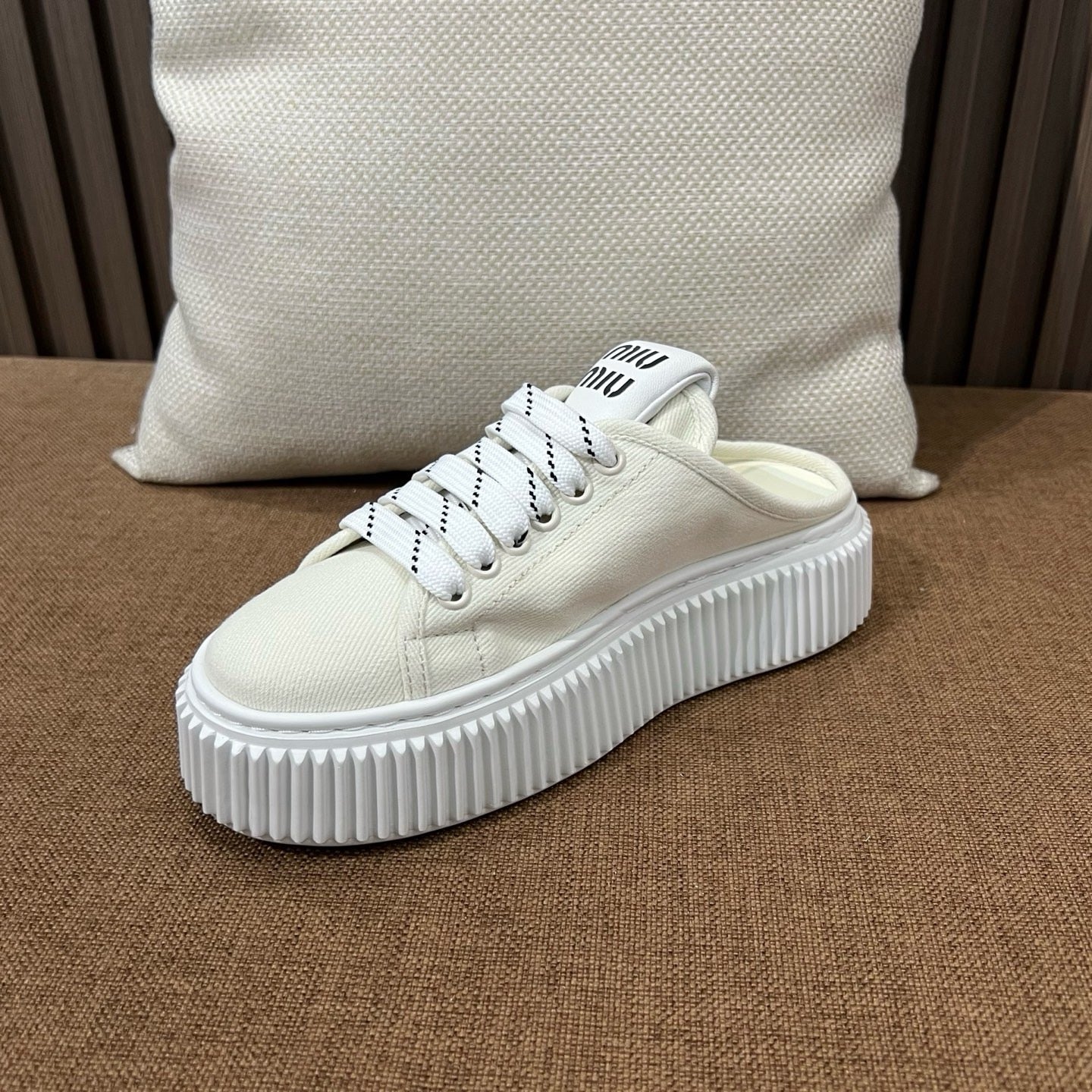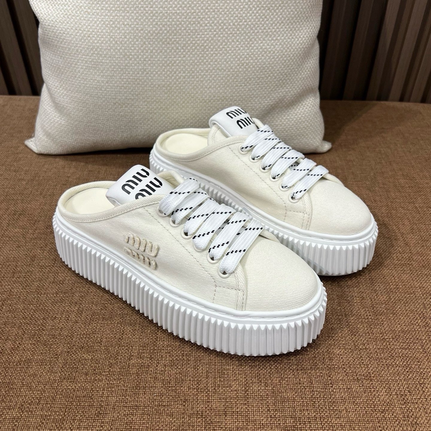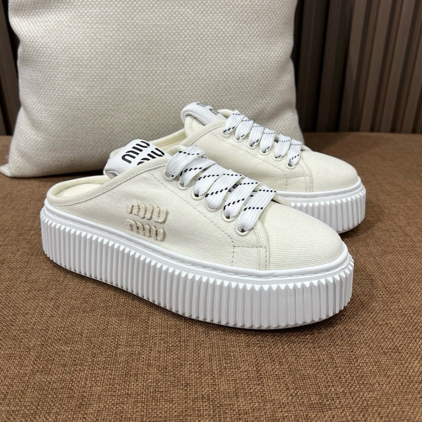 • 디자인: 발등 커버형 슬립온, 미우미우 로고 디테일