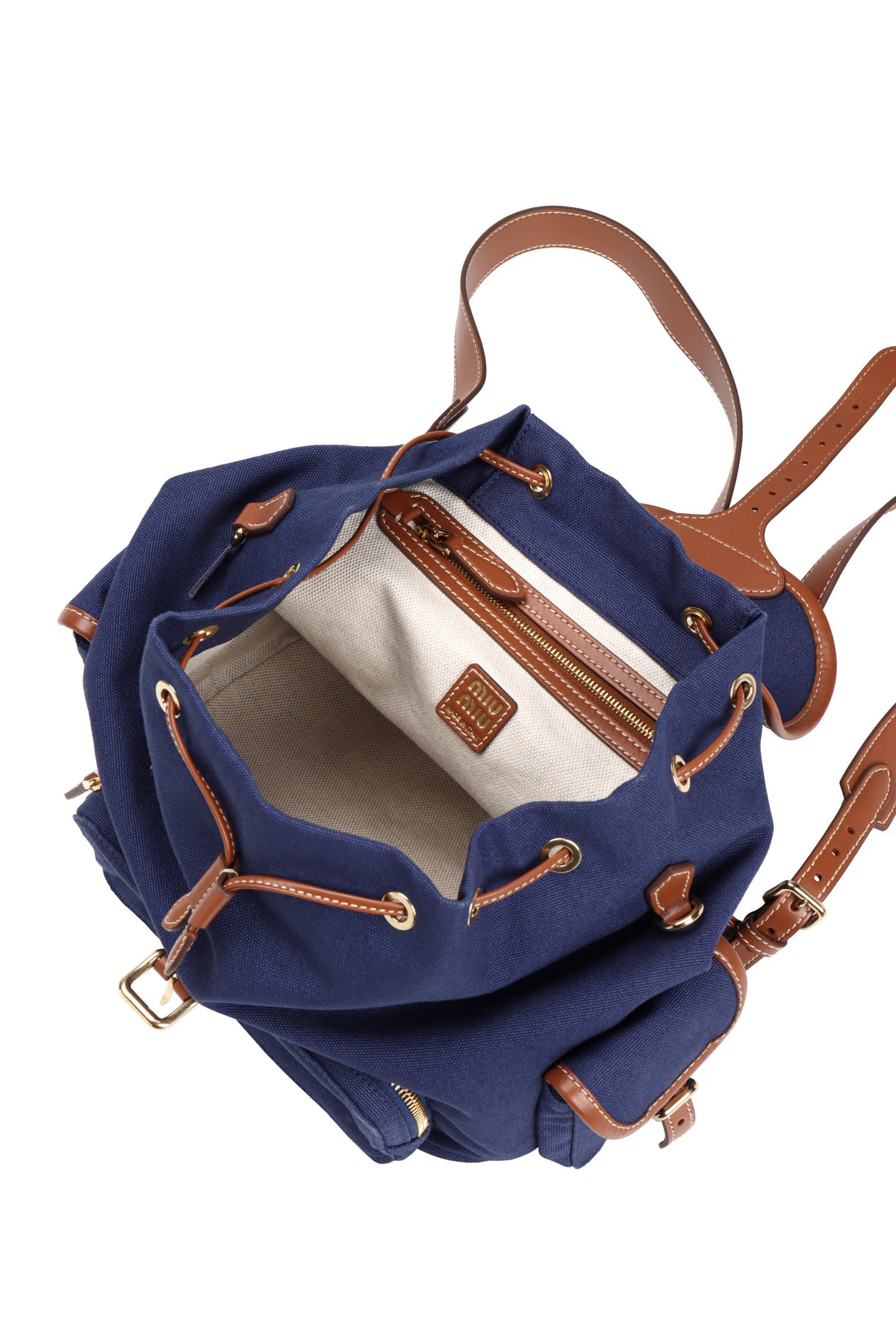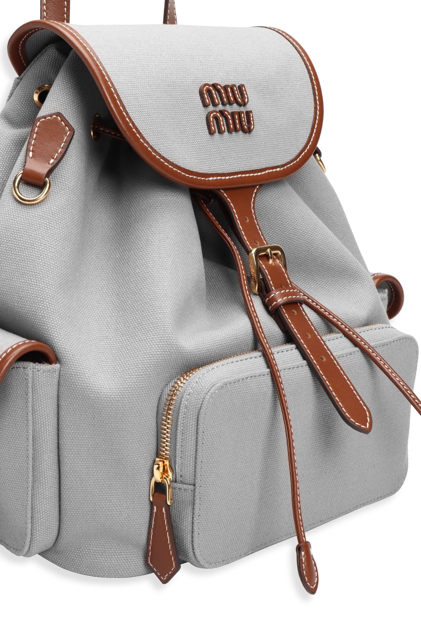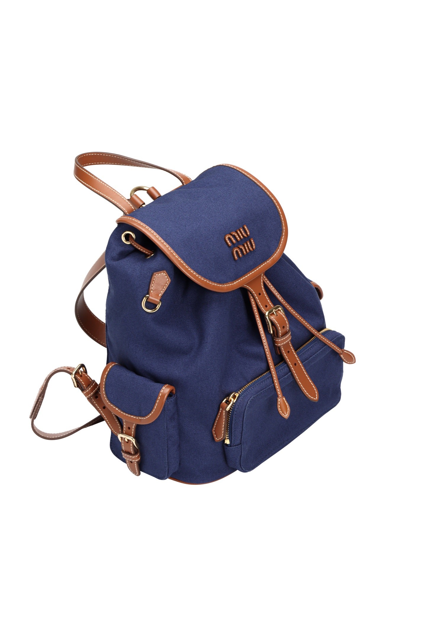 미우미우 캔버스 앤 레더 백팩 미디움(Miu Miu Canvas and Leather Backpack Medium) - 안정적인 백팩 스타일