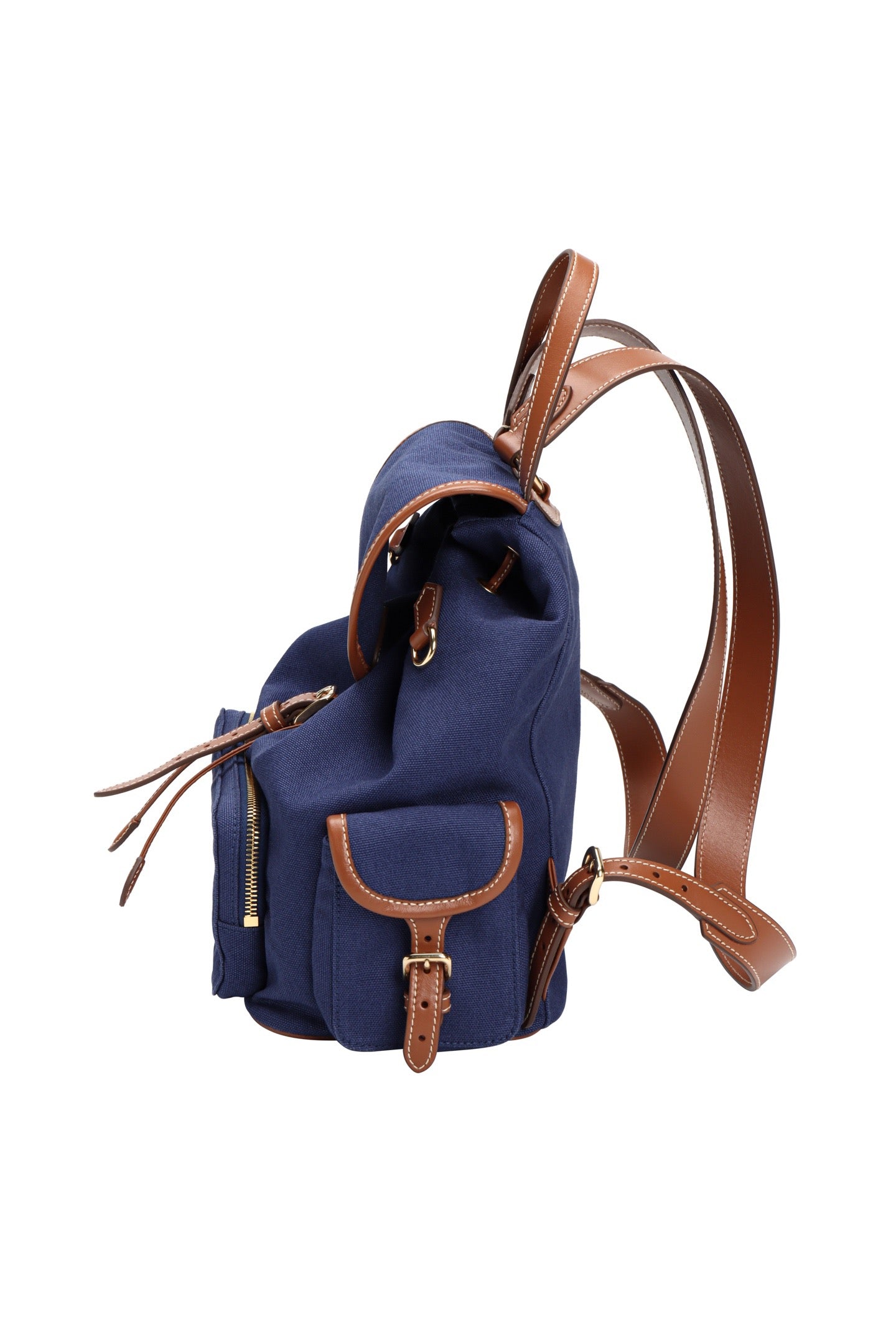 캔버스 바디와 가죽 디테일이 어우러진 구조적 디자인에 실용적인 수납 구성과 클래식한 백팩 스타일이 특징입니다.