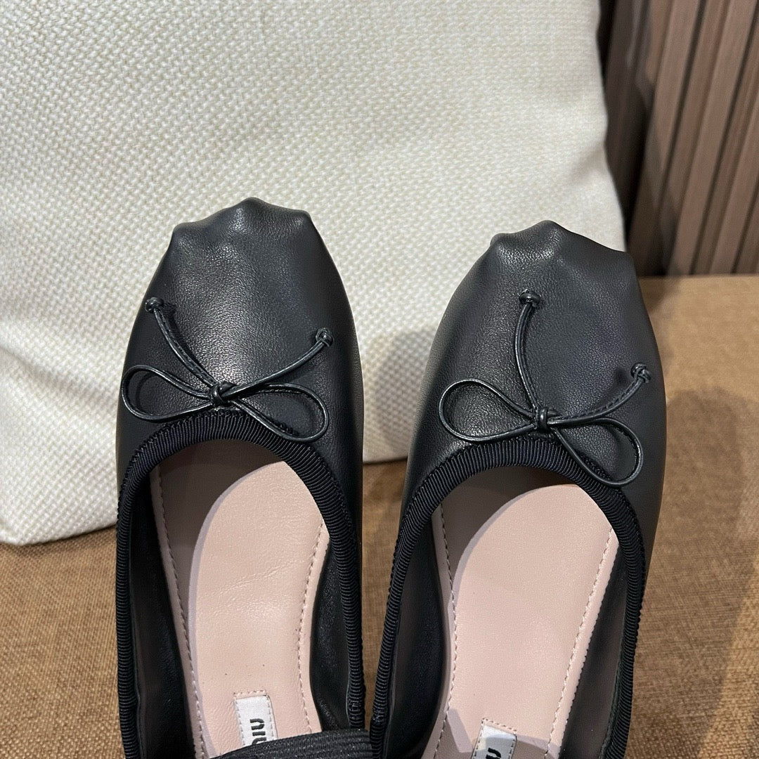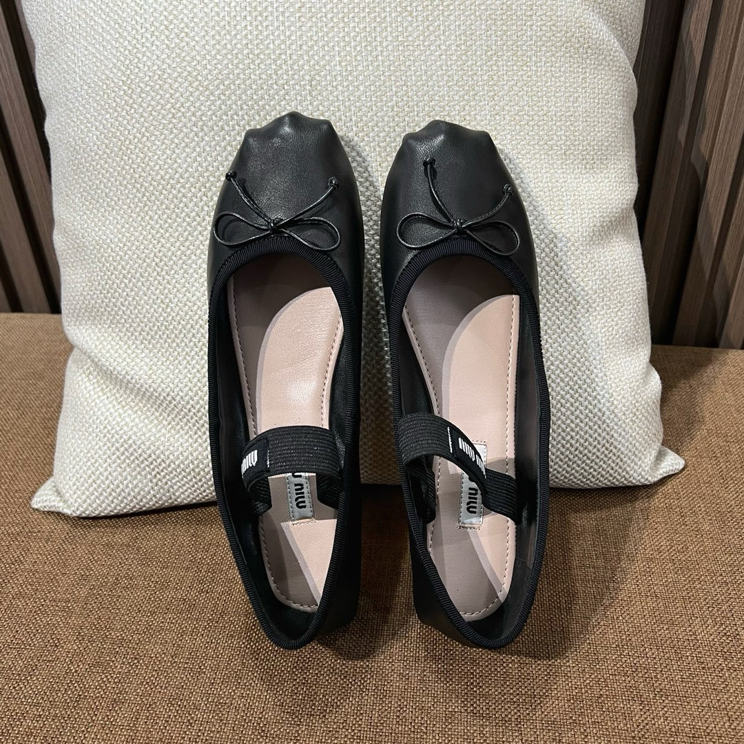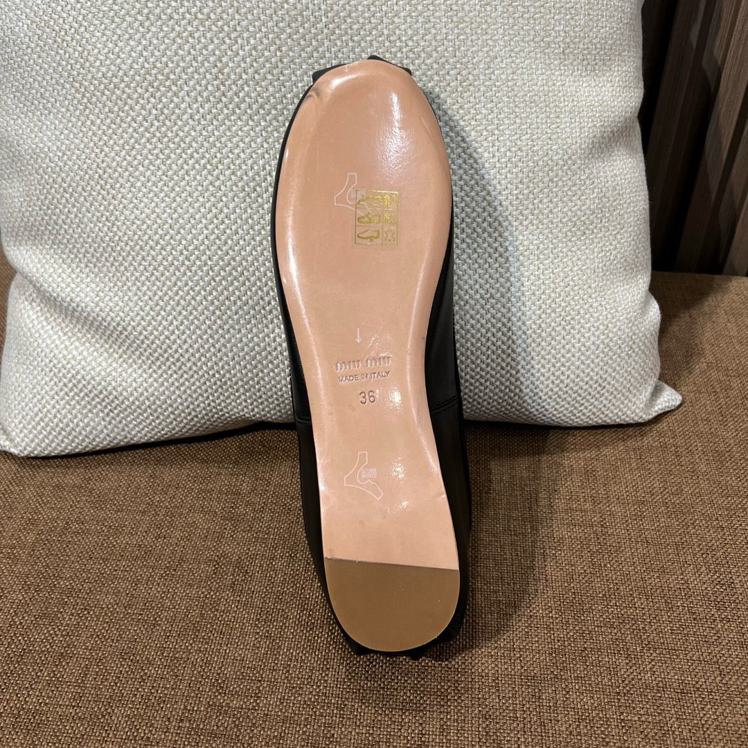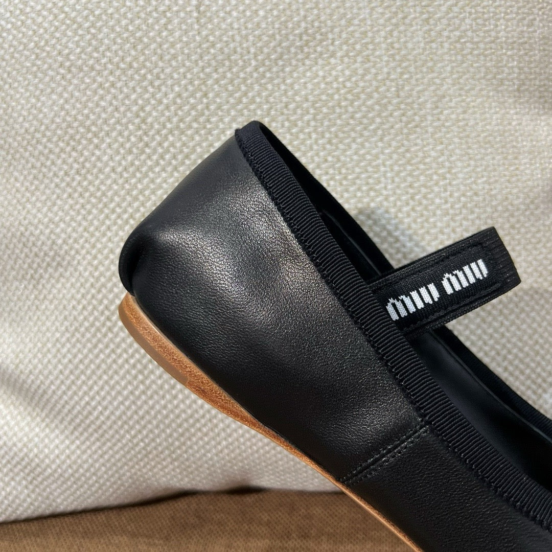 미우미우 로고 스트랩 레더 발레리나 플랫 슈즈