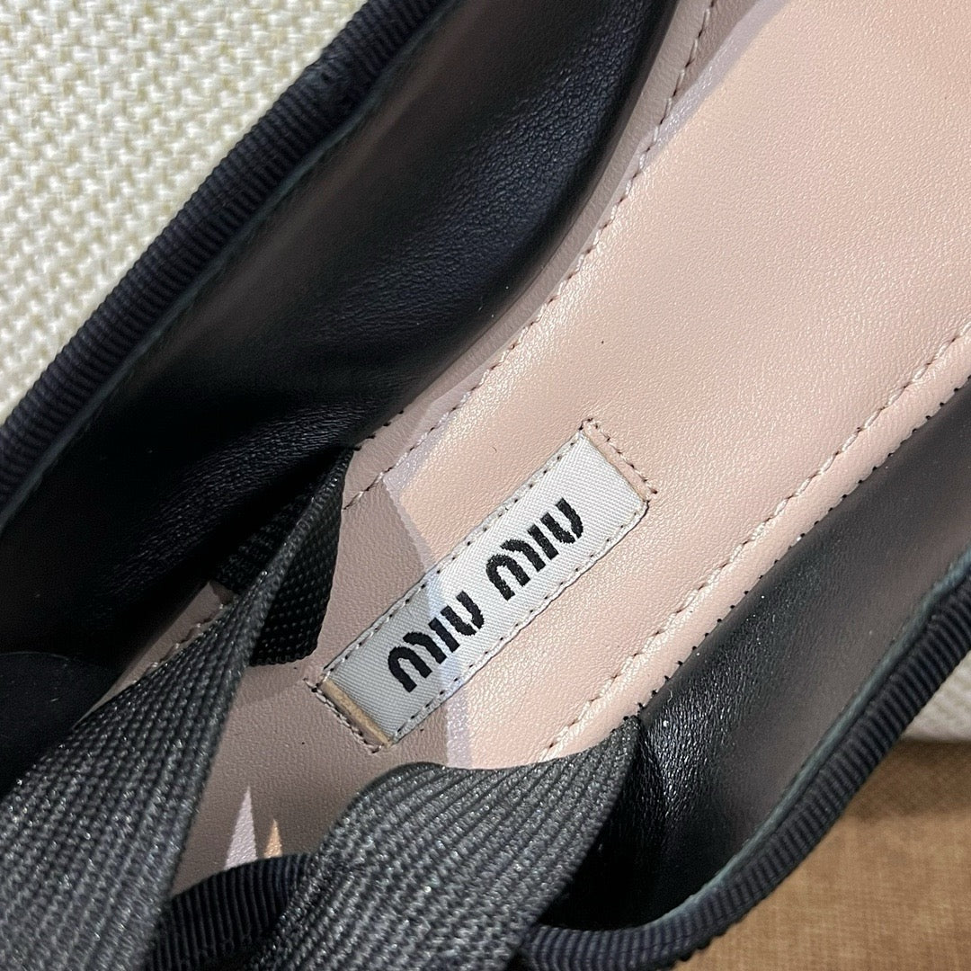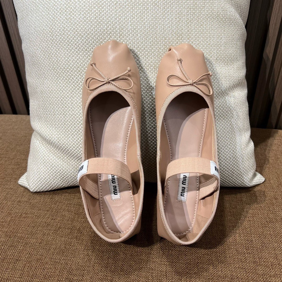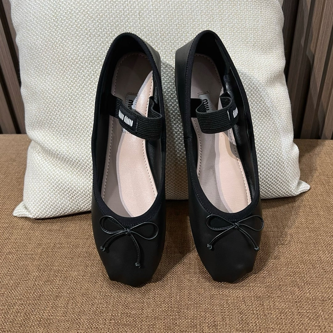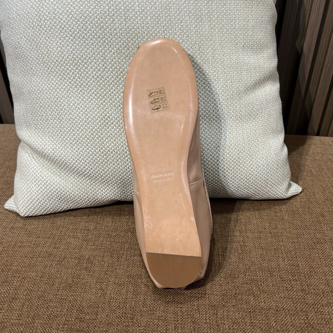 미우미우 로고 스트랩 레더 발레리나 플랫 슈즈