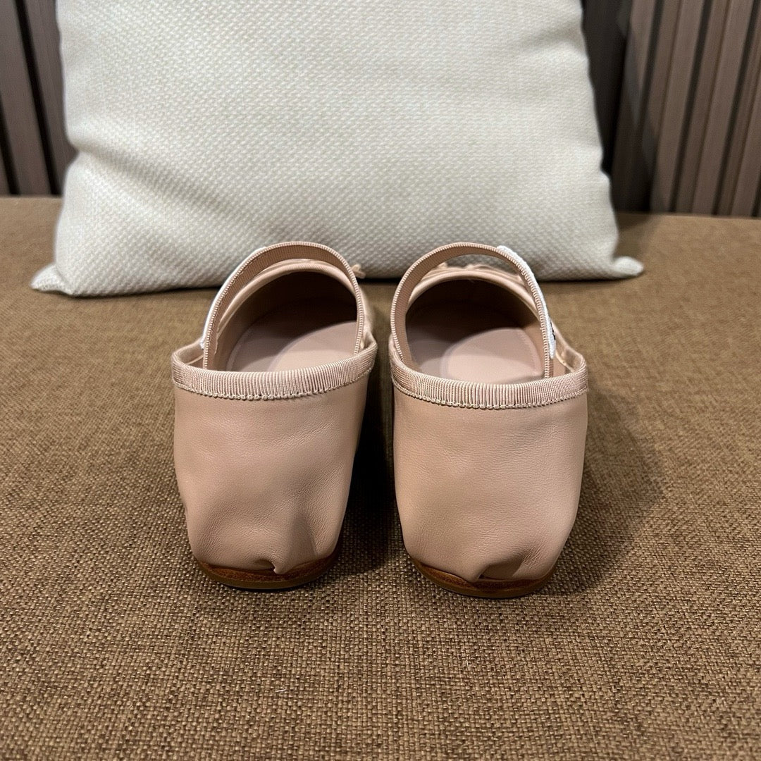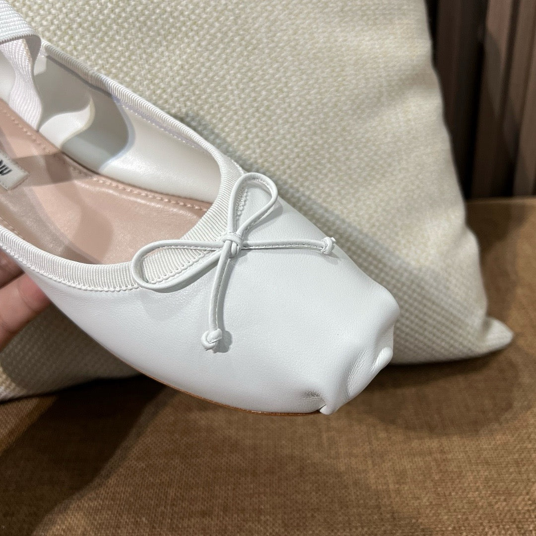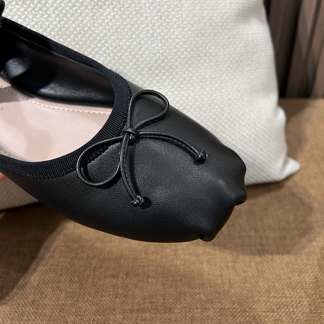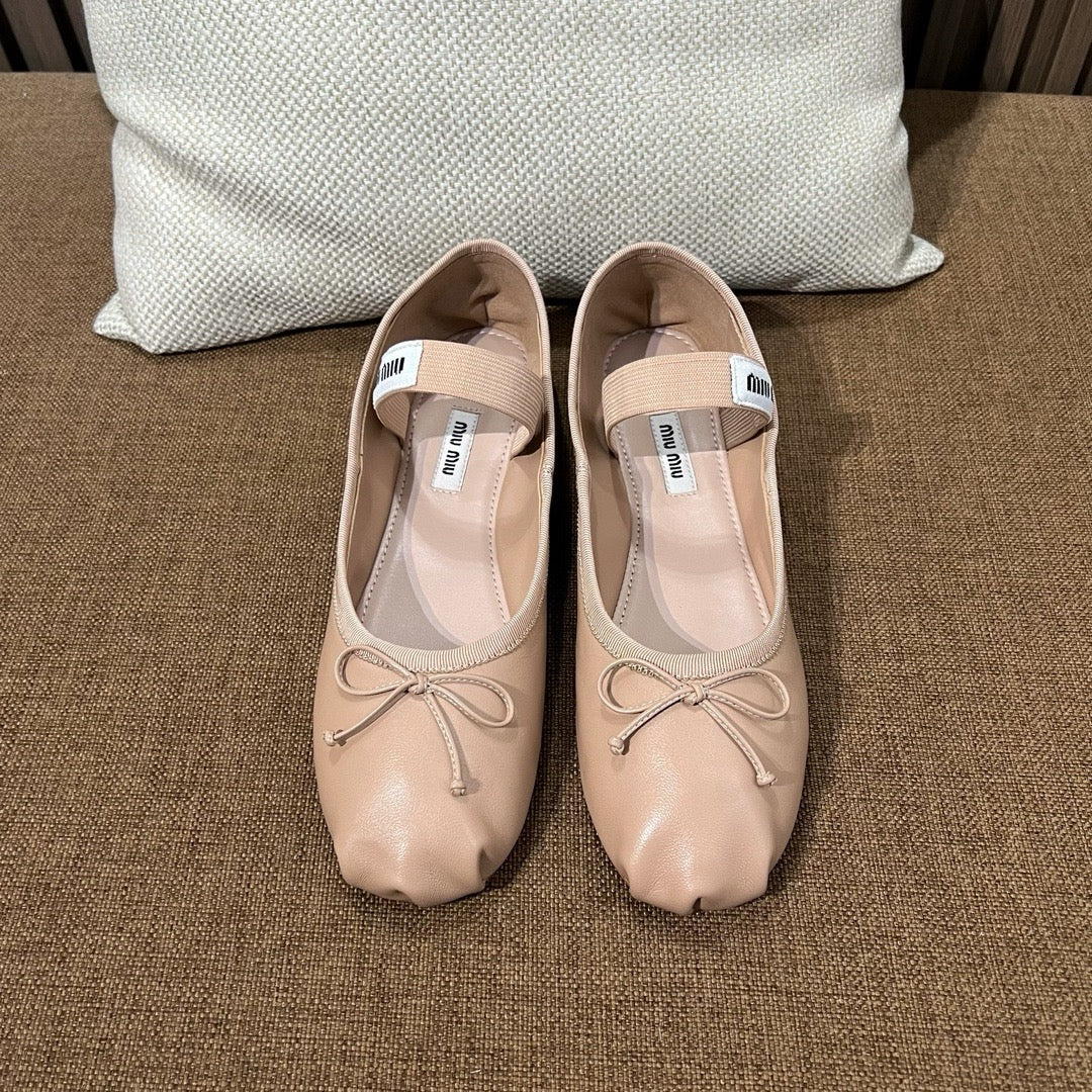 미우미우 로고 스트랩 레더 발레리나 플랫 슈즈