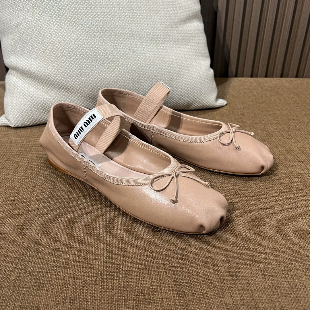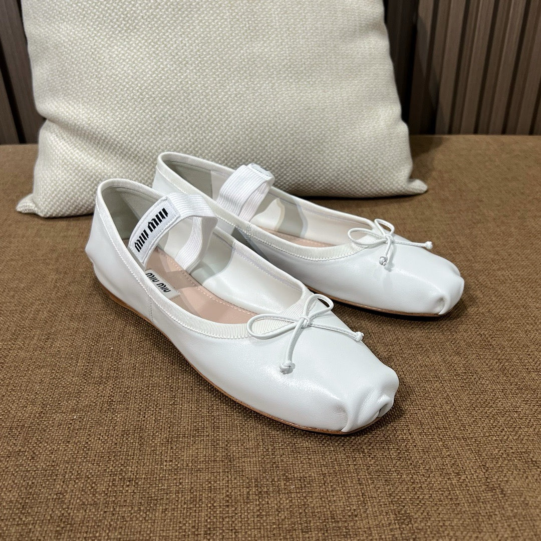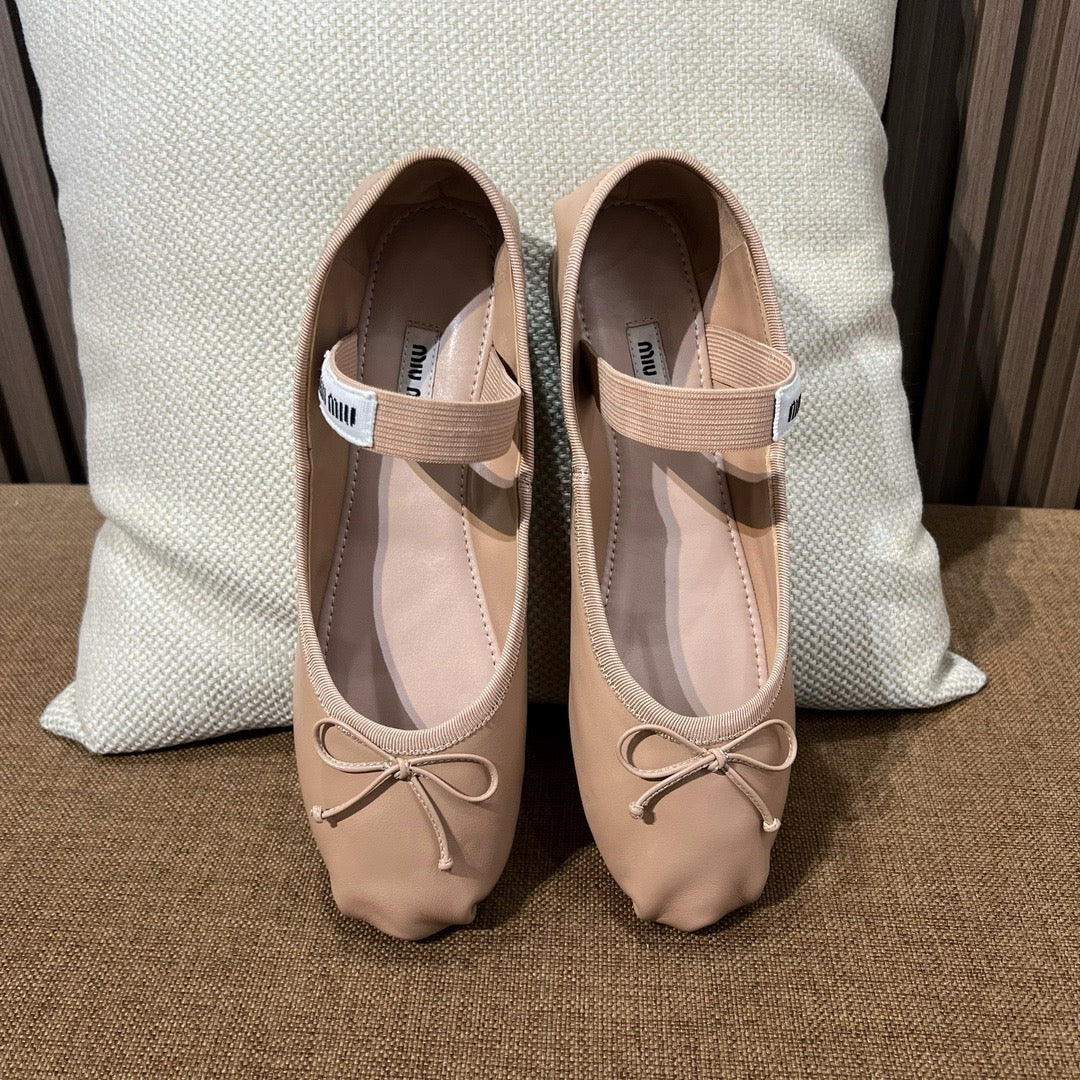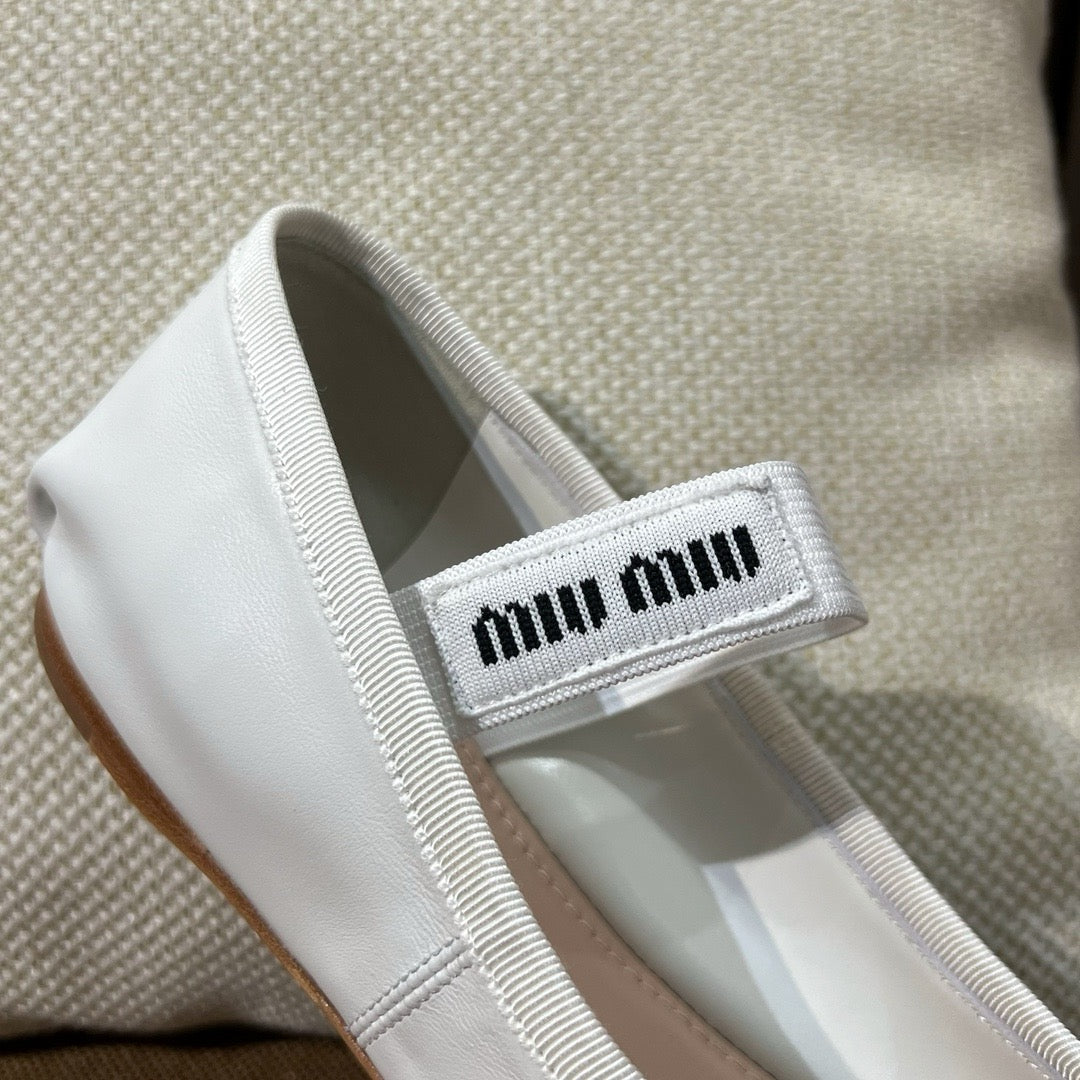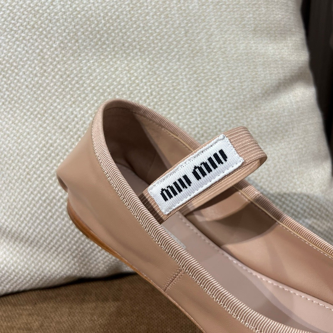 미우미우 로고 스트랩 레더 발레리나 플랫 슈즈(Miu Miu Logo Strap Leather Ballerina Flat Shoes) - 캐주얼부터 페미닌룩까지