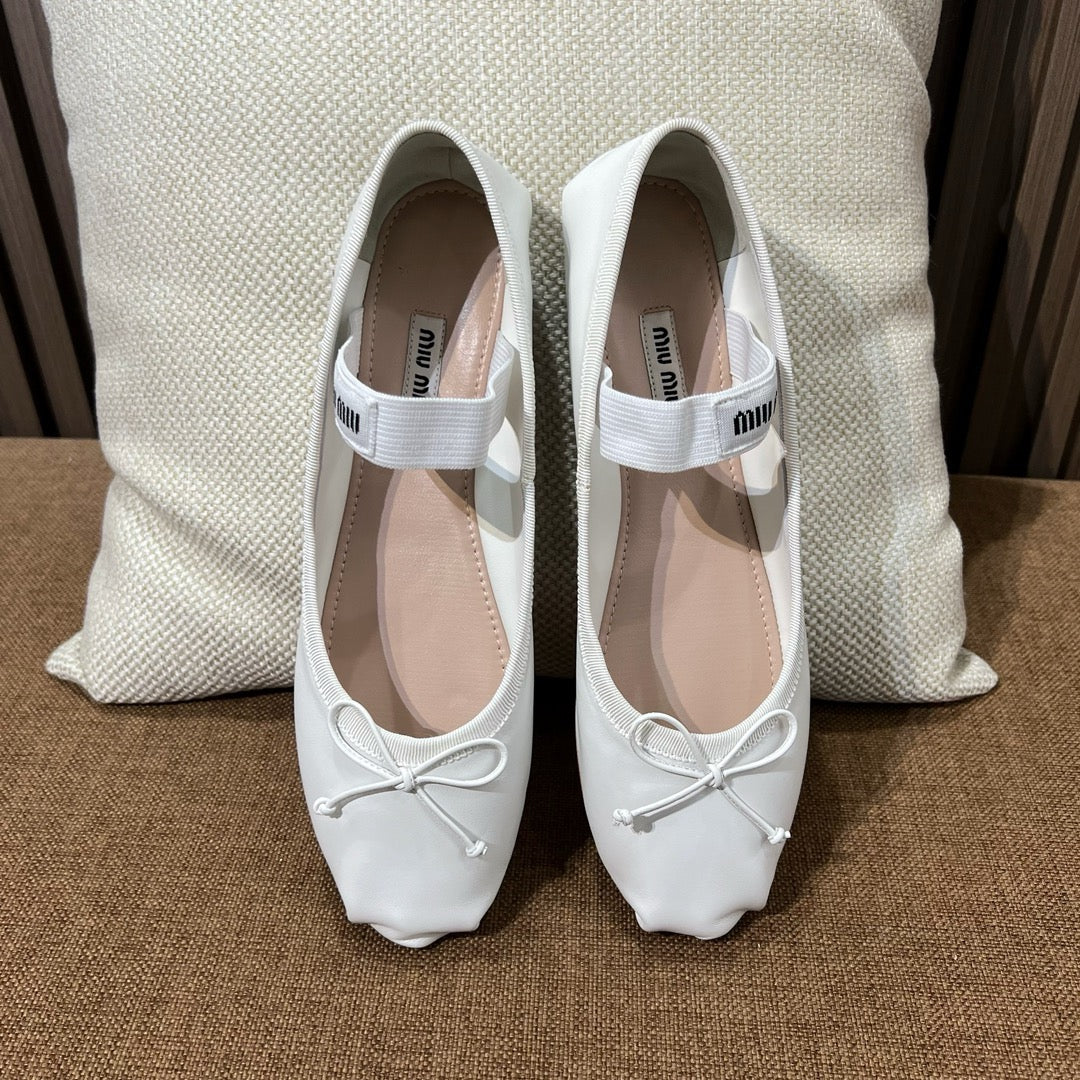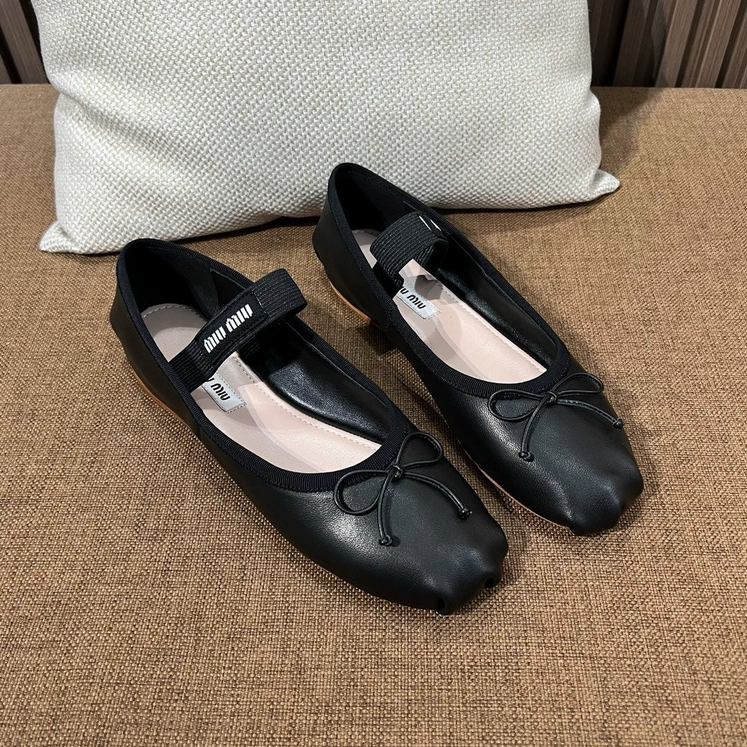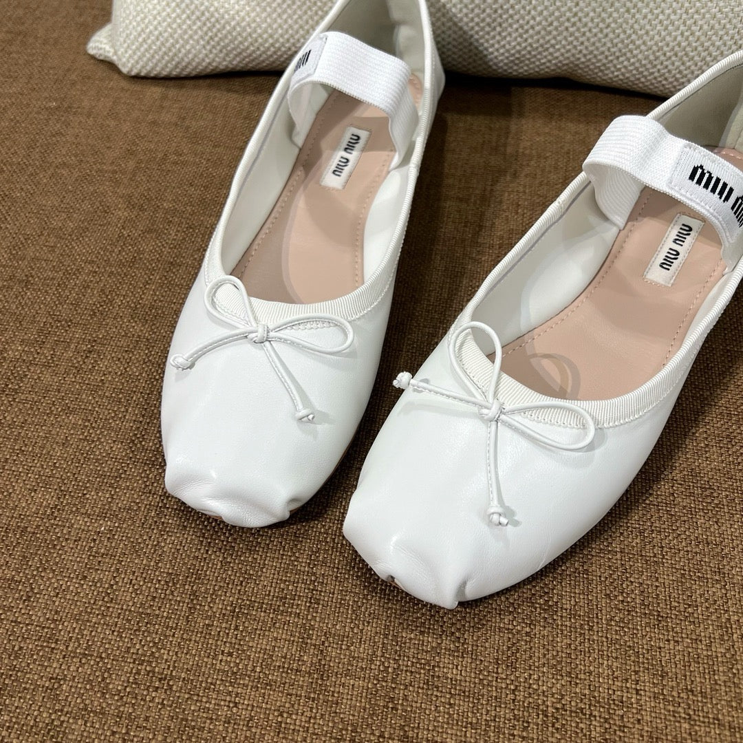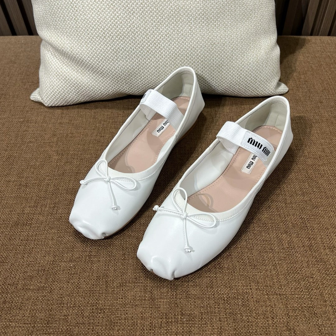 미우미우 로고 스트랩 레더 발레리나 플랫 슈즈(Miu Miu Logo Strap Leather Ballerina Flat Shoes) - 캐주얼부터 페미닌룩까지