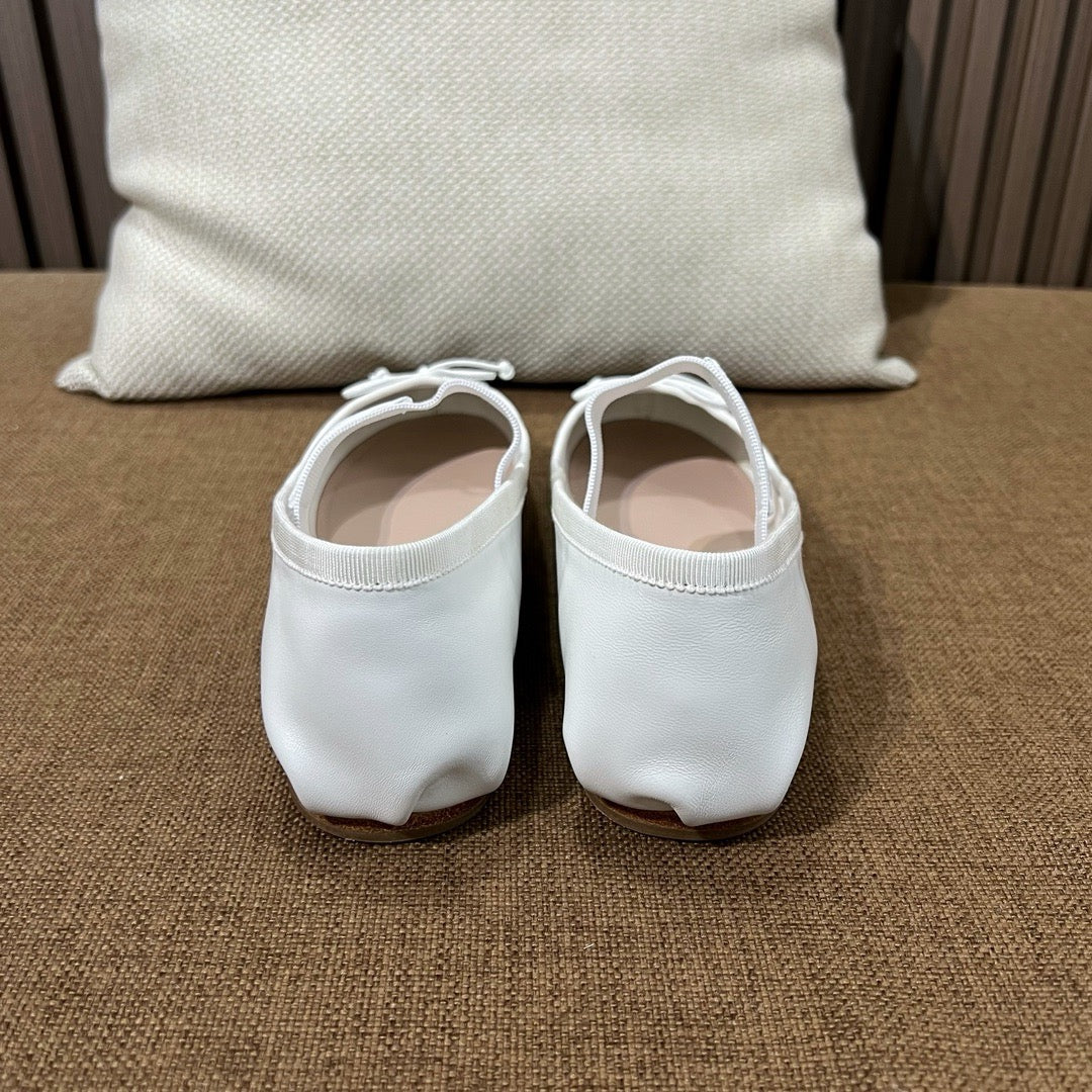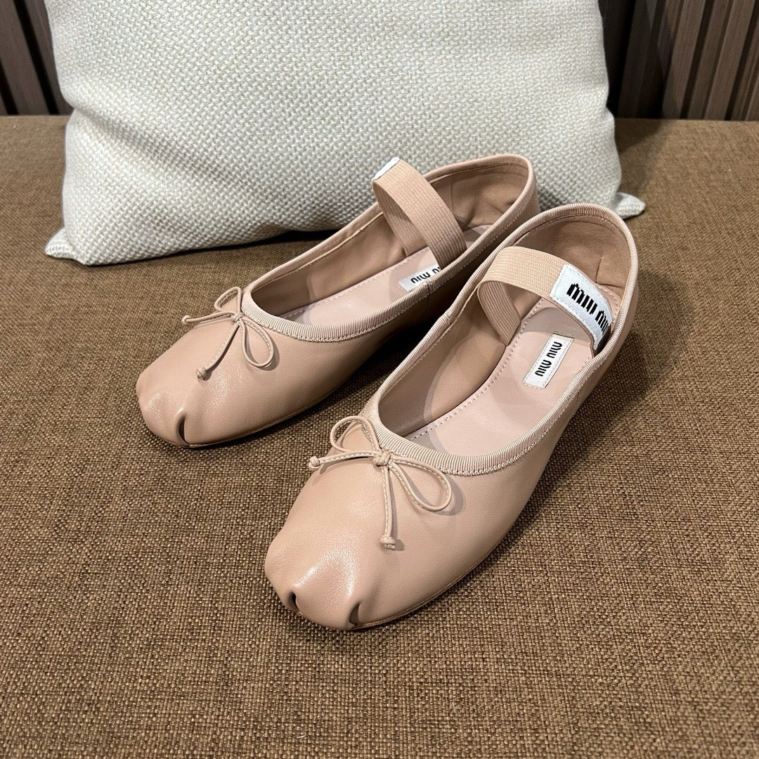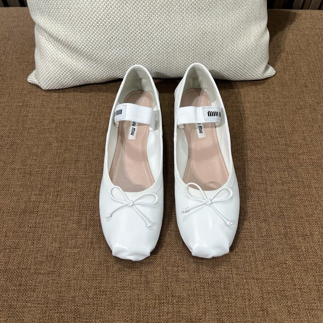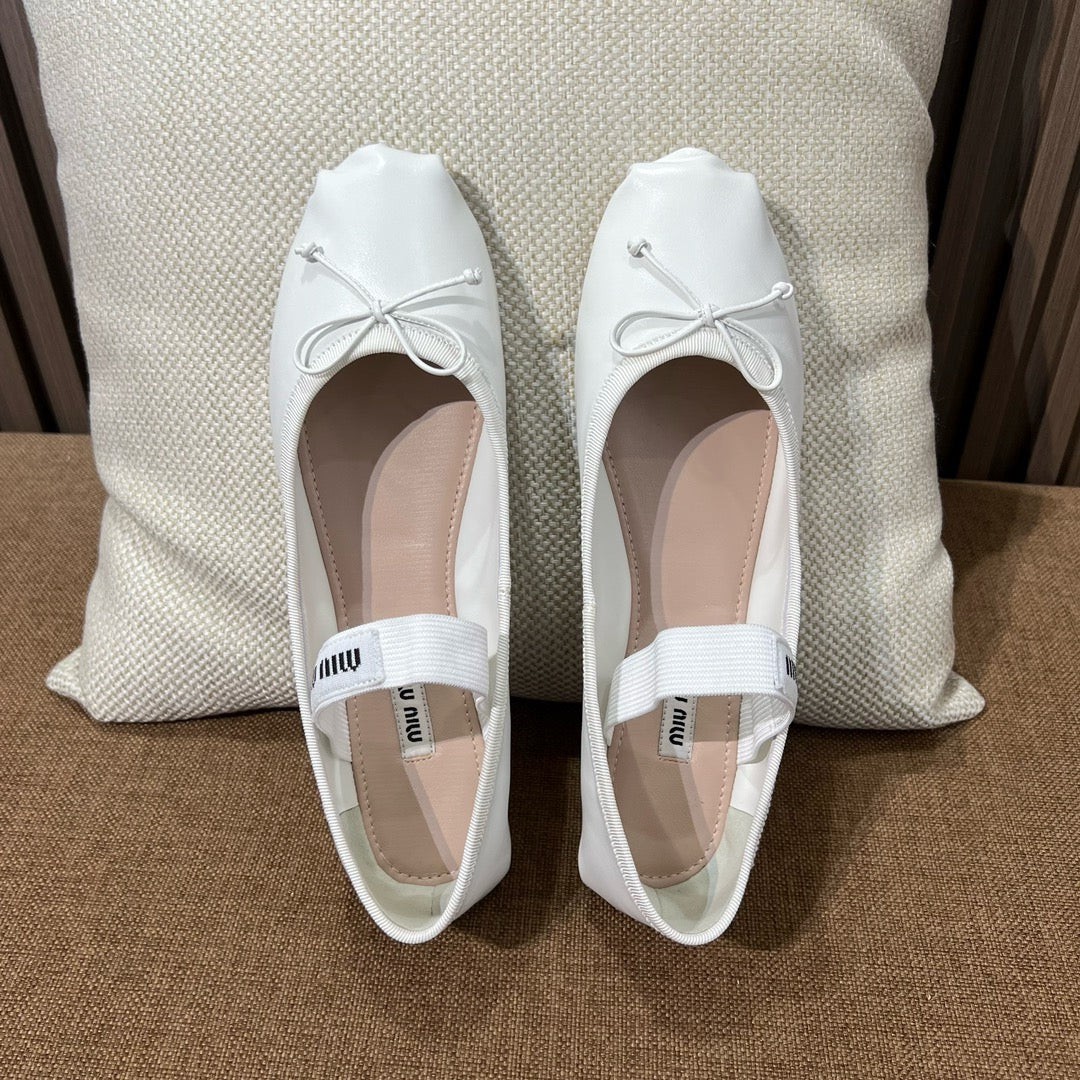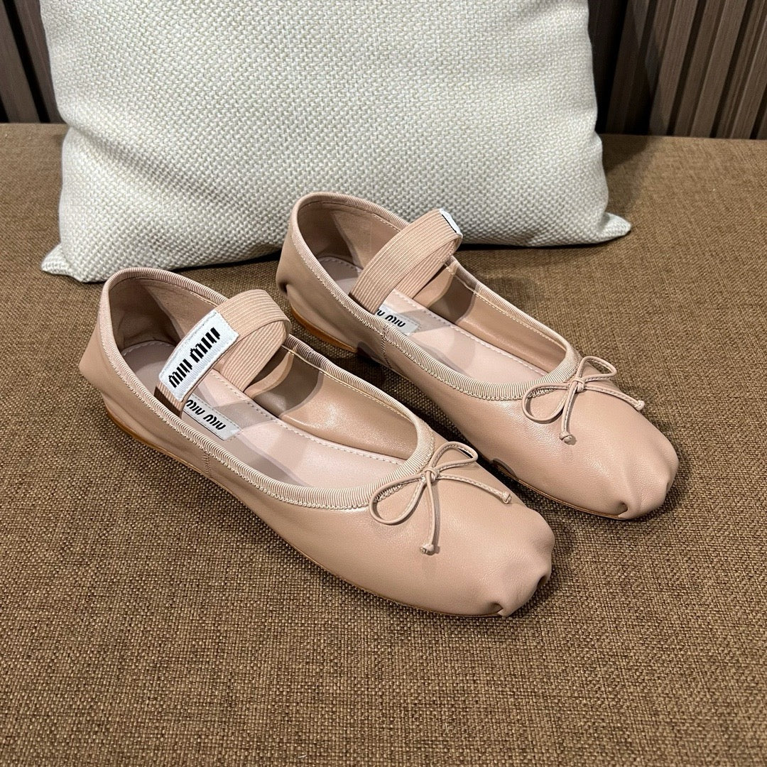 미우미우 로고 스트랩 레더 발레리나 플랫 슈즈(Miu Miu Logo Strap Leather Ballerina Flat Shoes) - 캐주얼부터 페미닌룩까지