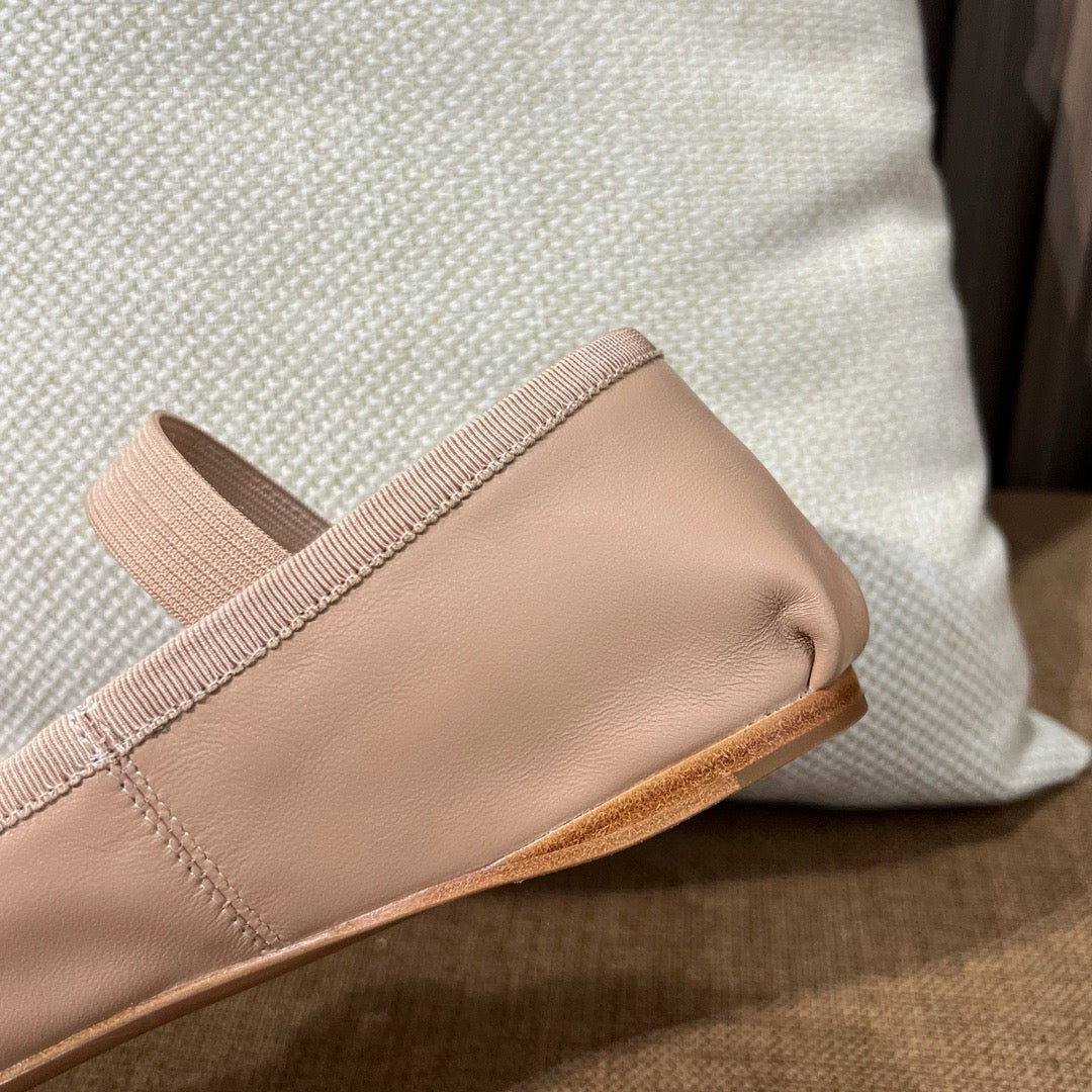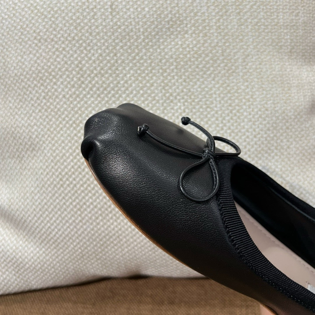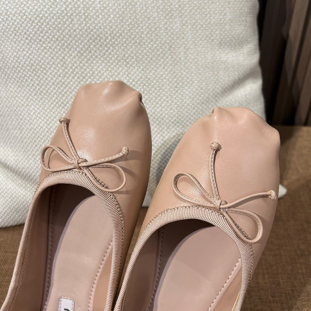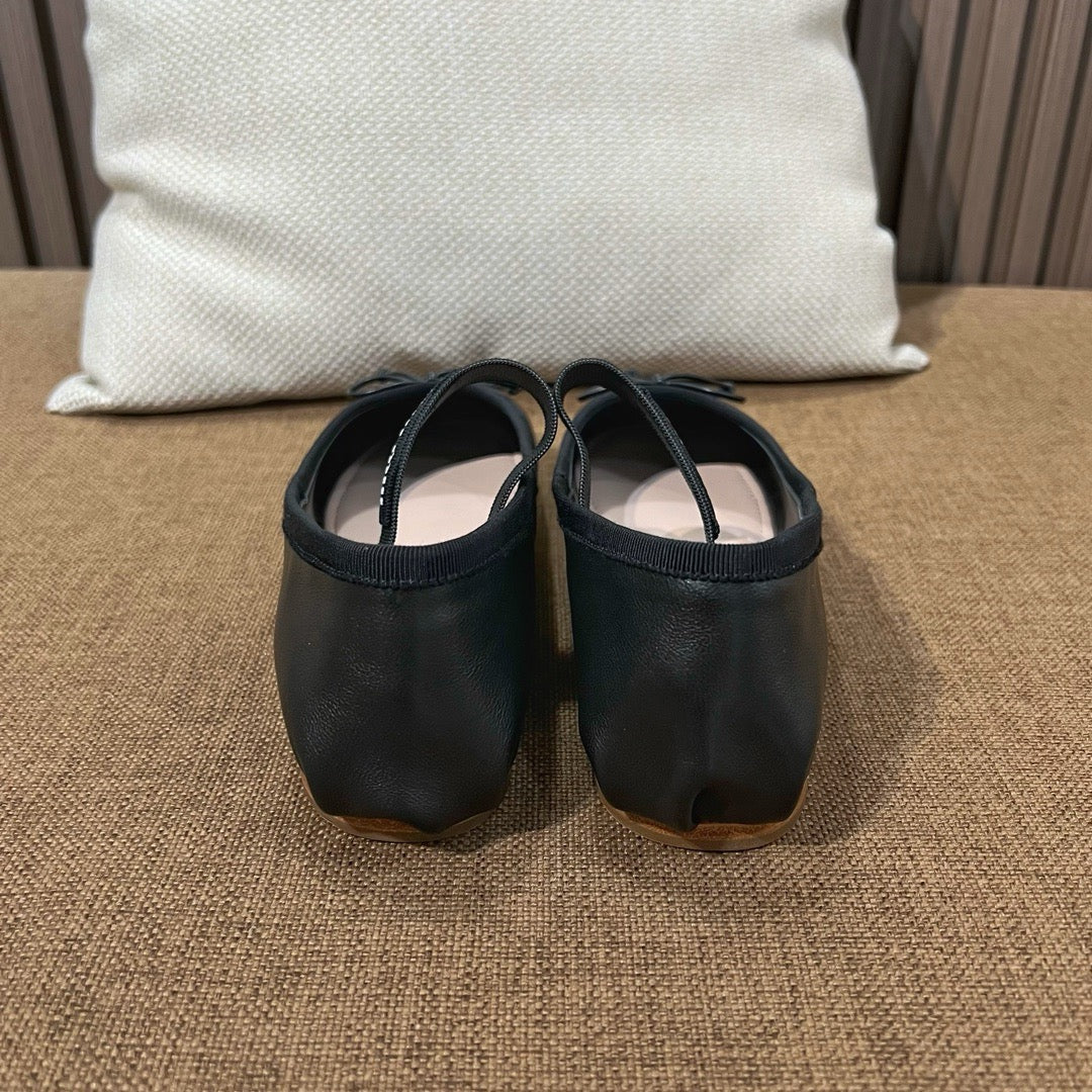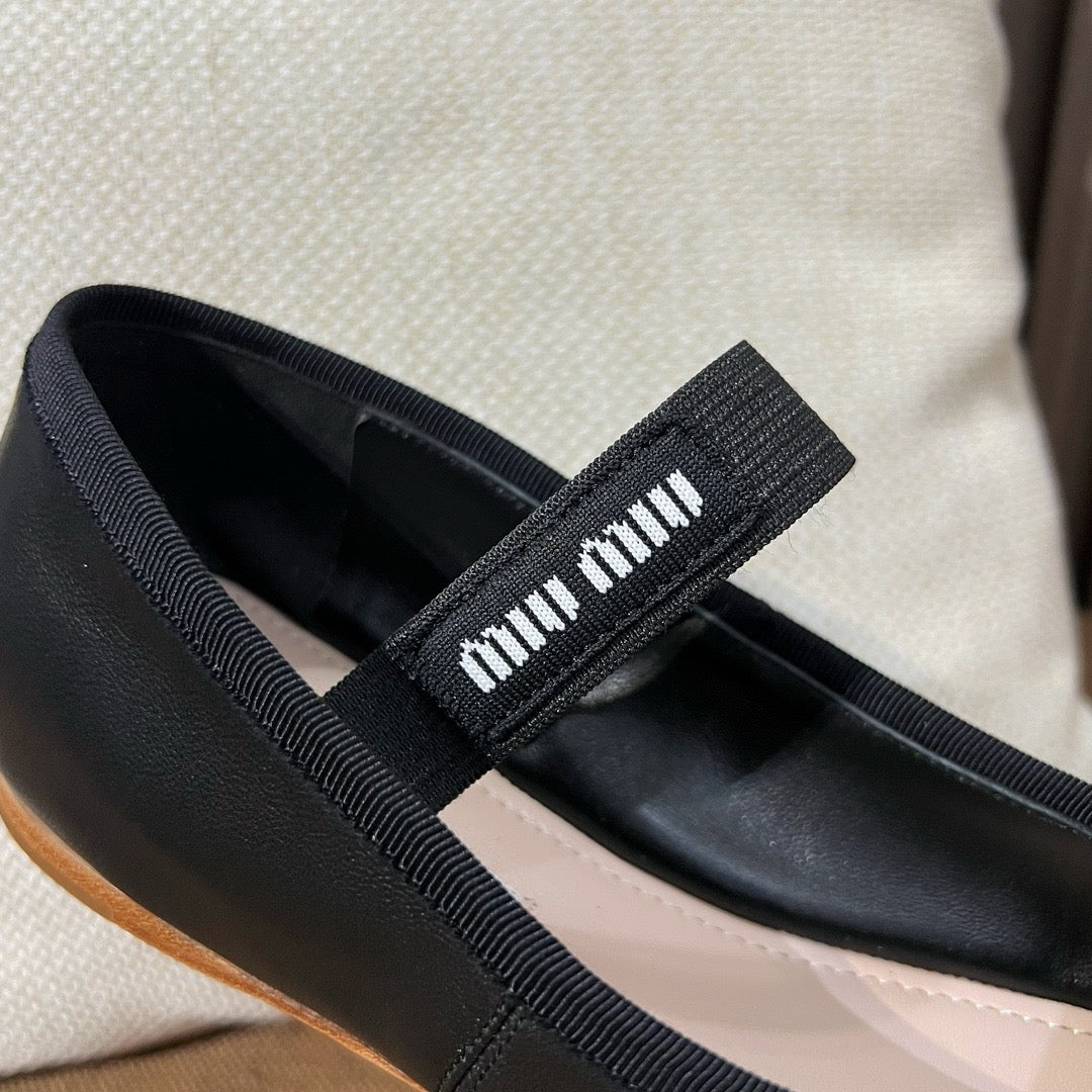 미우미우 로고 스트랩 레더 발레리나 플랫 슈즈(Miu Miu Logo Strap Leather Ballerina Flat Shoes) - 전통과 현대의 믹스매치