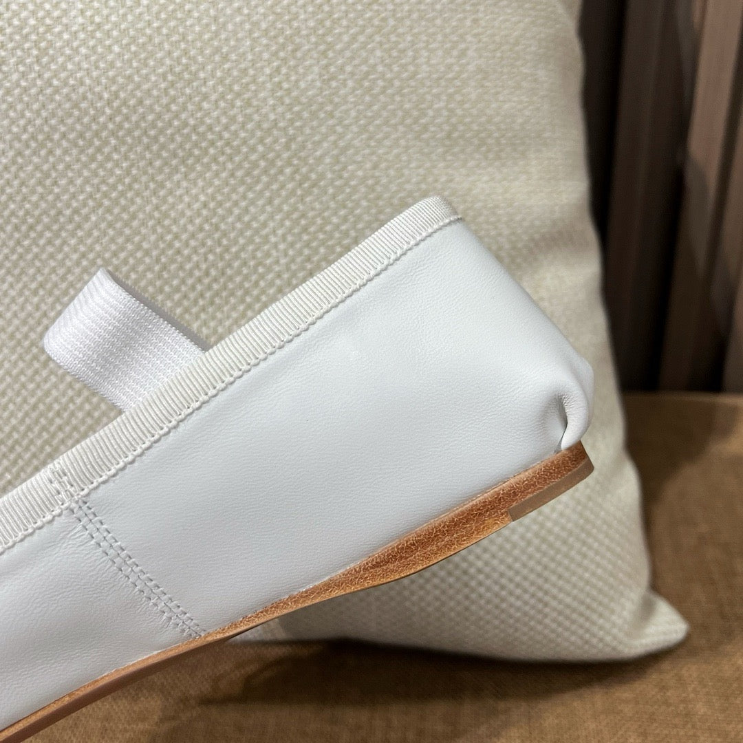 이 제품은 부드러운 송아지 가죽 소재의 클래식한 플랫에 발등을 감싸는 엘라스틱 로고 스트랩이 포인트로 더해져, 발레리나 슈즈의 단아한 이미지에 스포티한 감성을 더해줍니다. 라운드 앞코와 유연한 인솔이 착화 시 편안함을 제공하며, 스트랩은 발을 안정감 있게 고정해 줍니다.