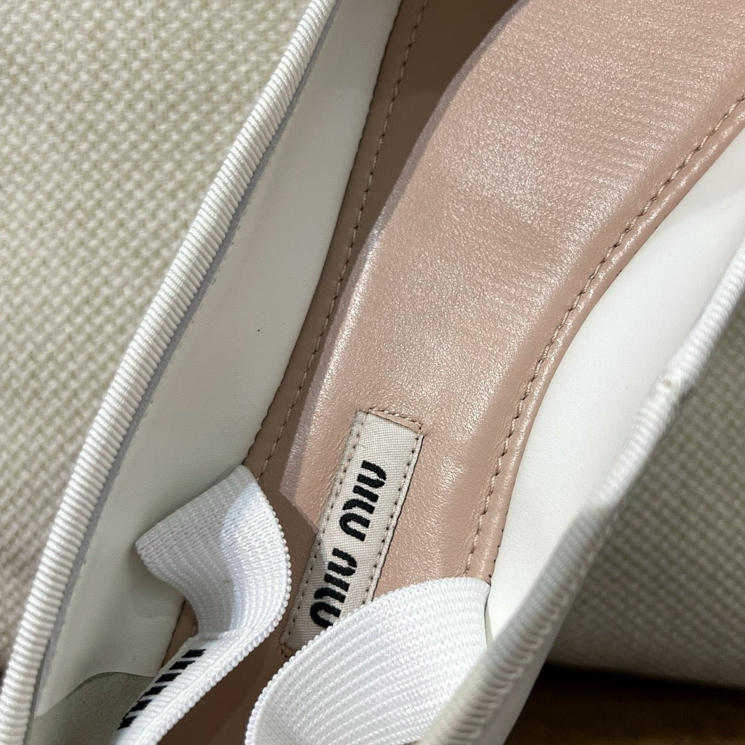 미우미우 로고 스트랩 레더 발레리나 플랫 슈즈(Miu Miu Logo Strap Leather Ballerina Flat Shoes) 디테일 및 소재