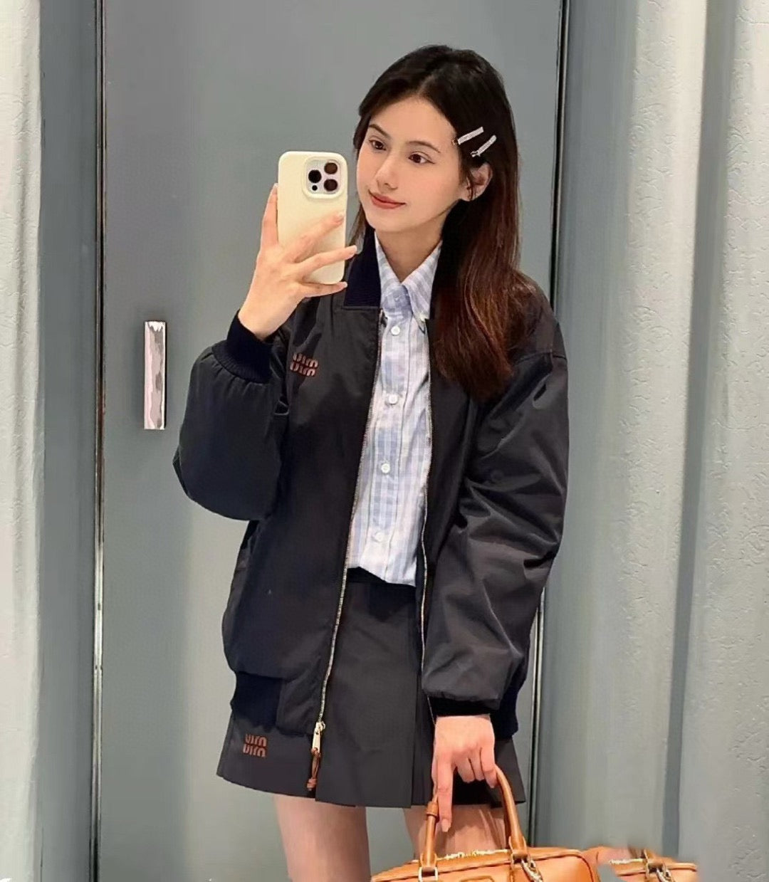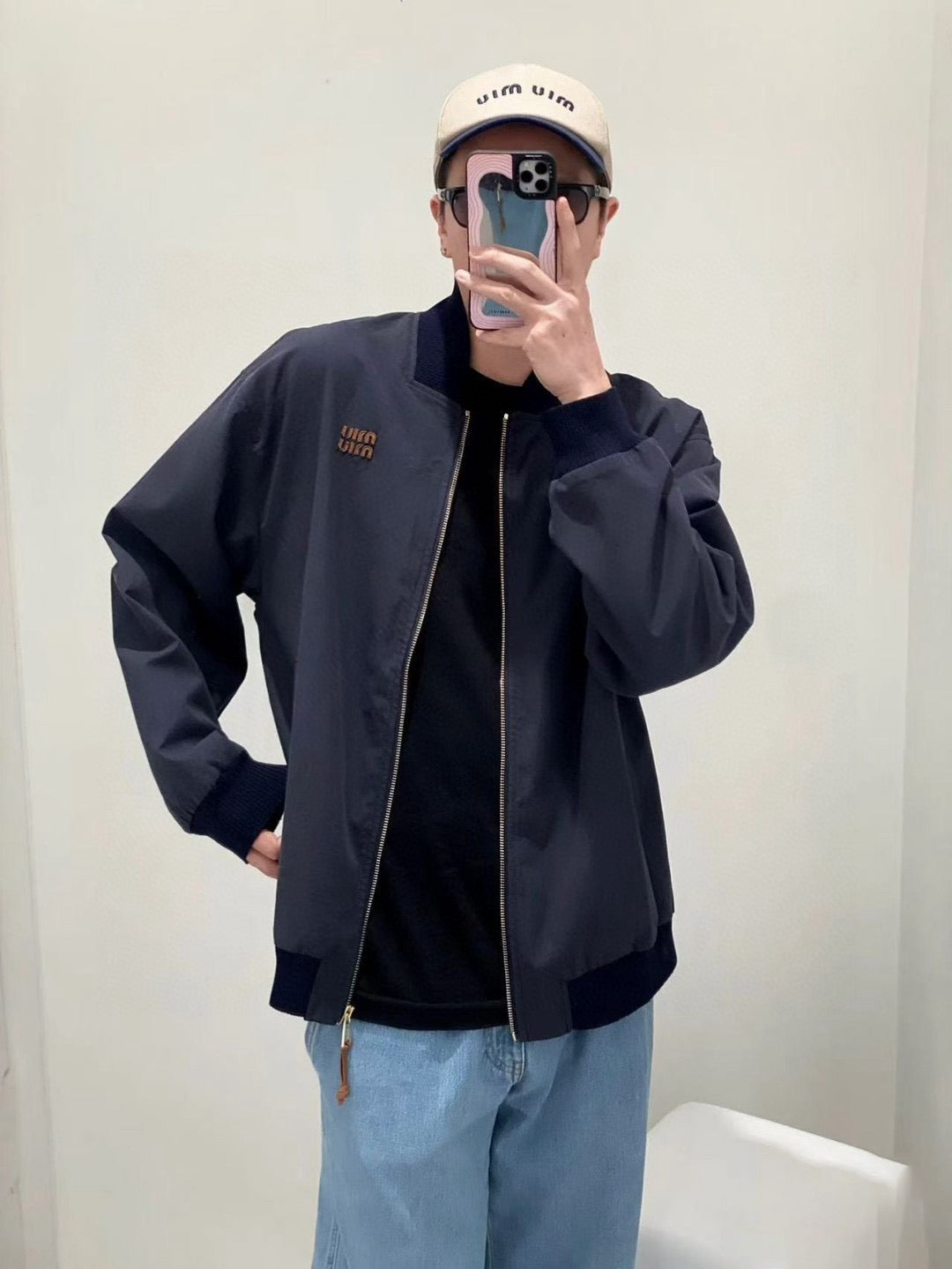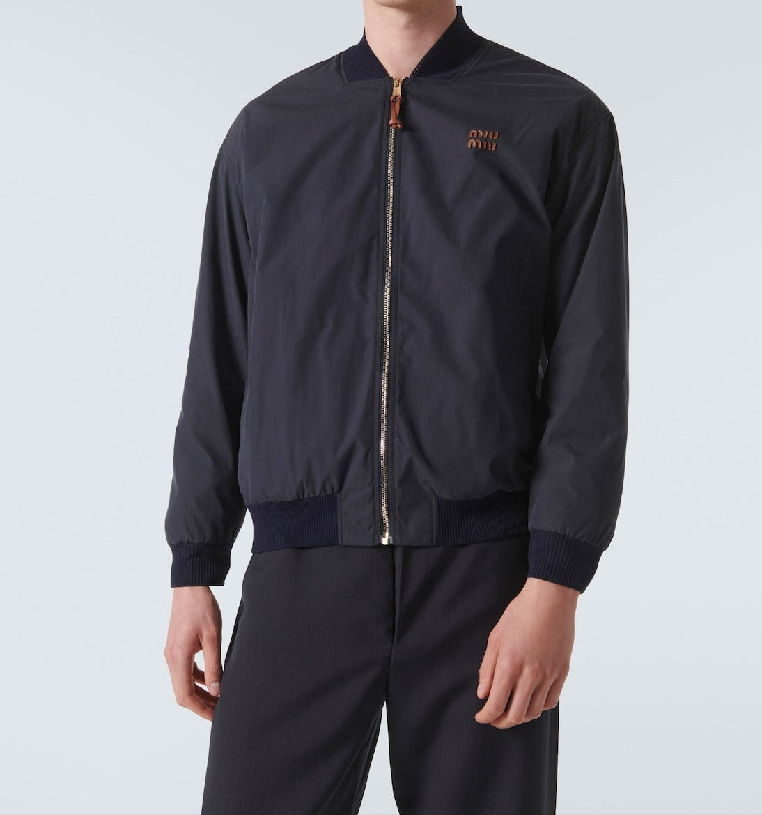 미우미우 로고 코튼 블렌드 봄버 자켓