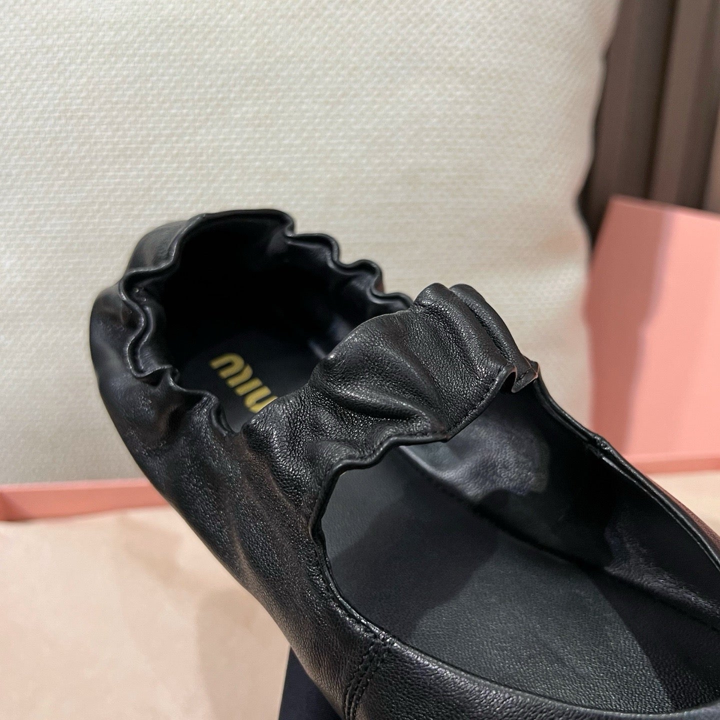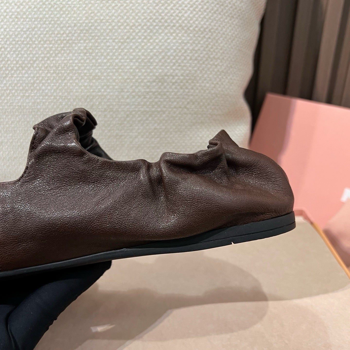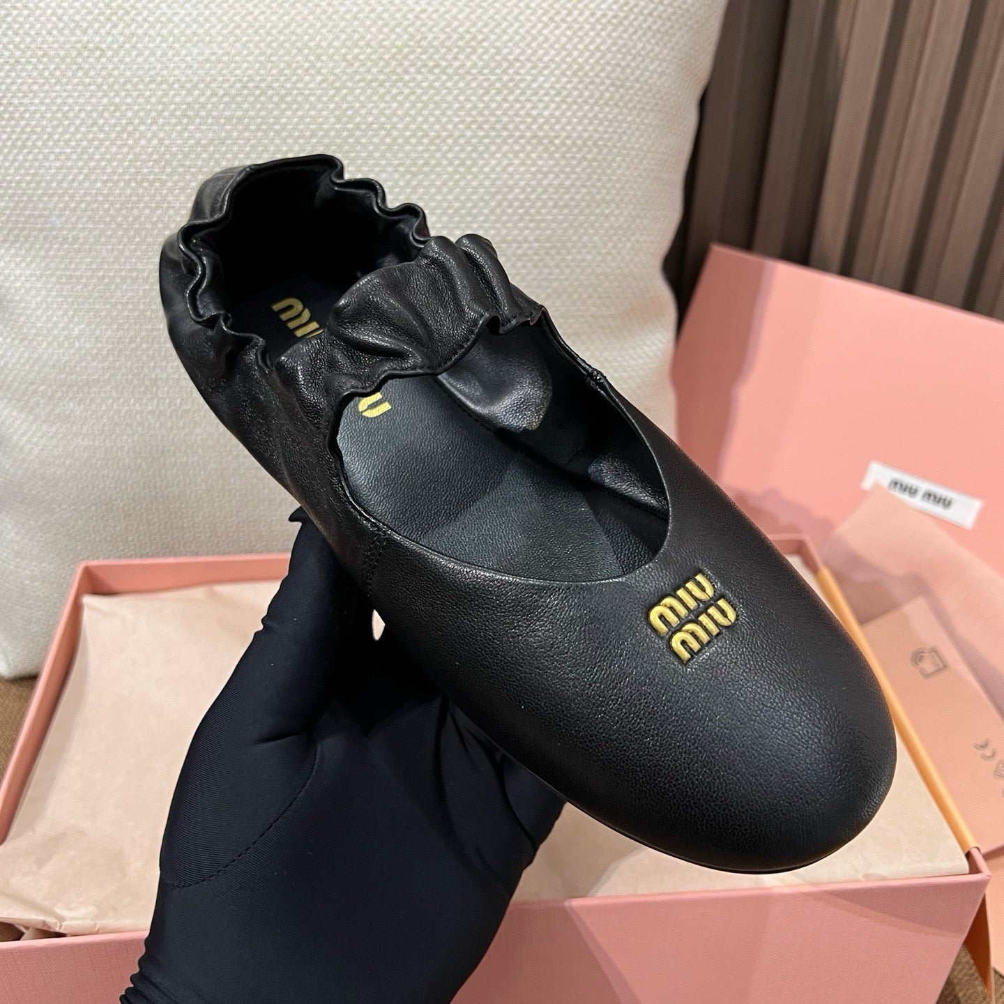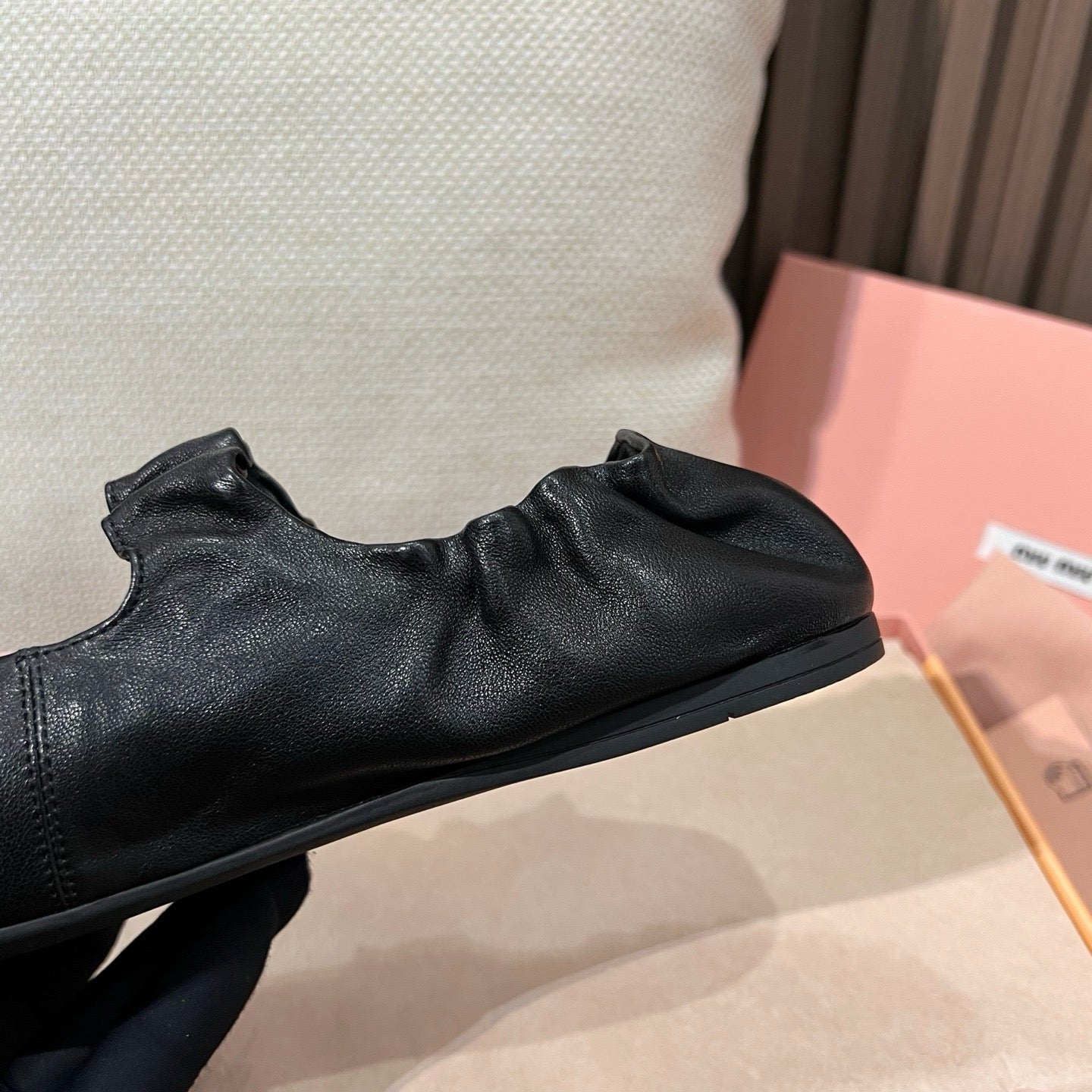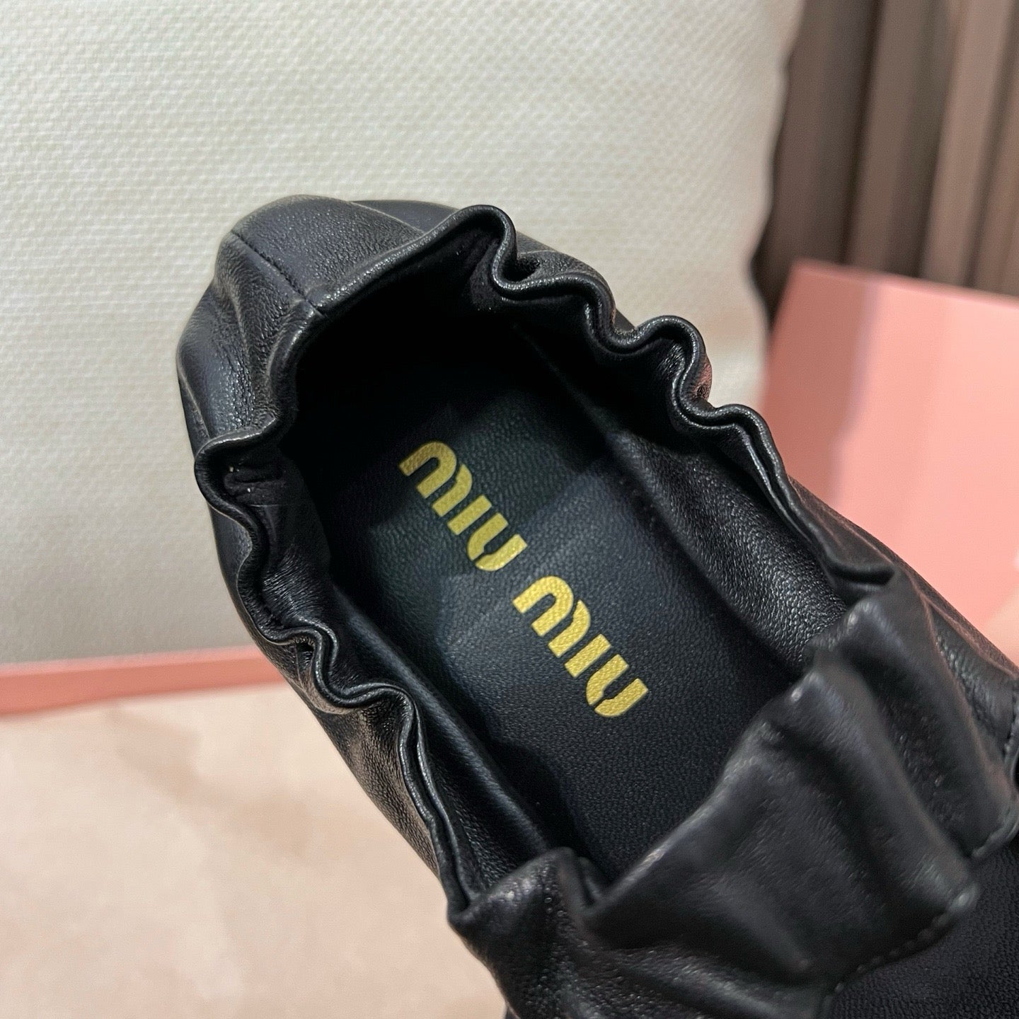 미우미우 루슈 나파 가죽 발레리나(Miu Miu Ruched Nappa Leather Ballerina) - 다양한 스타일링에 자연스럽게 어울리는 슈즈