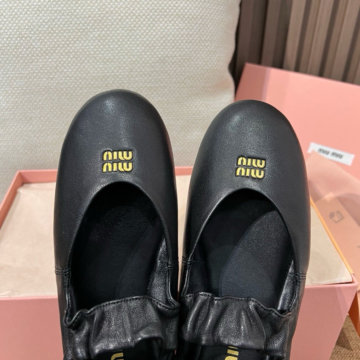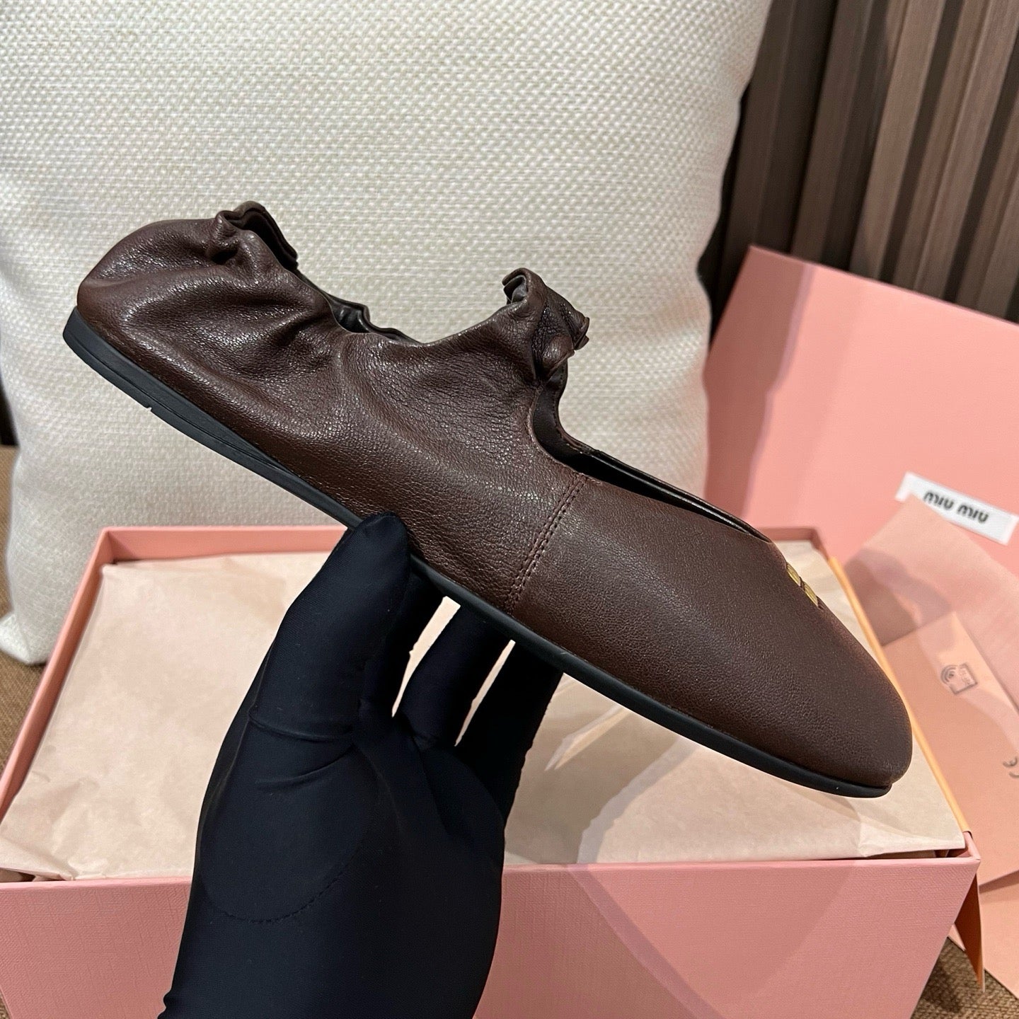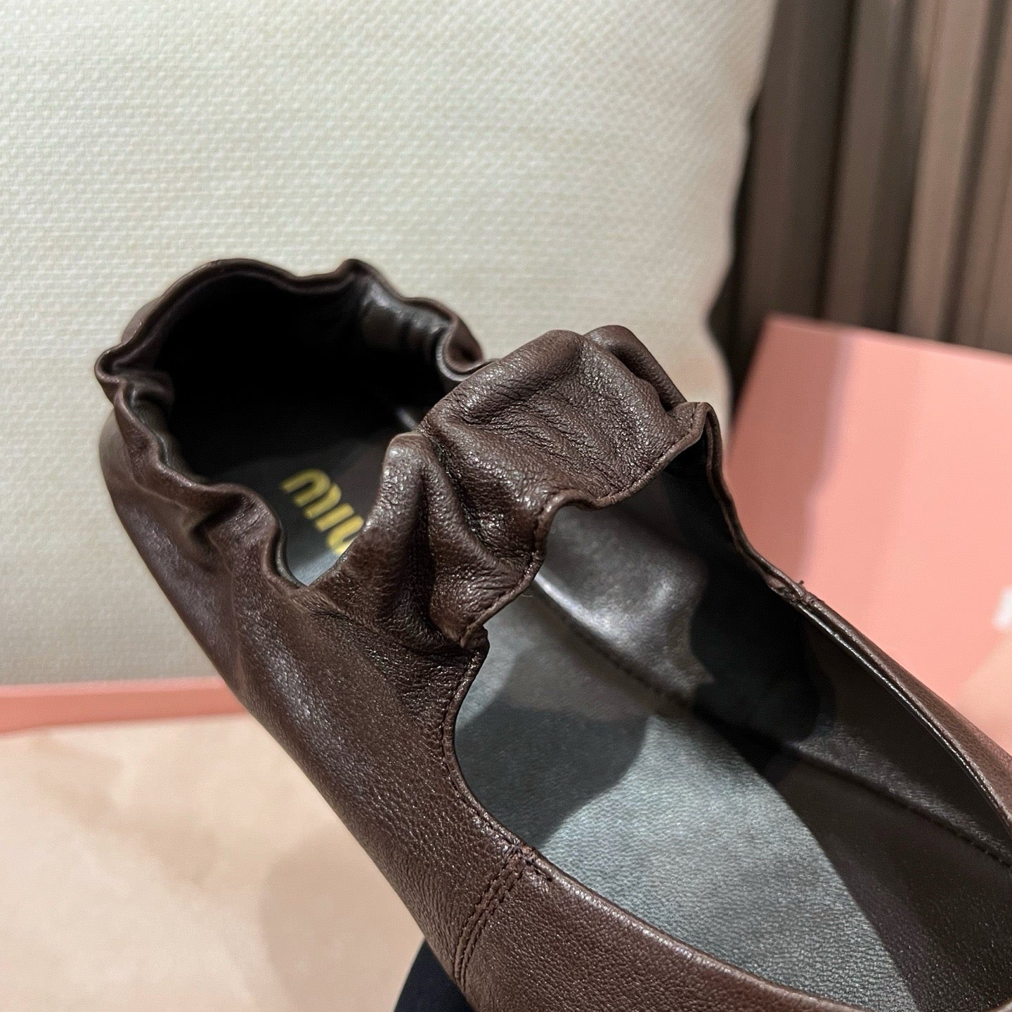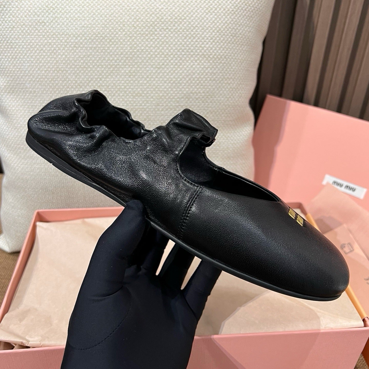 미우미우 루슈 나파 가죽 발레리나(Miu Miu Ruched Nappa Leather Ballerina) - 다양한 스타일링에 자연스럽게 어울리는 슈즈