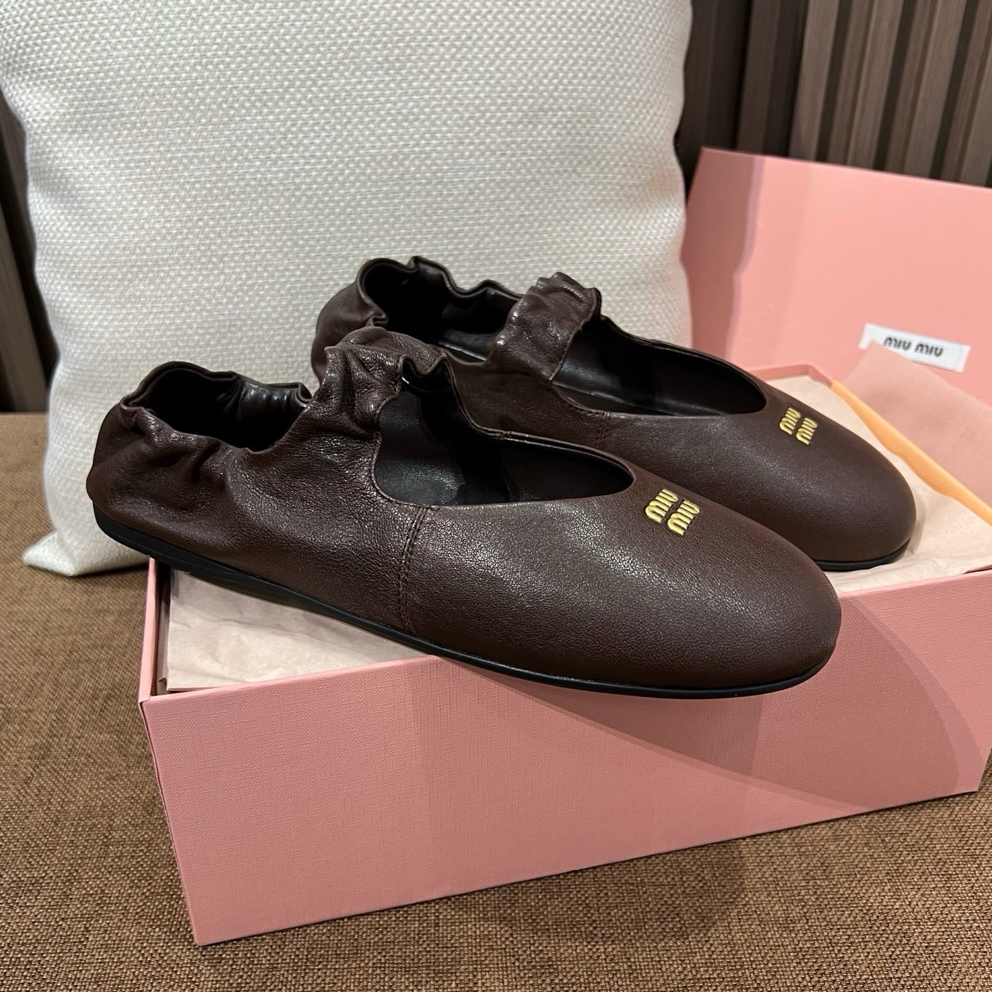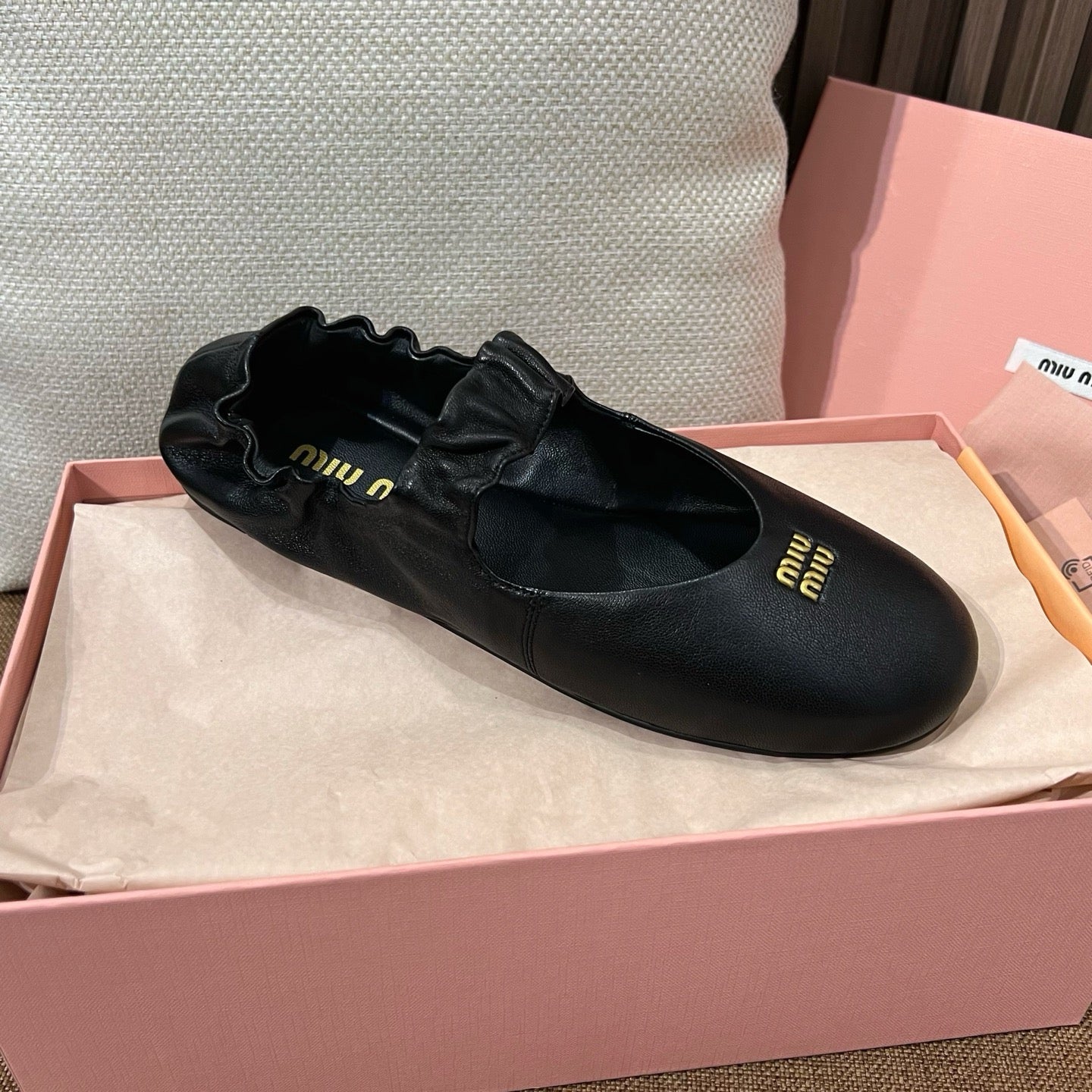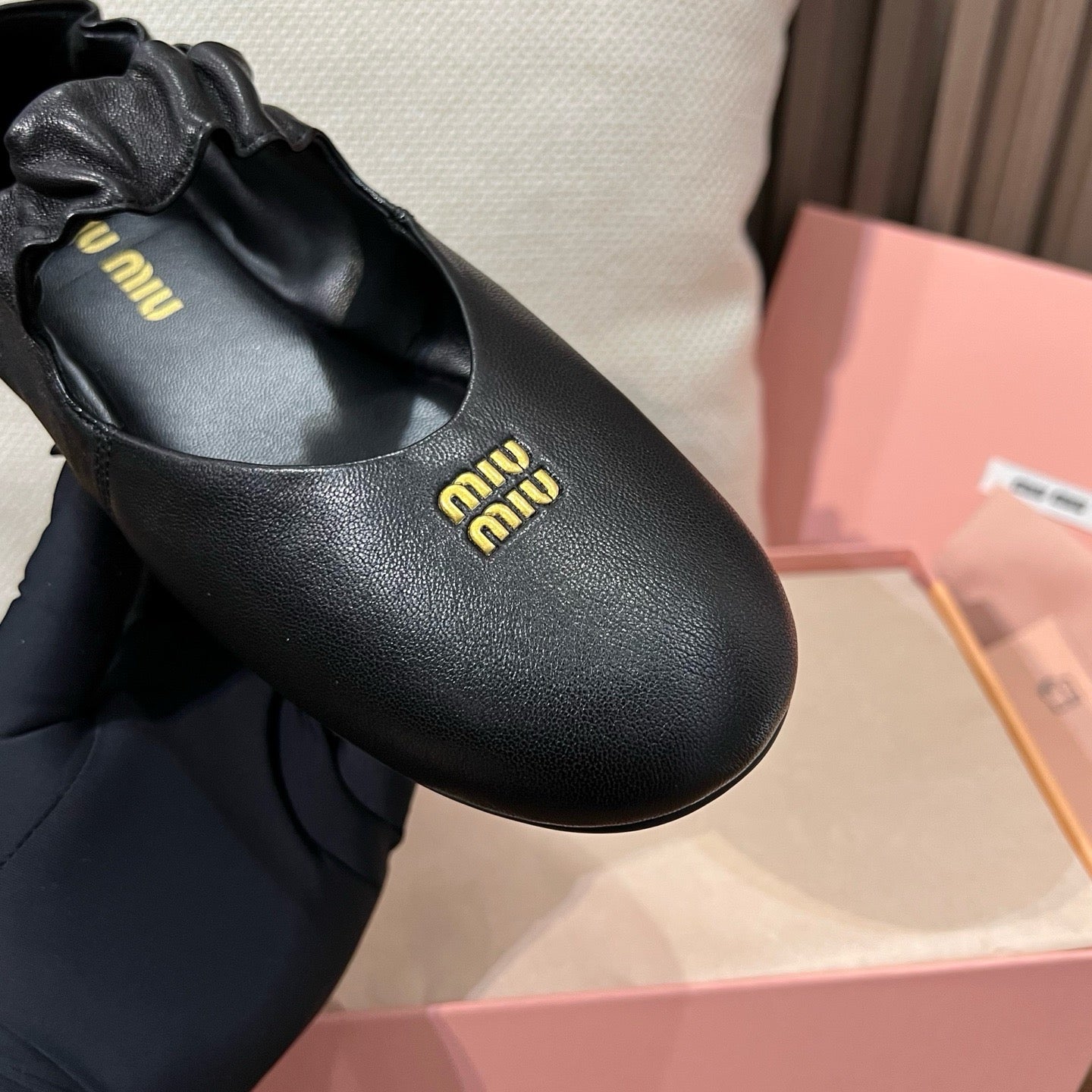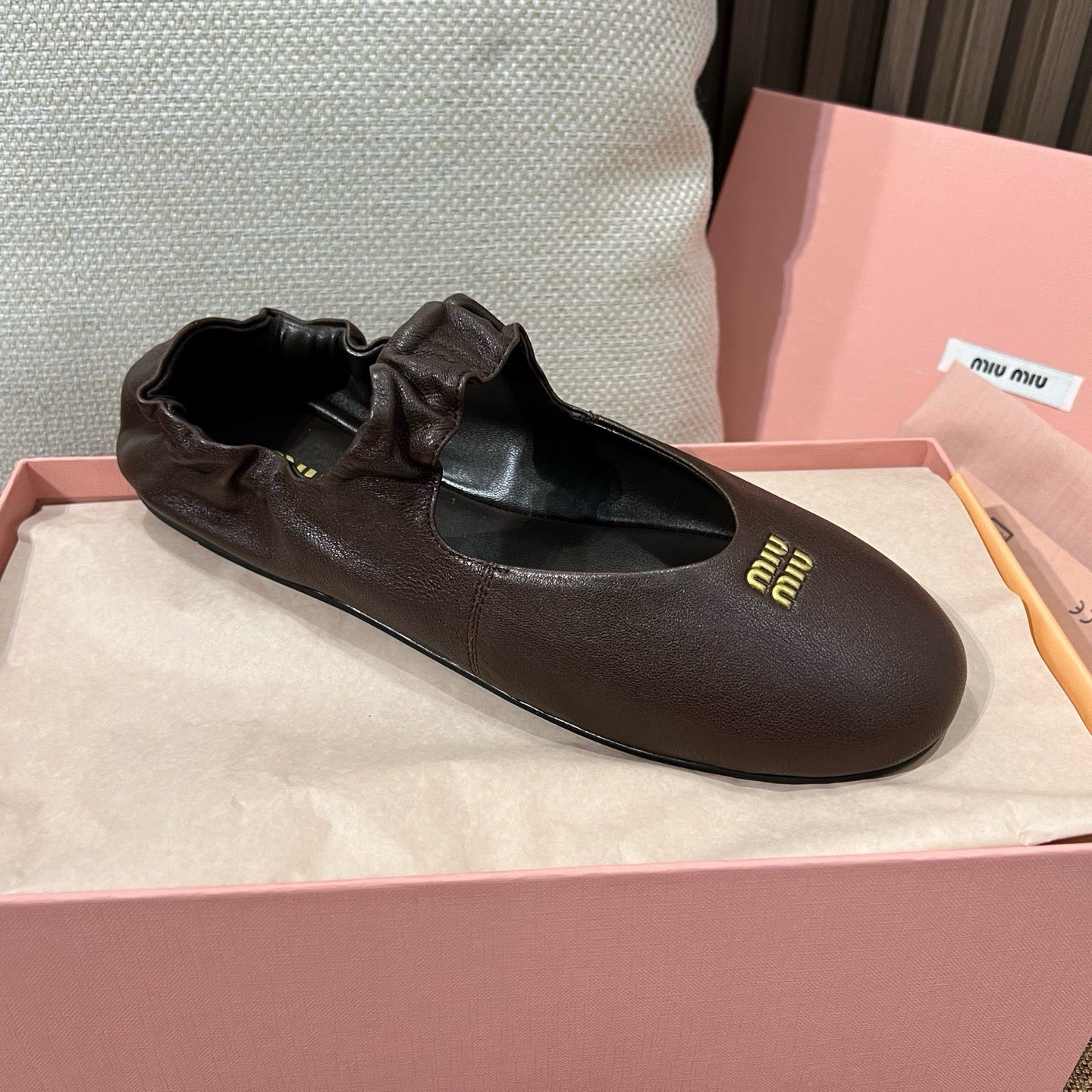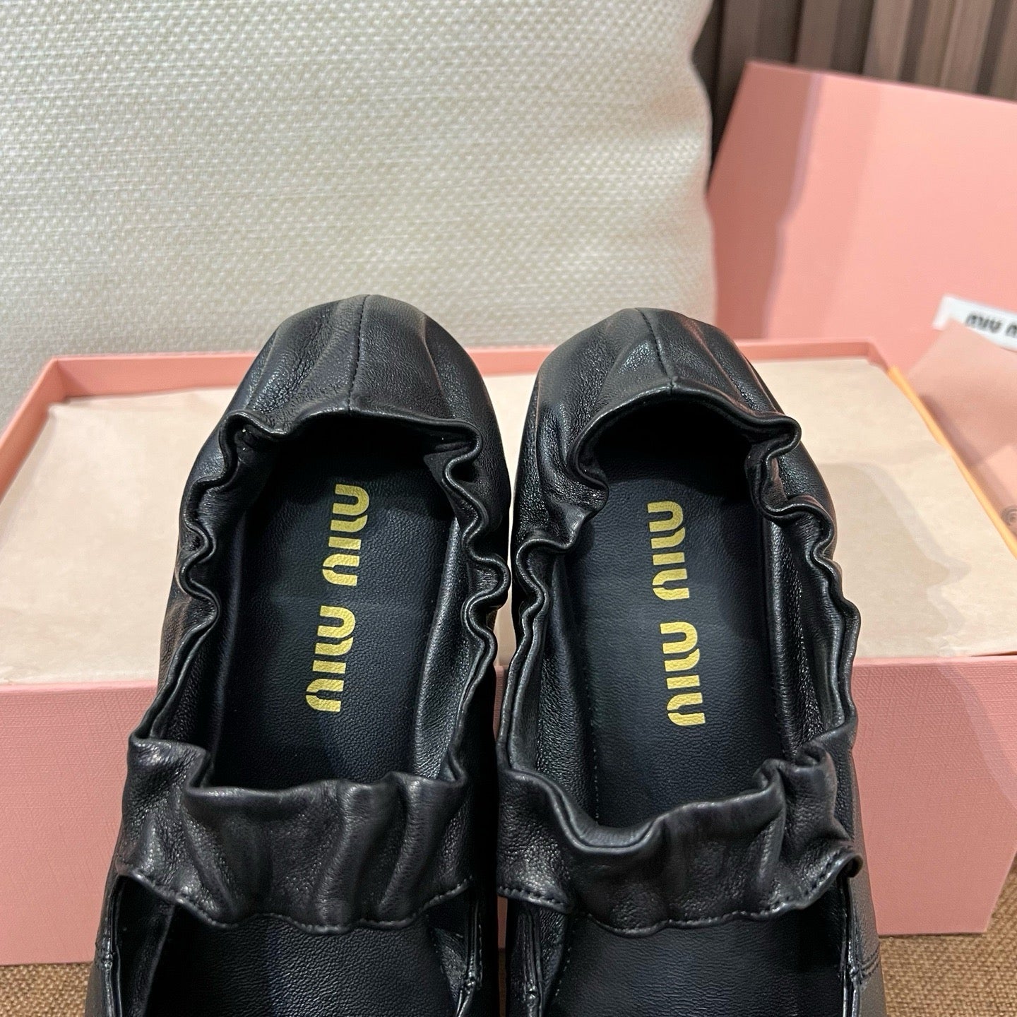 미우미우 루슈 나파 가죽 발레리나(Miu Miu Ruched Nappa Leather Ballerina) - 다양한 스타일링에 자연스럽게 어울리는 슈즈