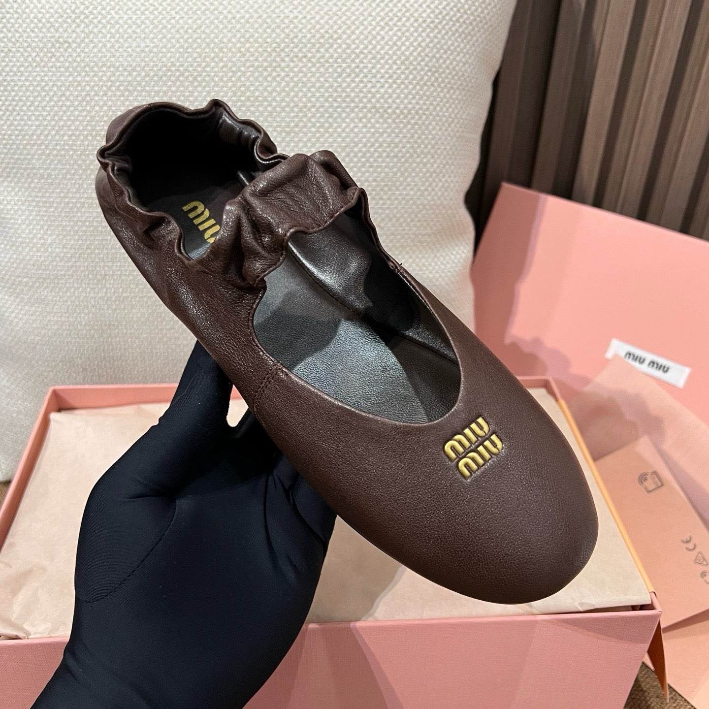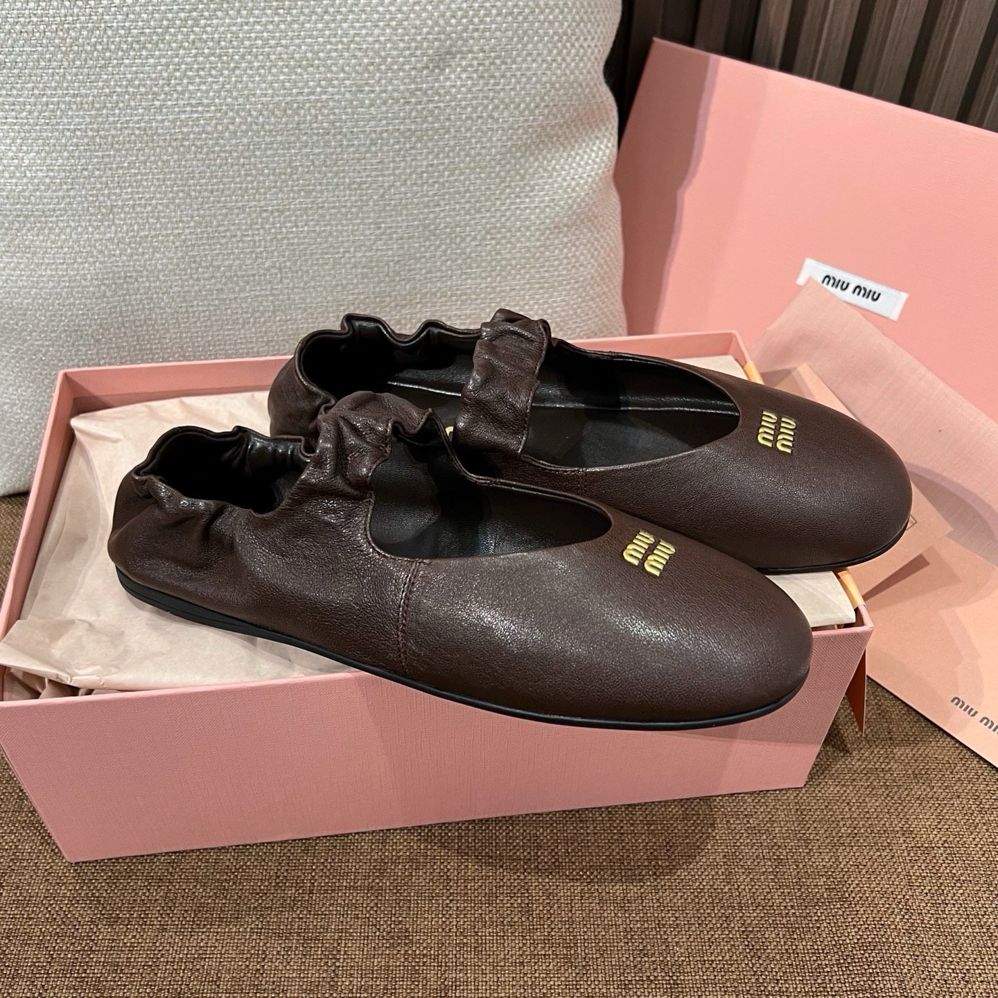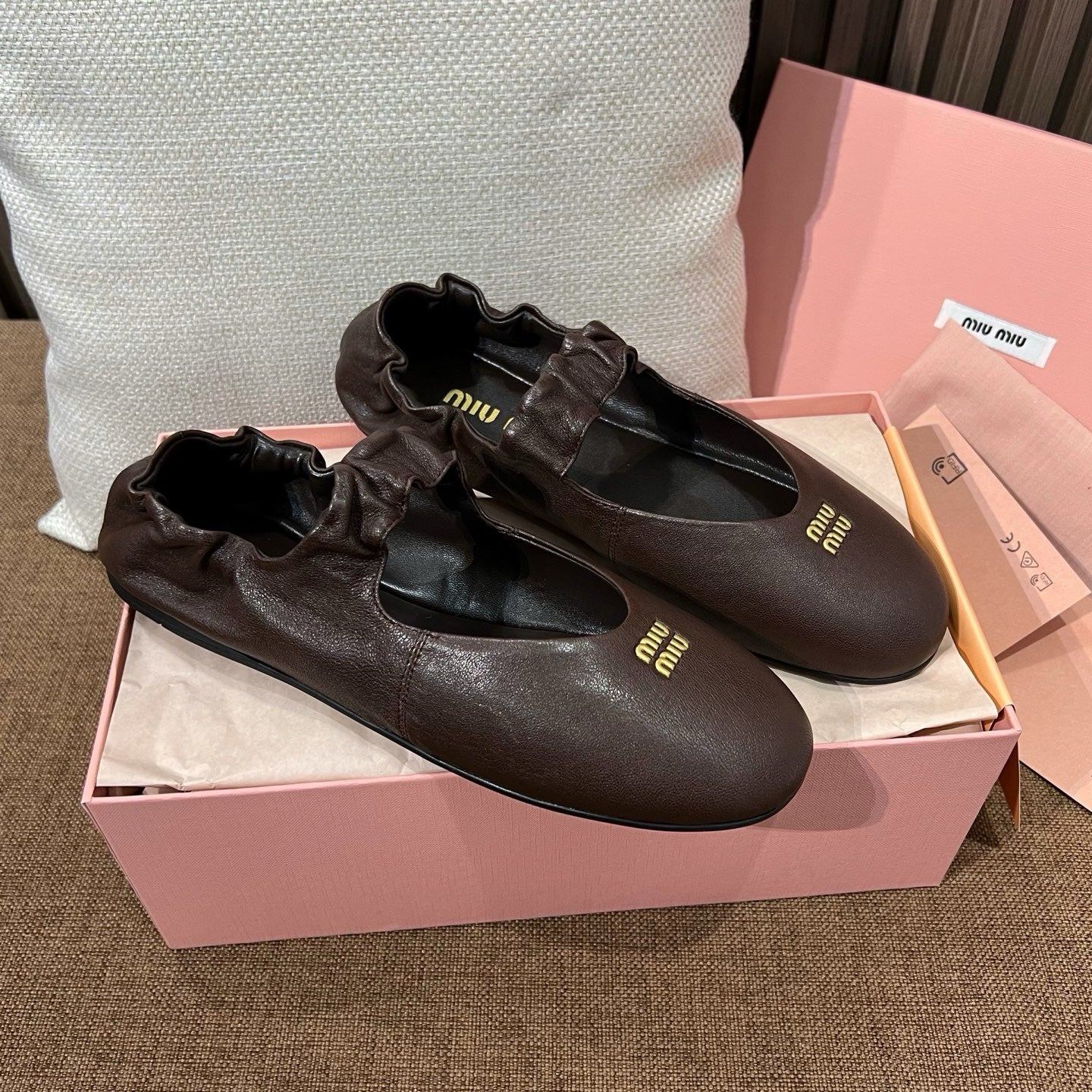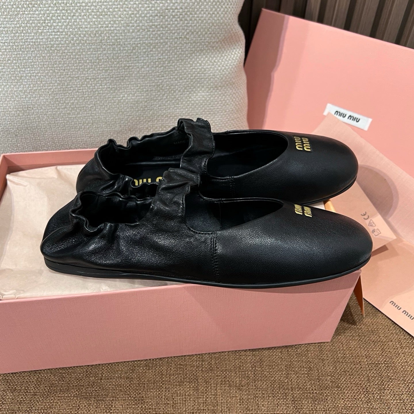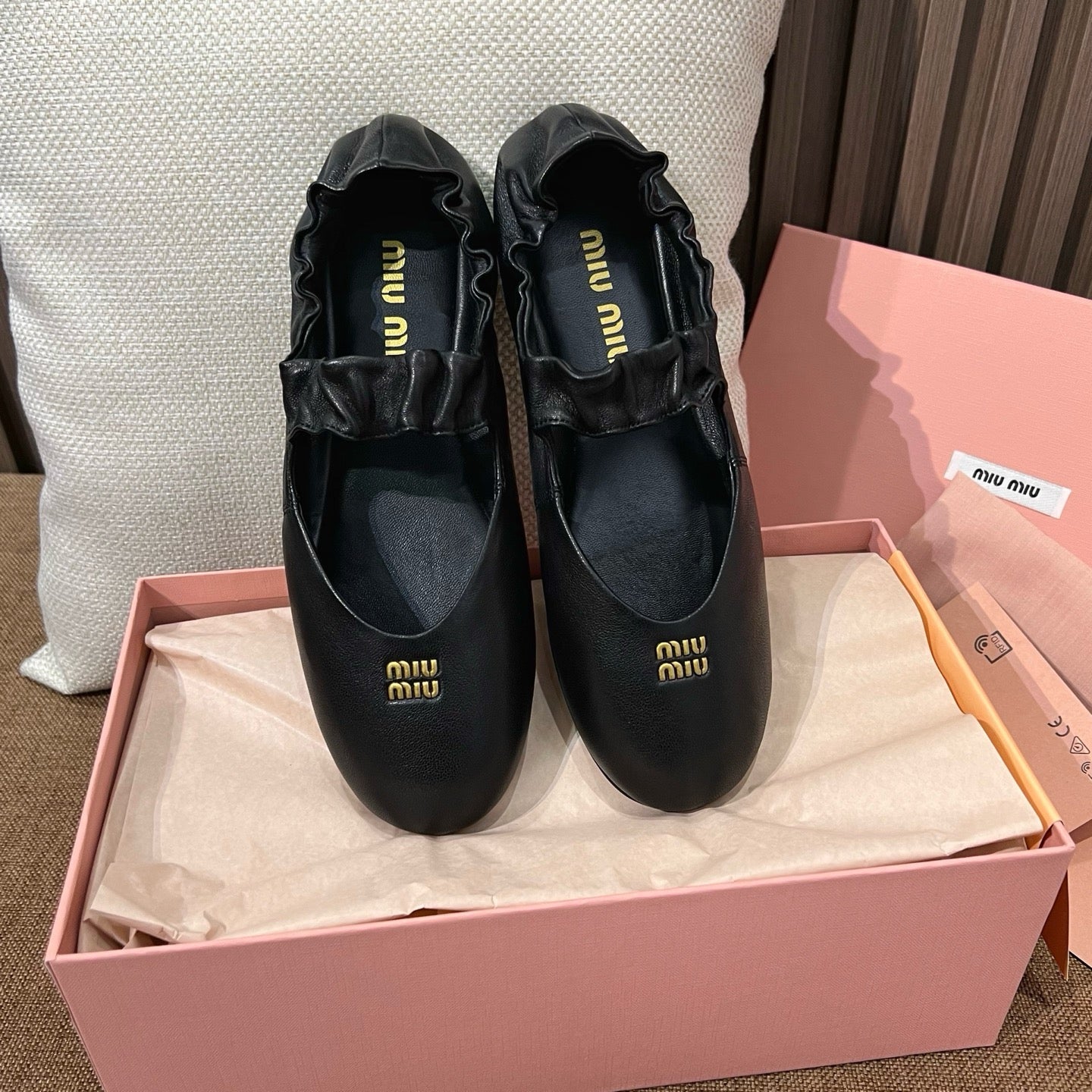미우미우 루슈 나파 가죽 발레리나(Miu Miu Ruched Nappa Leather Ballerina) - 다양한 스타일링에 자연스럽게 어울리는 슈즈