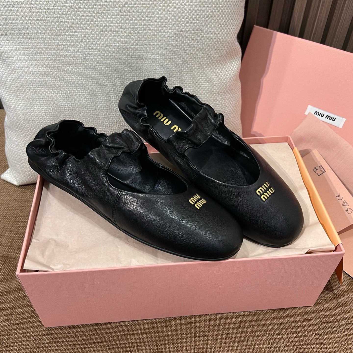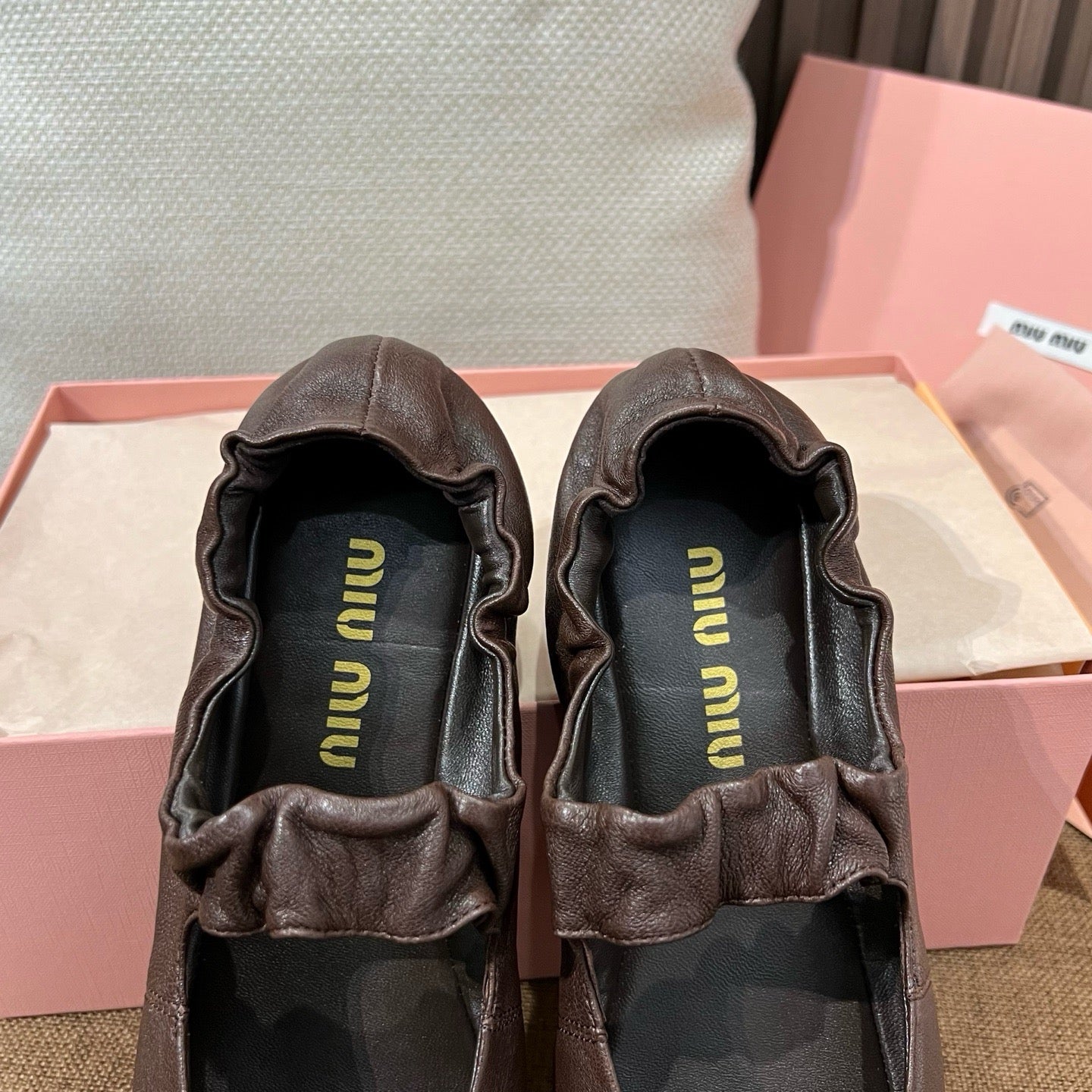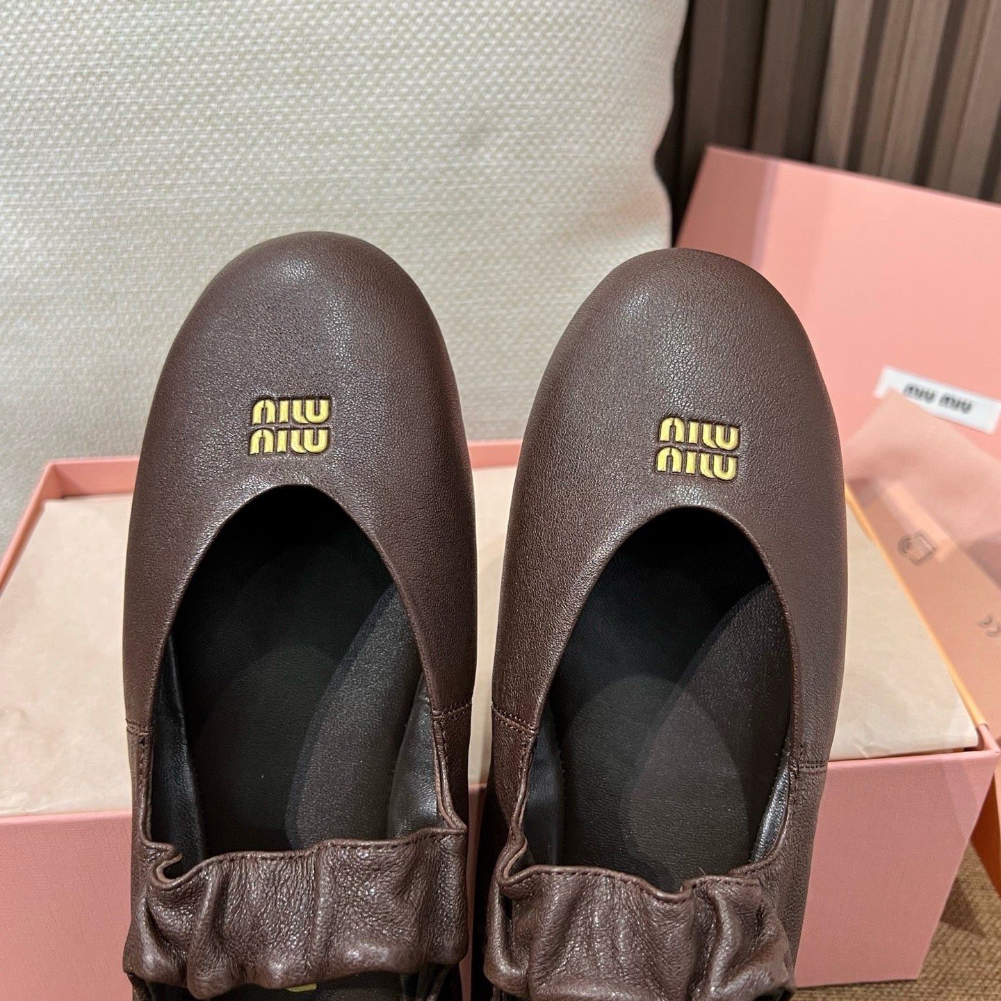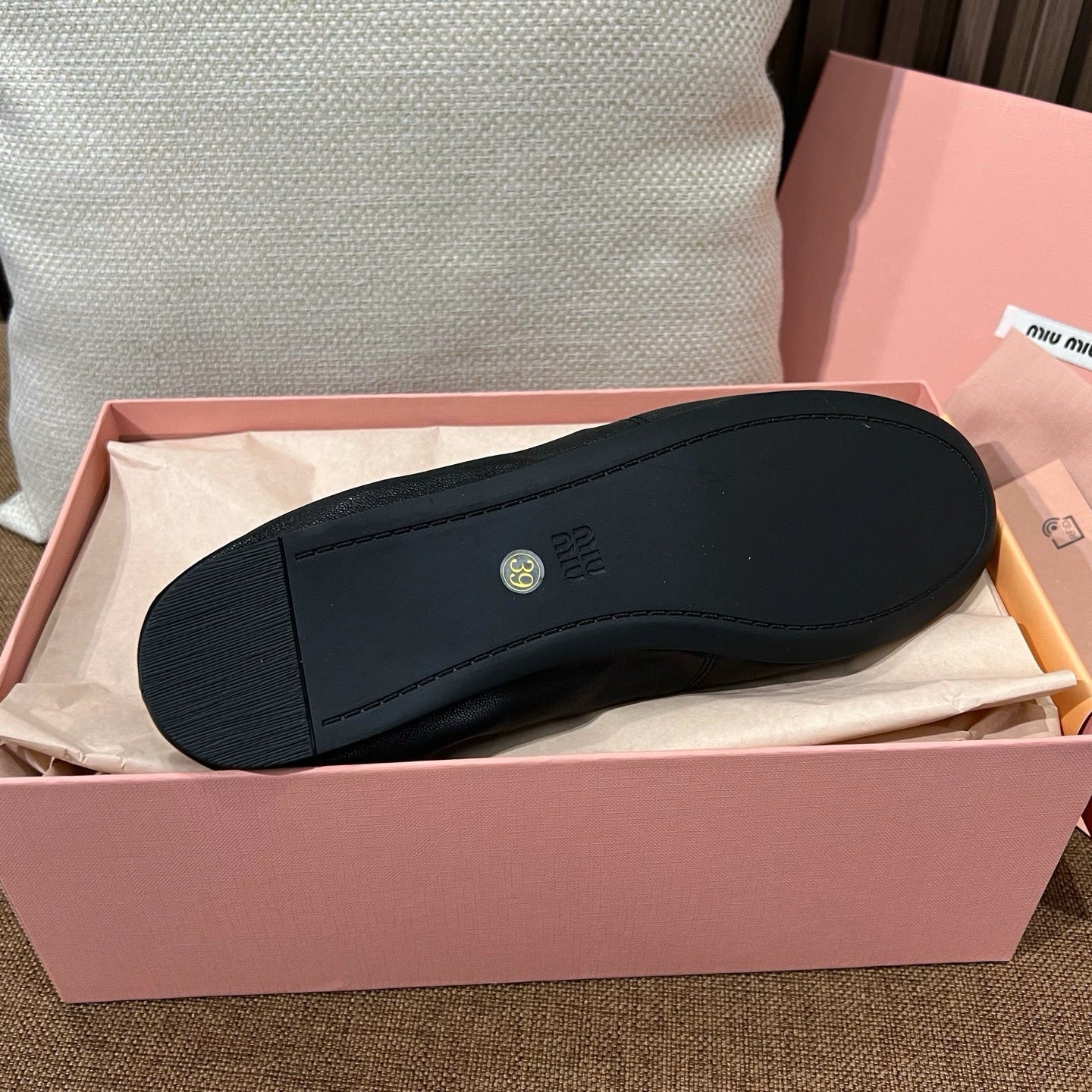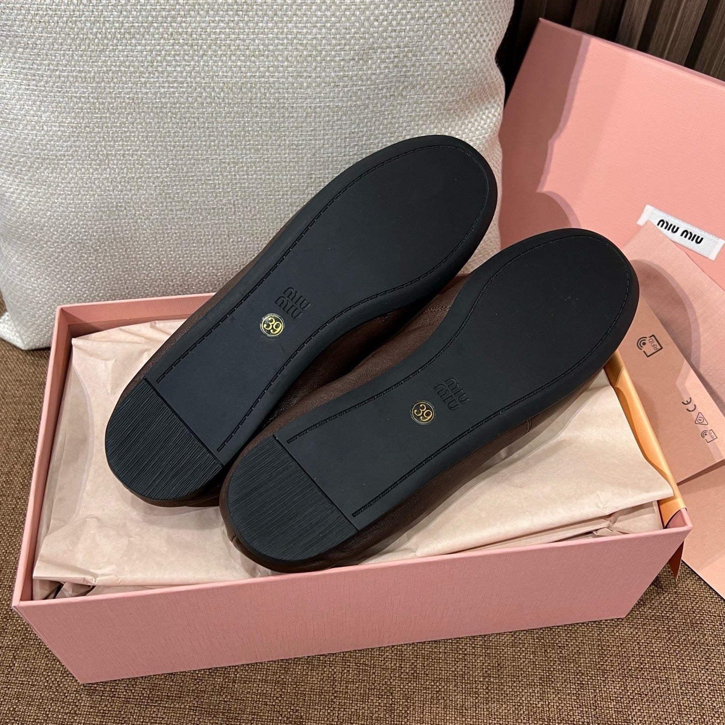 미우미우 루슈 나파 가죽 발레리나(Miu Miu Ruched Nappa Leather Ballerina) - 다양한 스타일링에 자연스럽게 어울리는 슈즈