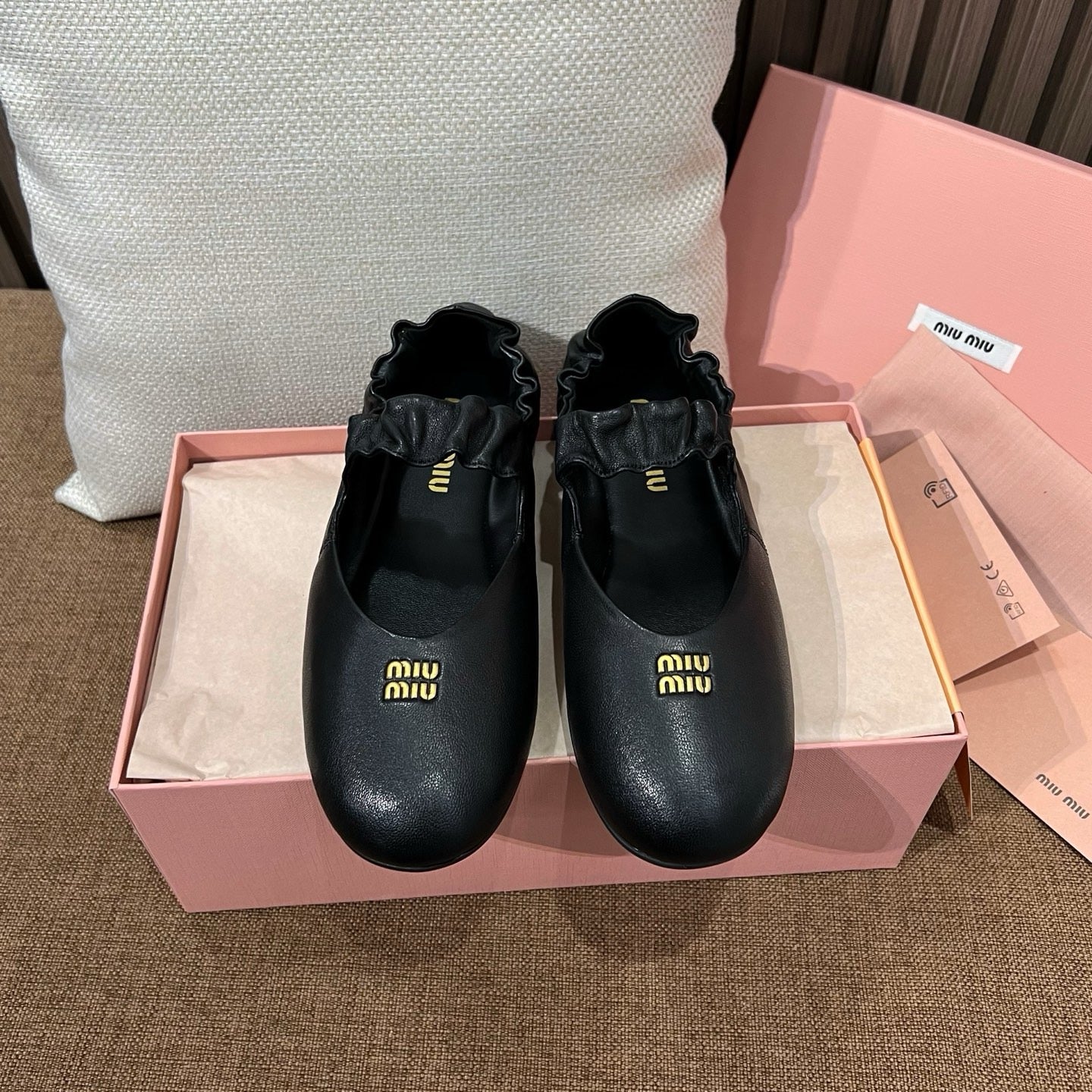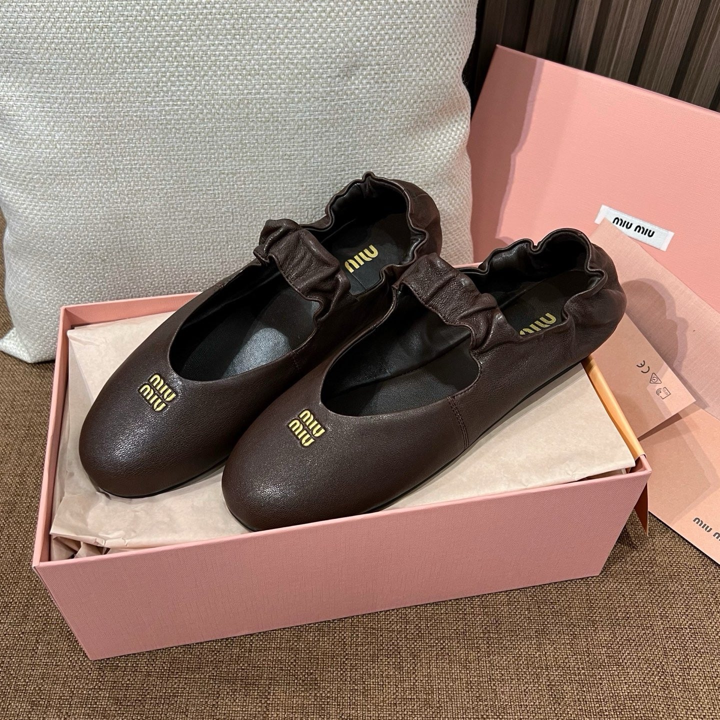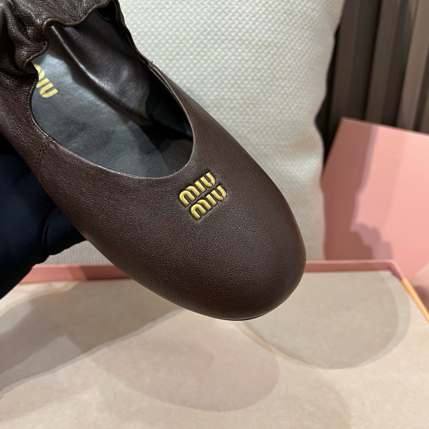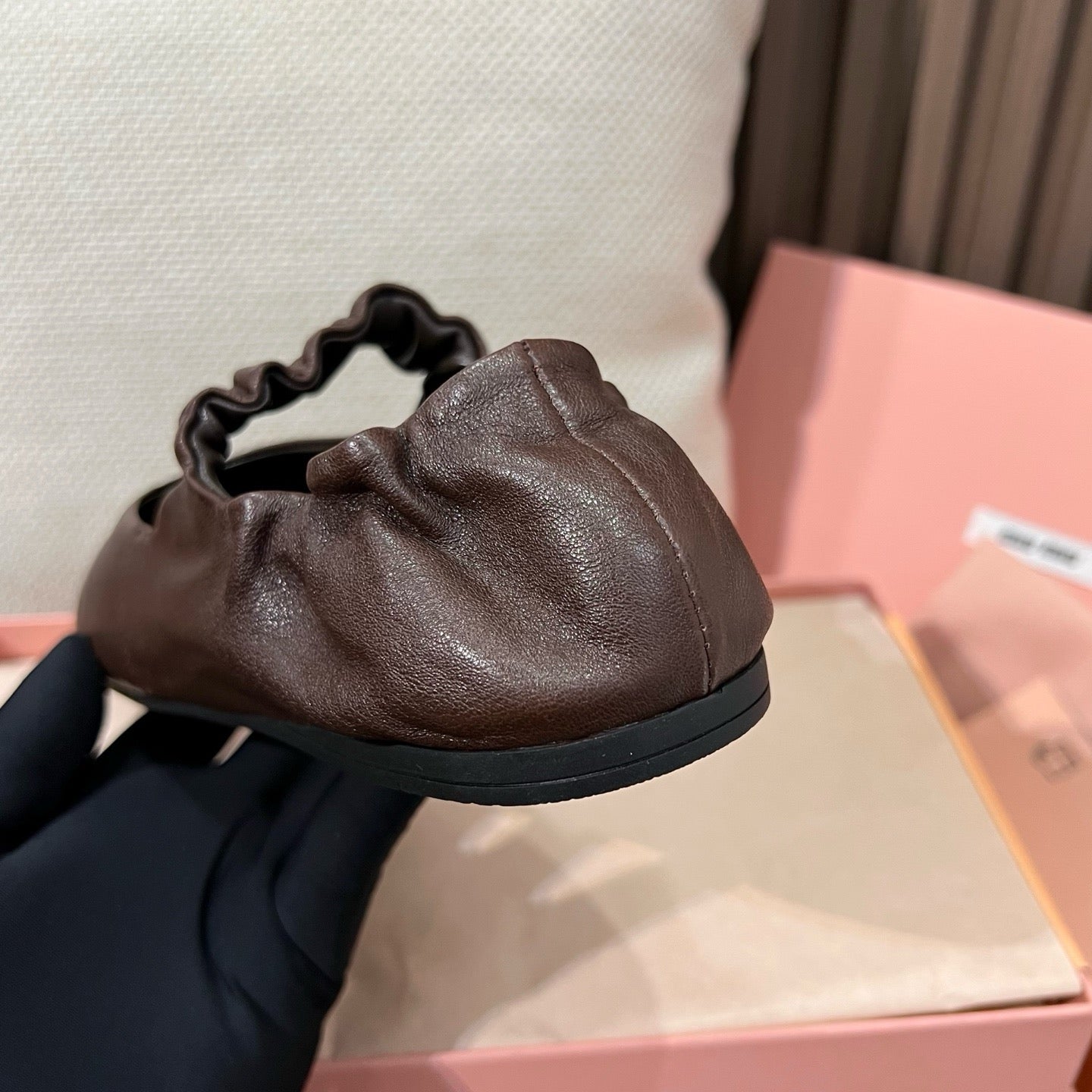 미우미우 루슈 나파 가죽 발레리나(Miu Miu Ruched Nappa Leather Ballerina) - 다양한 스타일링에 자연스럽게 어울리는 슈즈