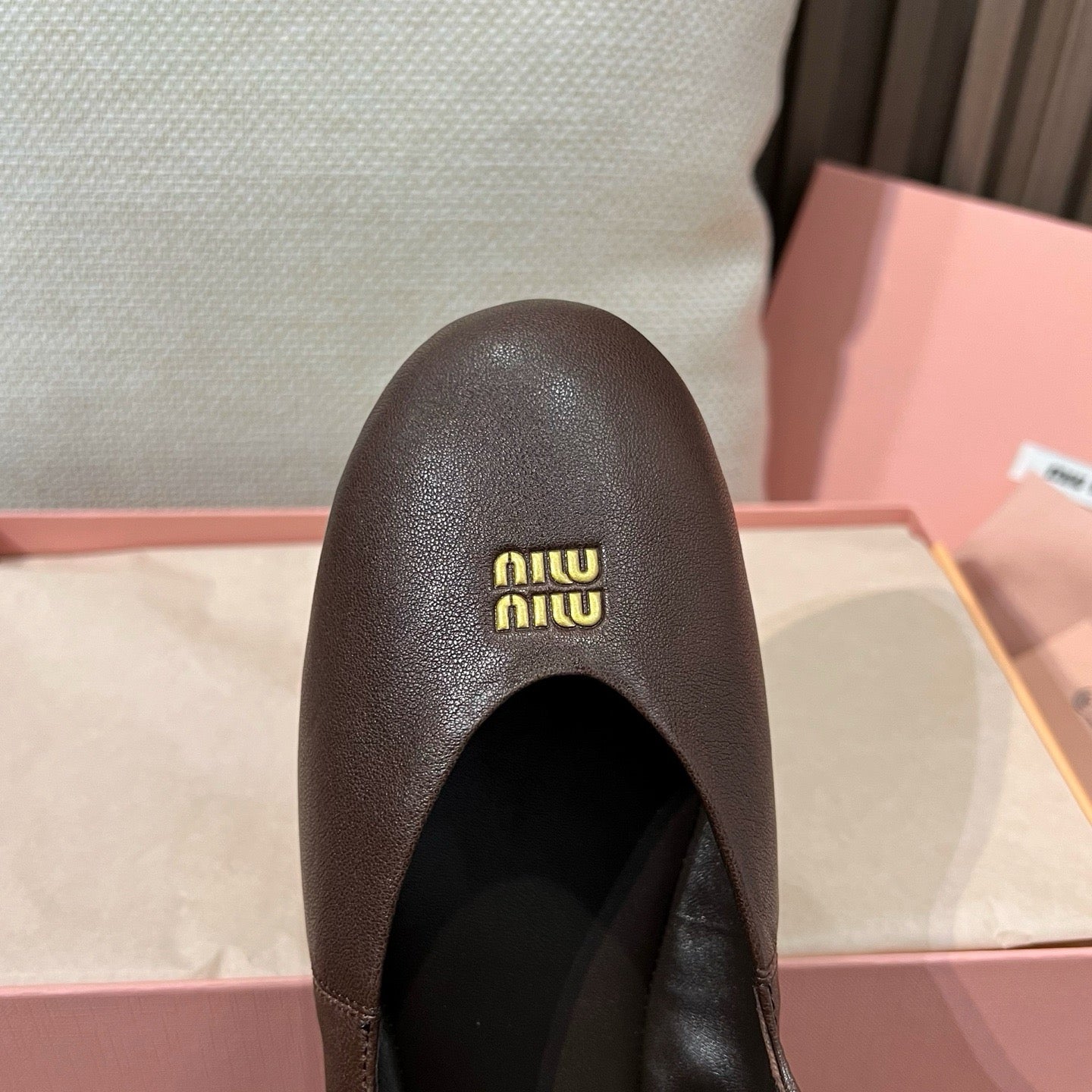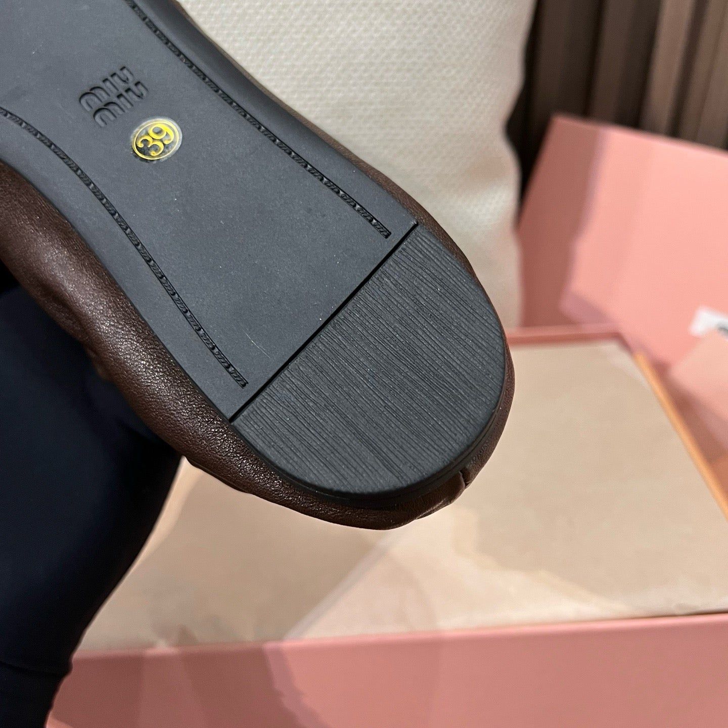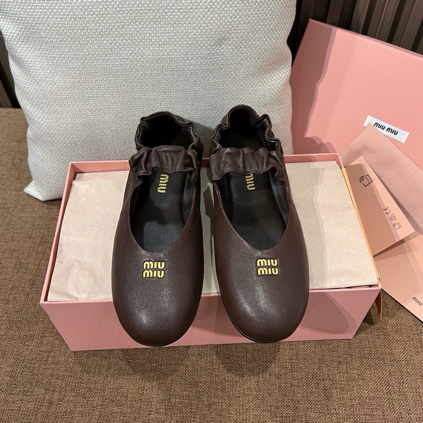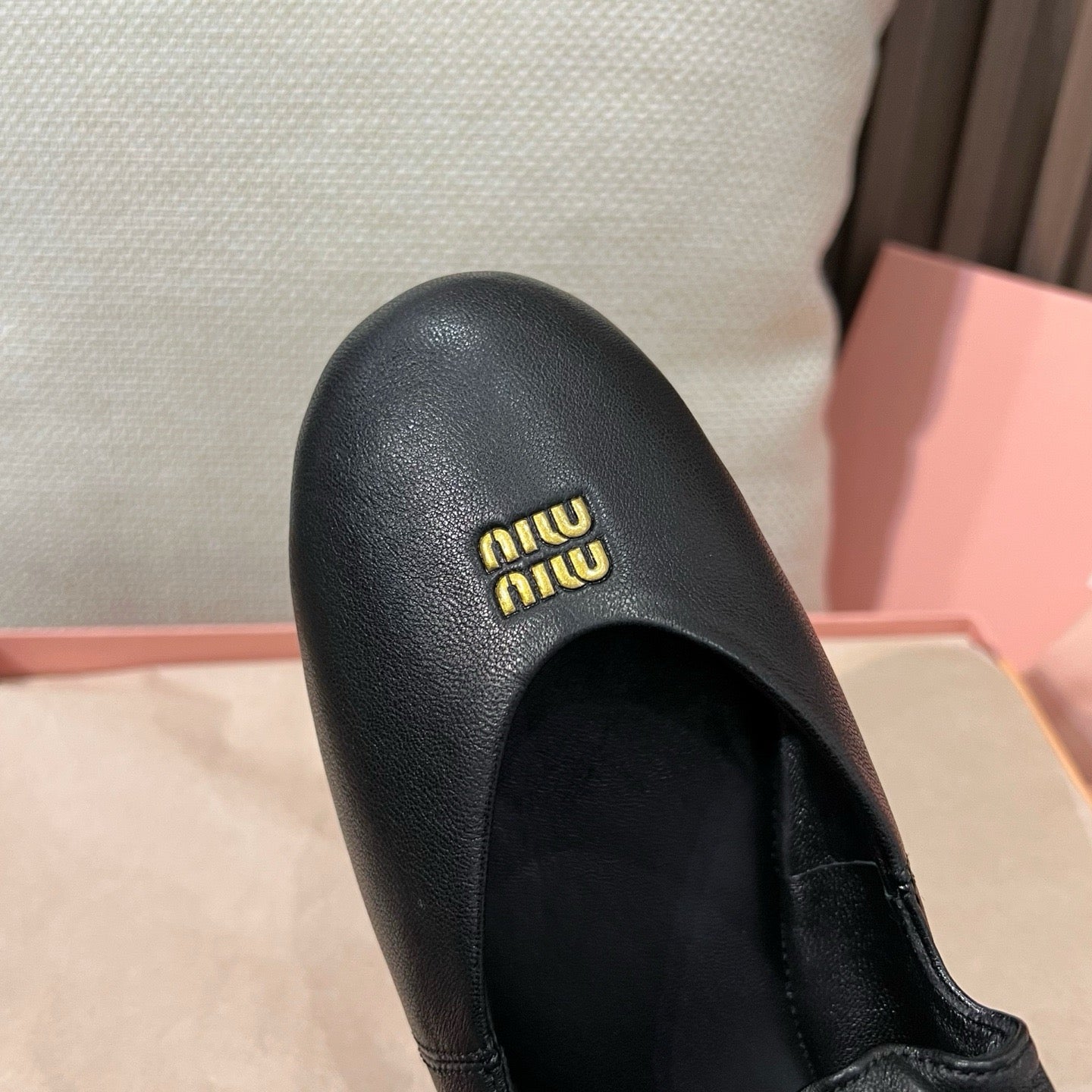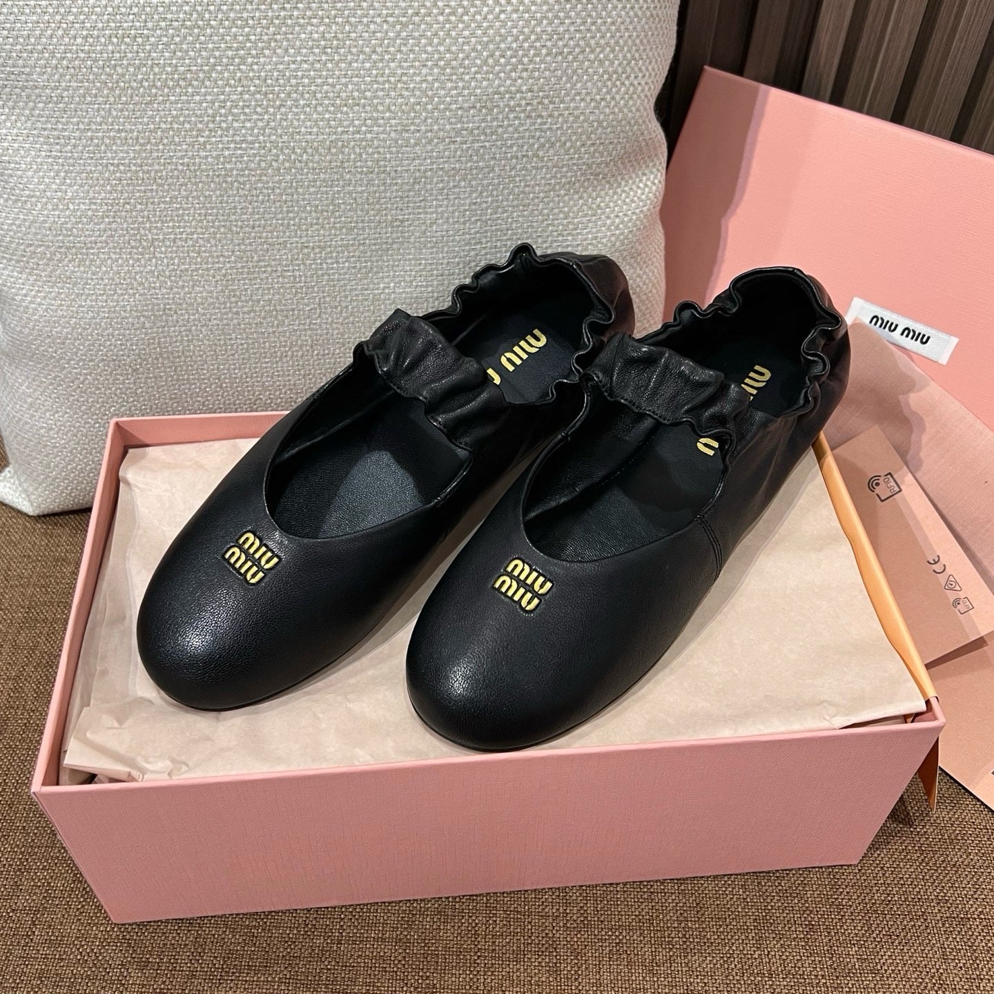 미우미우 루슈 나파 가죽 발레리나(Miu Miu Ruched Nappa Leather Ballerina) - 다양한 스타일링에 자연스럽게 어울리는 슈즈