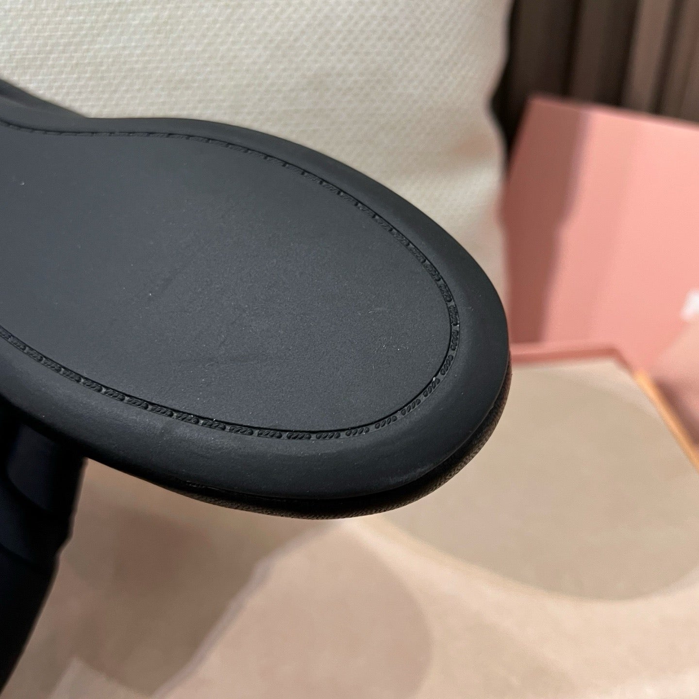 이 제품은 전체적으로 셔링(ruched) 디테일이 적용된 유연한 나파 가죽으로 제작되어 부드럽고 감각적인 텍스처를 제공합니다. 발등 중앙에는 미우미우 로고 장식 또는 미니멀한 리본 디테일이 더해져 심플하면서도 세련된 분위기를 연출합니다. 둥근 앞코와 발을 감싸는 플랫 구조로 착용감도 매우 우수합니다.
