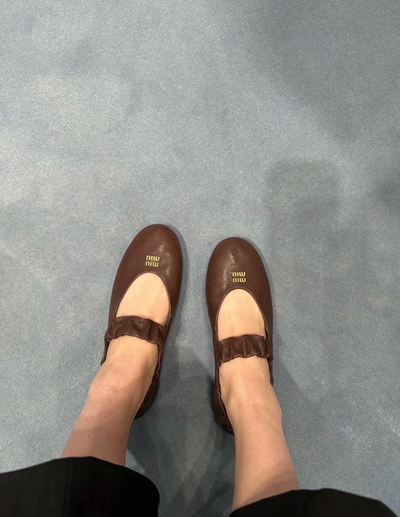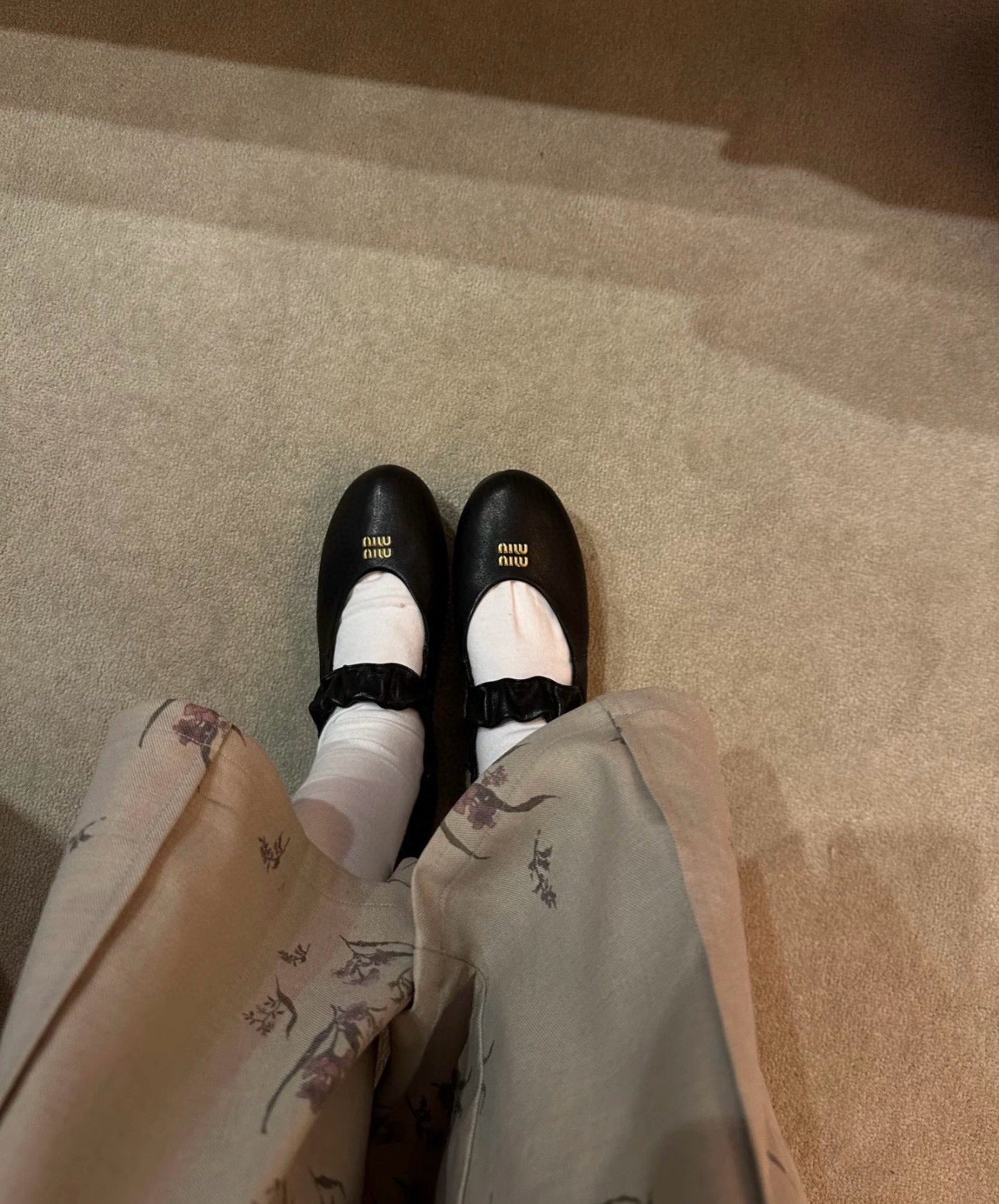 미우미우 루슈 나파 가죽 발레리나(Miu Miu Ruched Nappa Leather Ballerina)는 어떤 코디에 잘 어울리나요?
