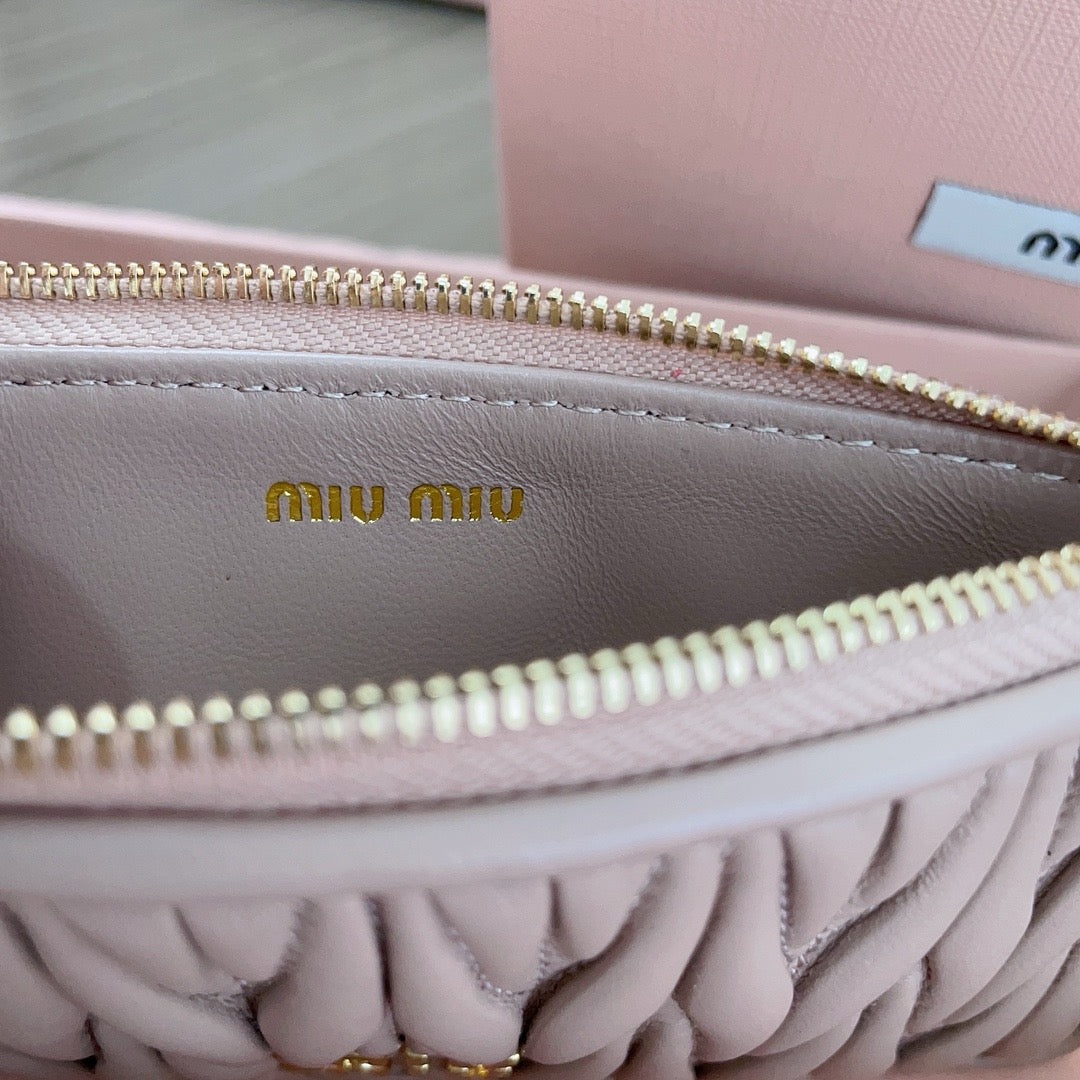 미우미우 마테라쎄 나파 레더 파우치(Miu Miu Matelassé Nappa Leather Pouch) - 부드러움 속의 정교함