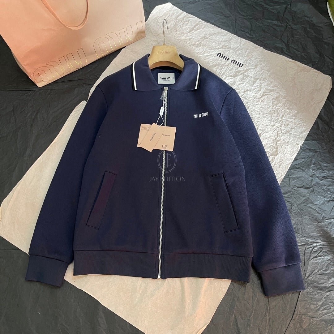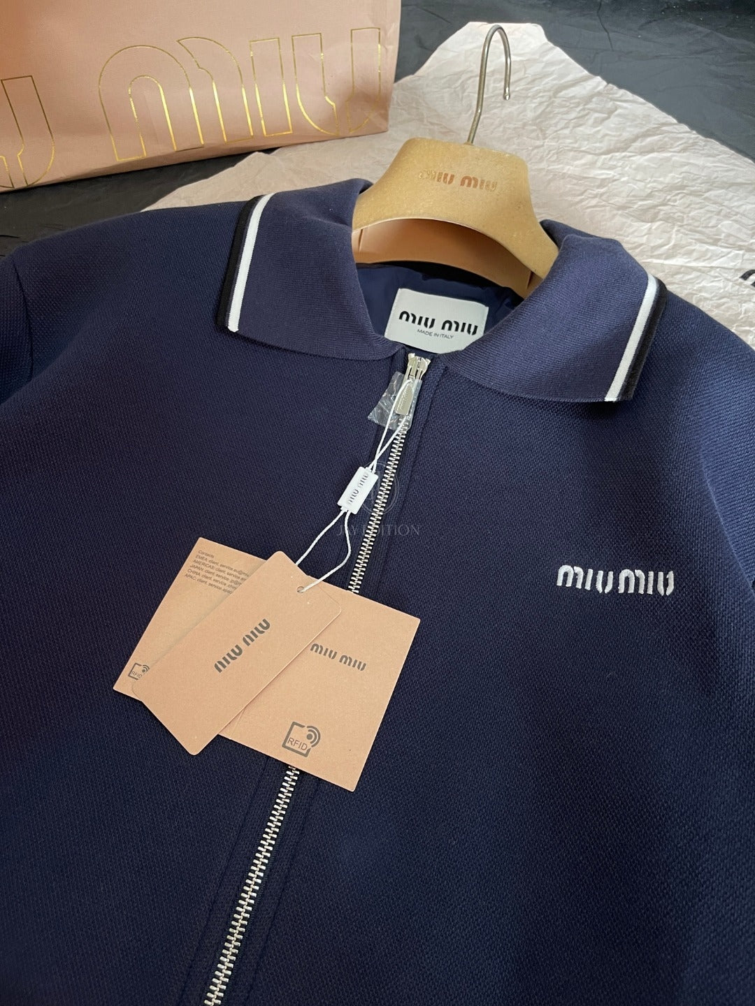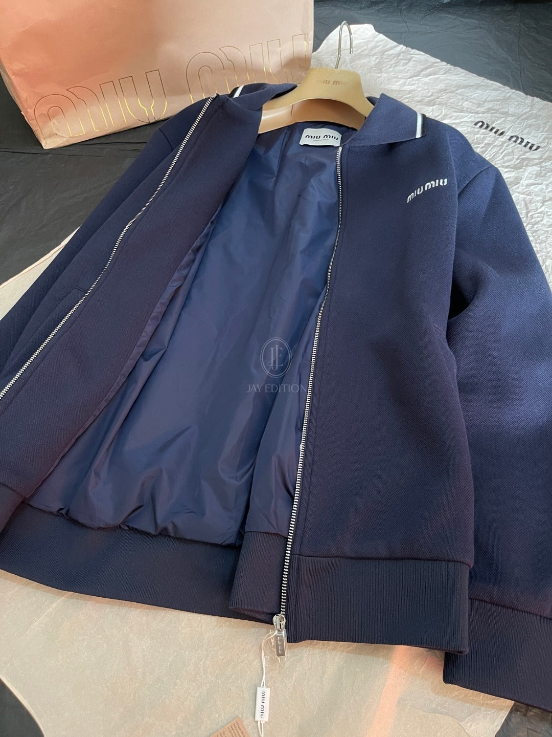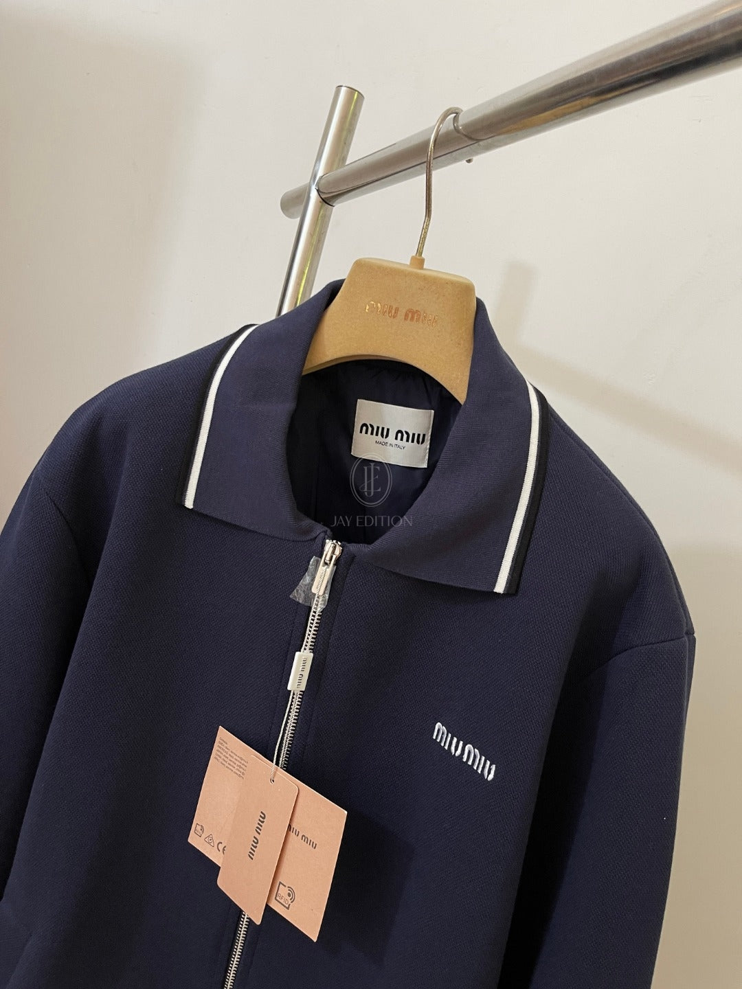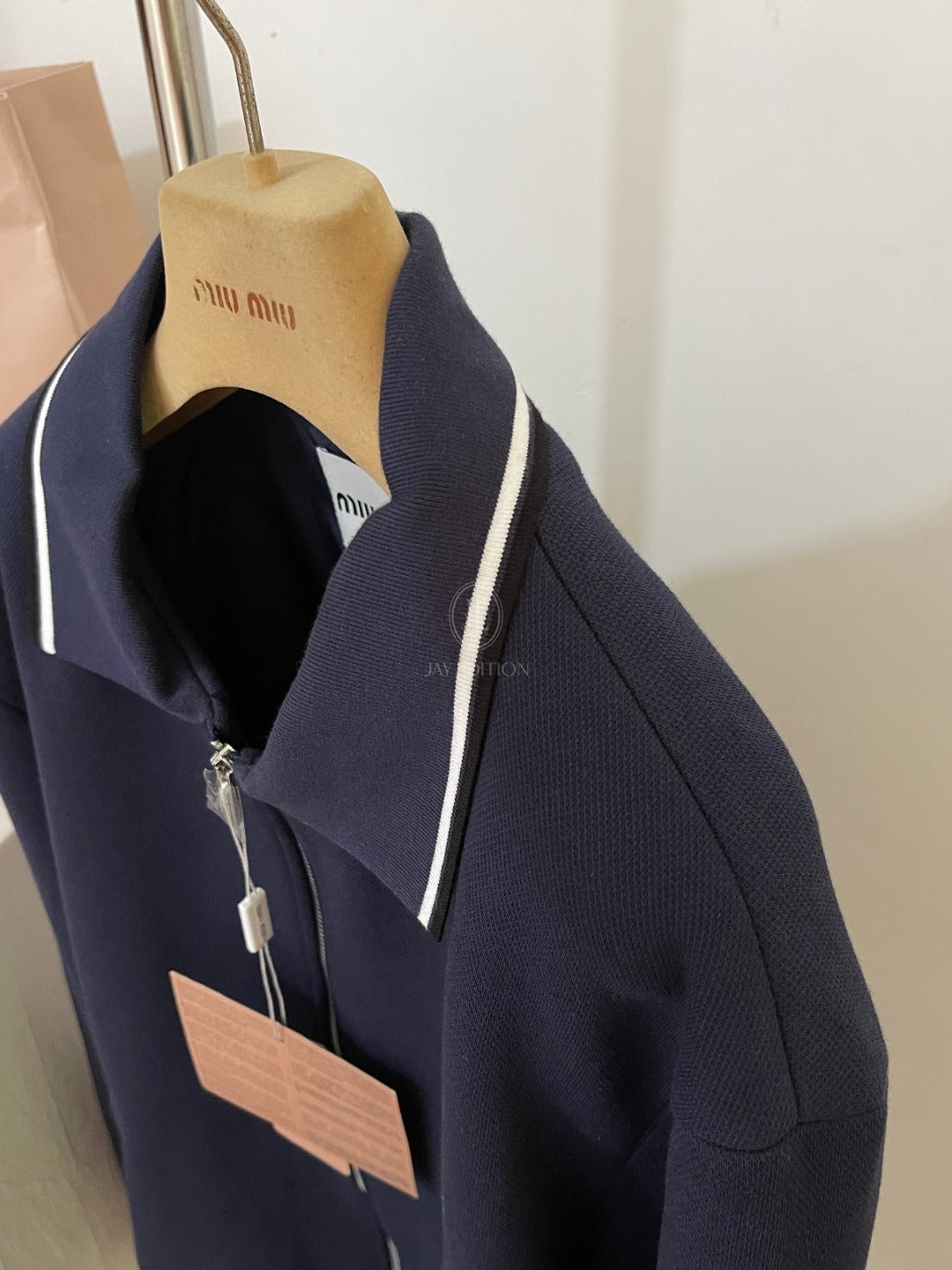 미우미우 본디드 피케 및 테크니컬 저지 블루종 자켓