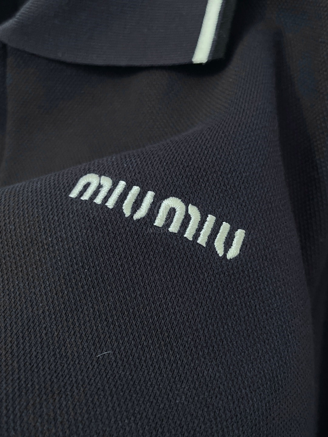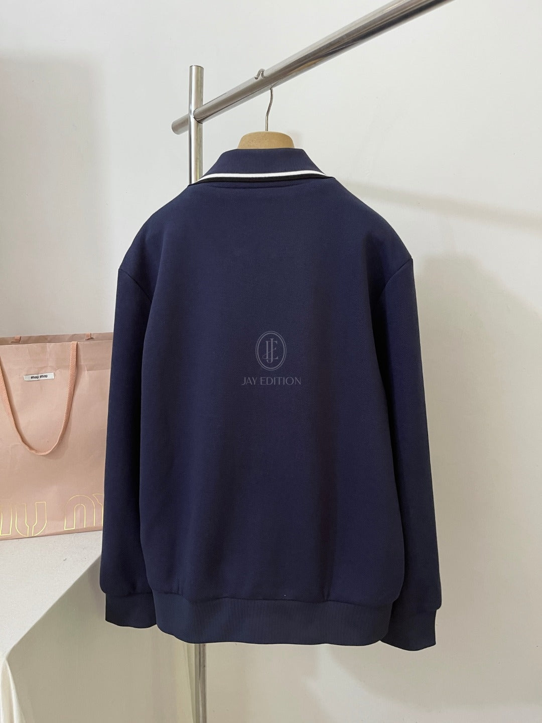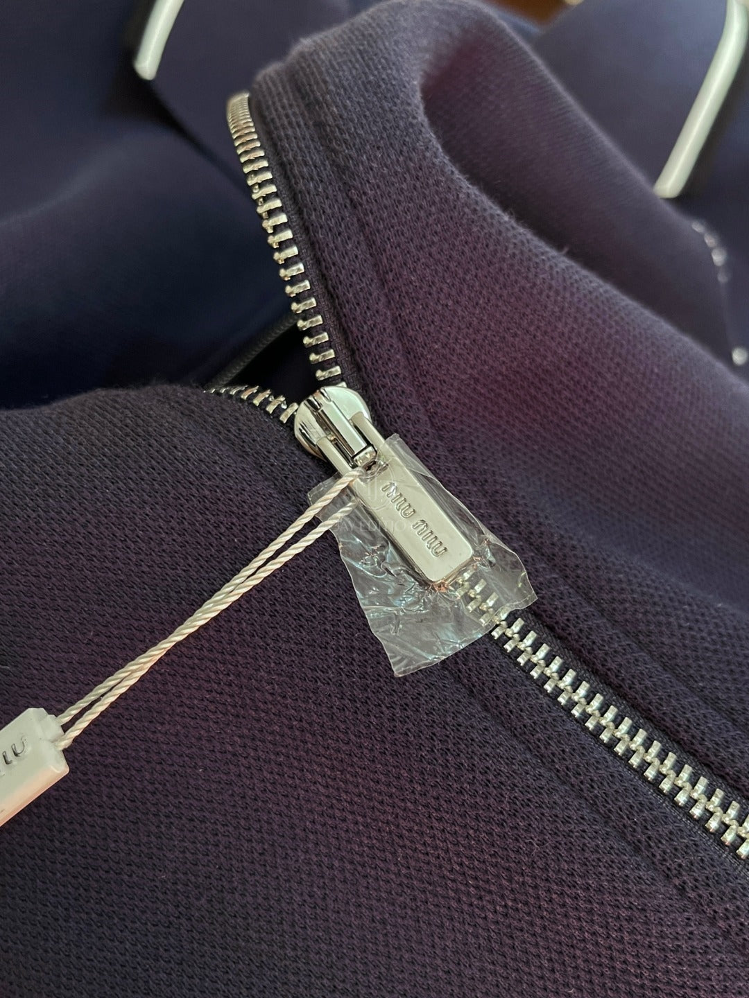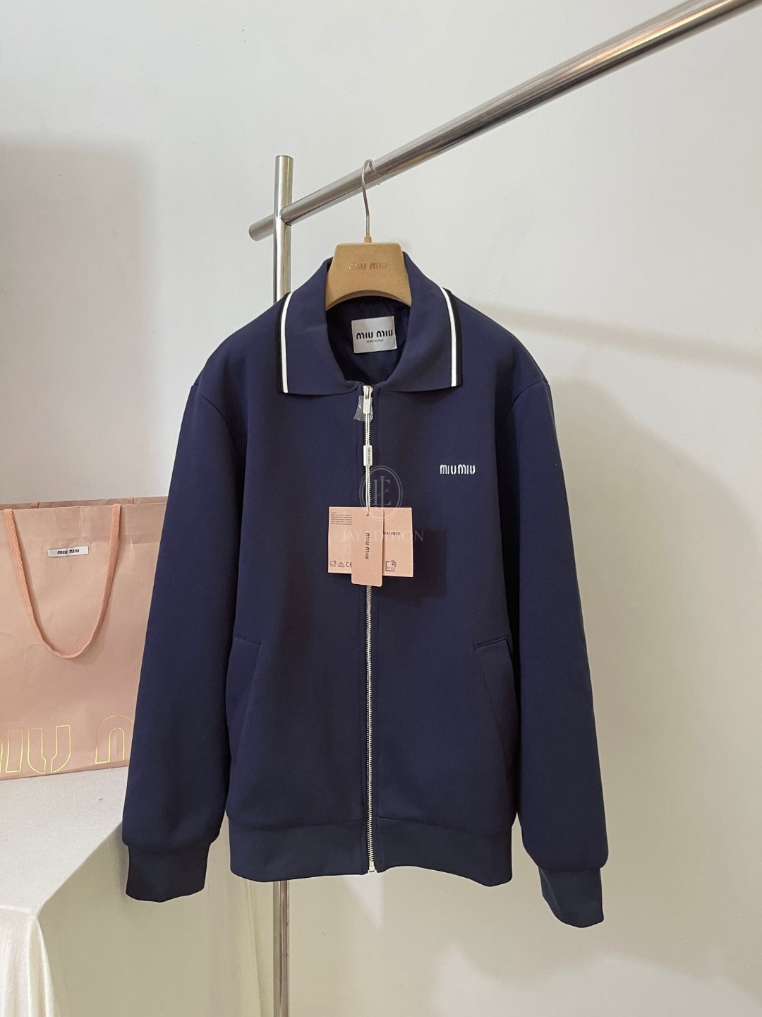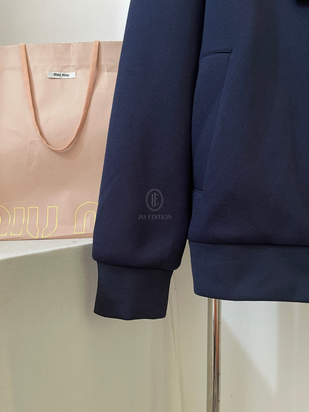 미우미우 본디드 피케 및 테크니컬 저지 블루종 자켓