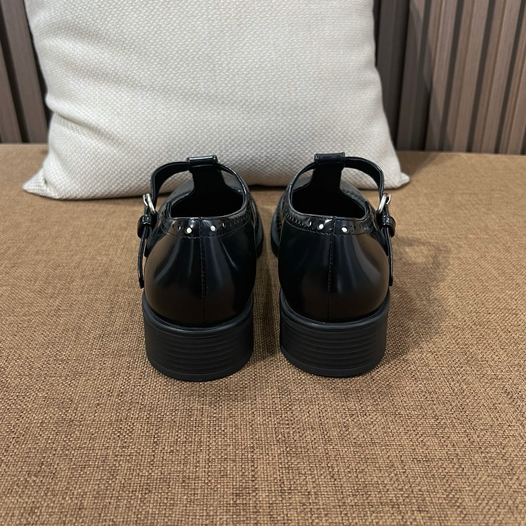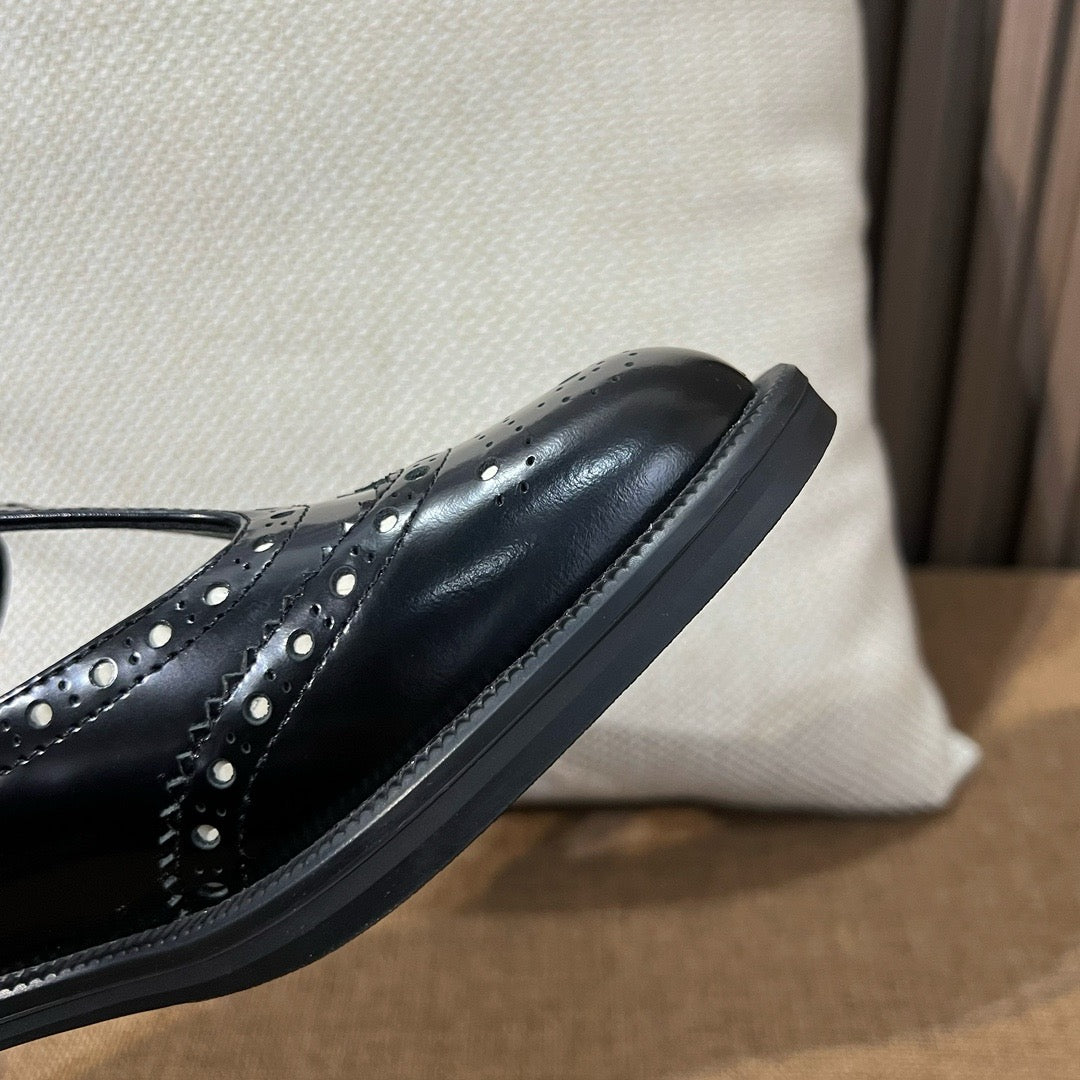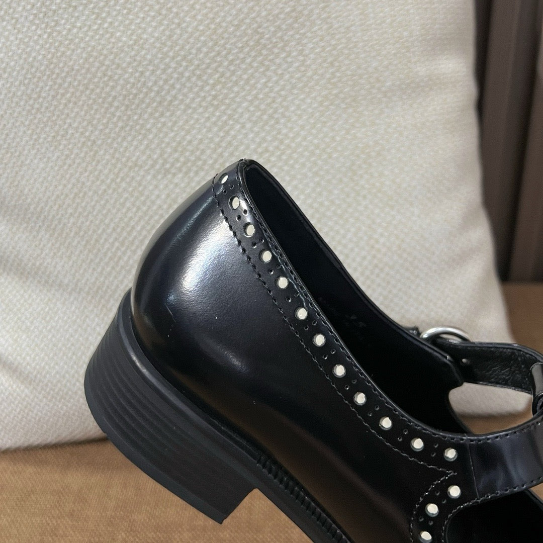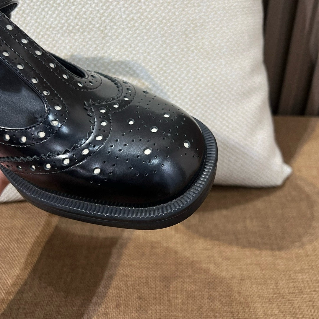 미우미우 브러쉬드 레더 티 스트랩 브로그 슈즈(Miu Miu Brushed Leather T-Strap Brogue Shoes) - 클래식과 페미닌의 조화